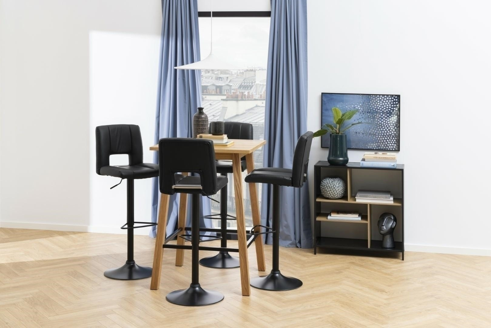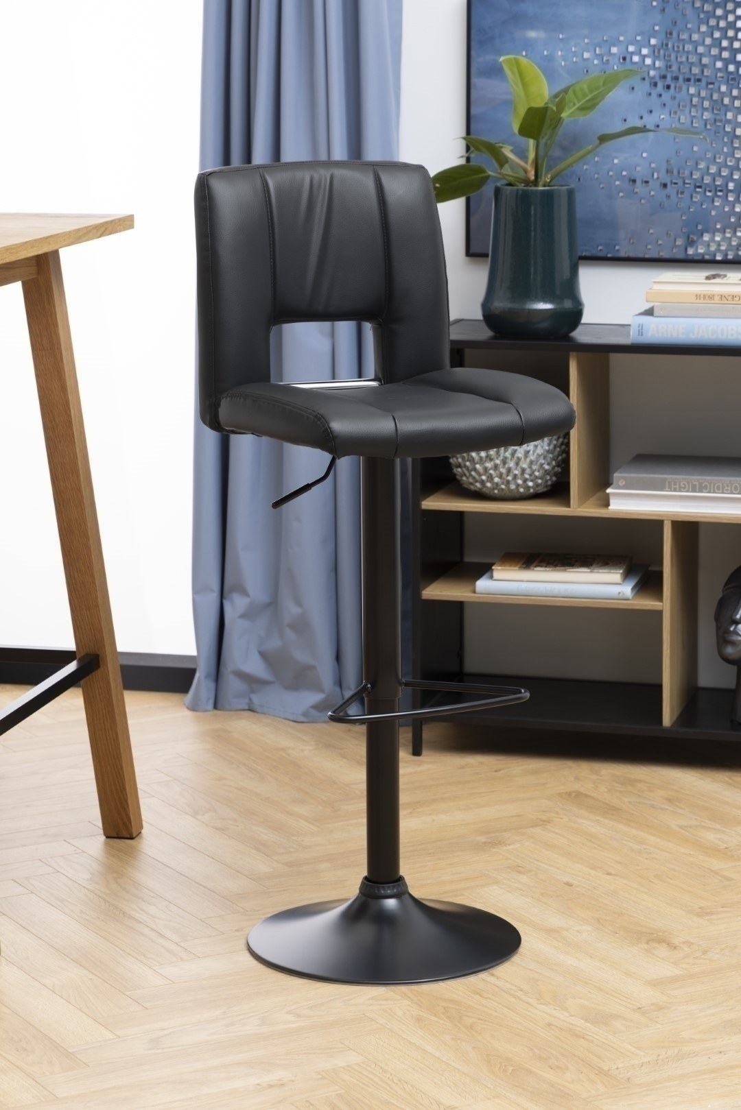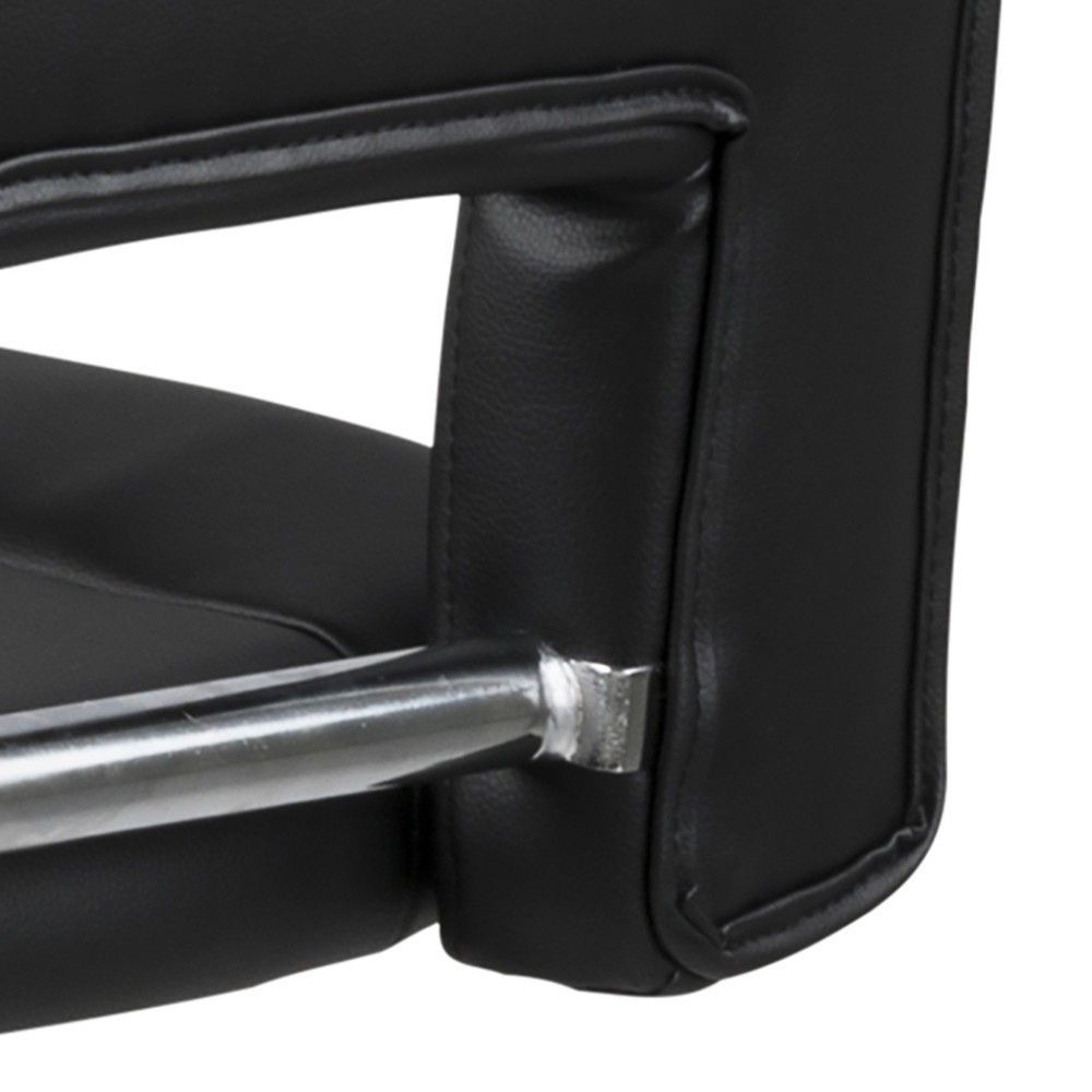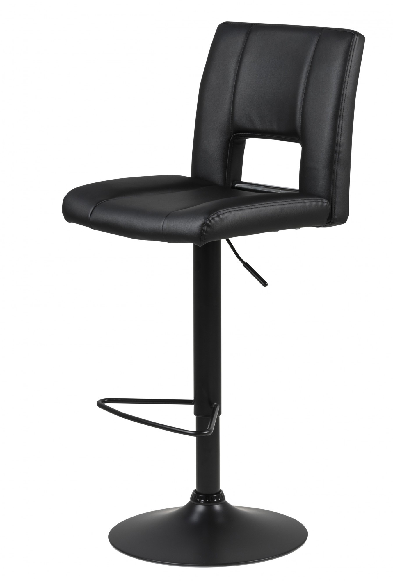 Barová židle Sylvia je nábytek pro moderní bar nebo jídelnu. Sedák z polyuretanové pěny je potažen čalouněním z látky s vzhledem PU kůže černé barvy BK1. Základ tvoří dlouhá, štíhlá noha v černé barvě s matným povrchem. Barová židle má vysoké, pohodlné opěradlo a další oporu pro nohy. Stolička má nastavitelnou výšku. Počet kartonů: 1 Rozměry kartonů: 60x44x44cm Hmotnost kartonů: 10,5kg