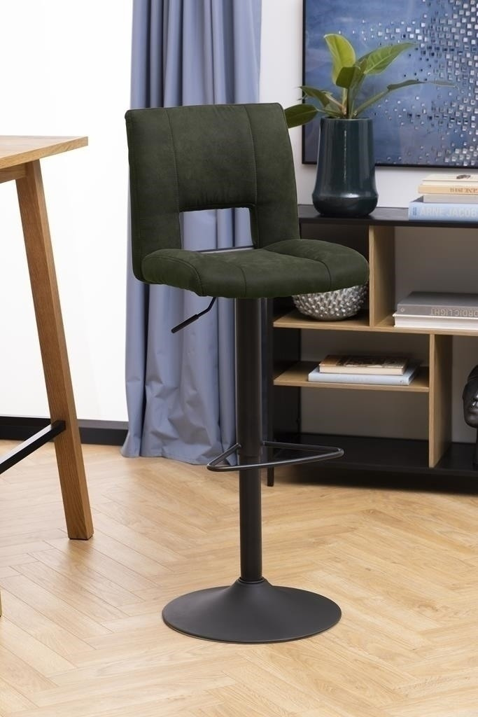 Barová židle Sylvia je nábytek pro moderní bar nebo jídelnu. Sedák z polyuretanové pěny je potažen čalouněním z látky Preston fabric olivově zelená 38. Základ tvoří dlouhá, štíhlá noha v černé barvě s matným povrchem. Barová židle má vysoké, pohodlné opěradlo a další oporu pro nohy. Stolička má nastavitelnou výšku. Počet kartonů: 1 Rozměry kartonů: 60x44x44cm Hmotnost kartonů: 10,5kg
