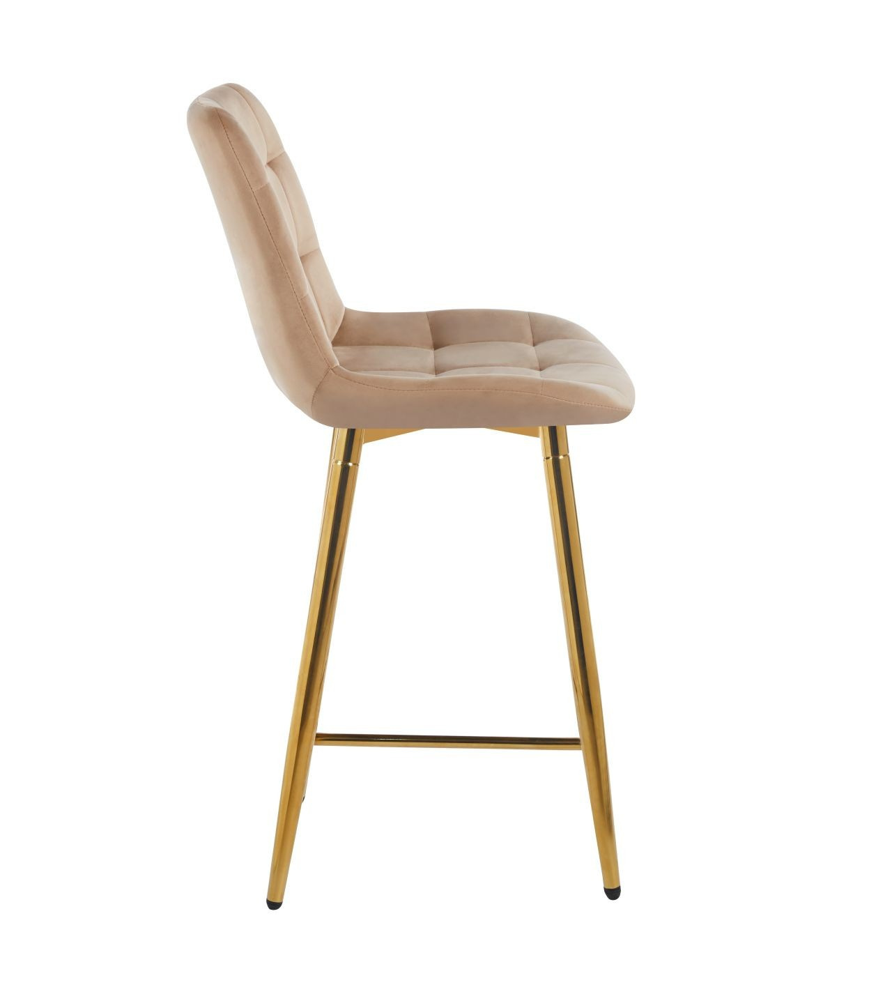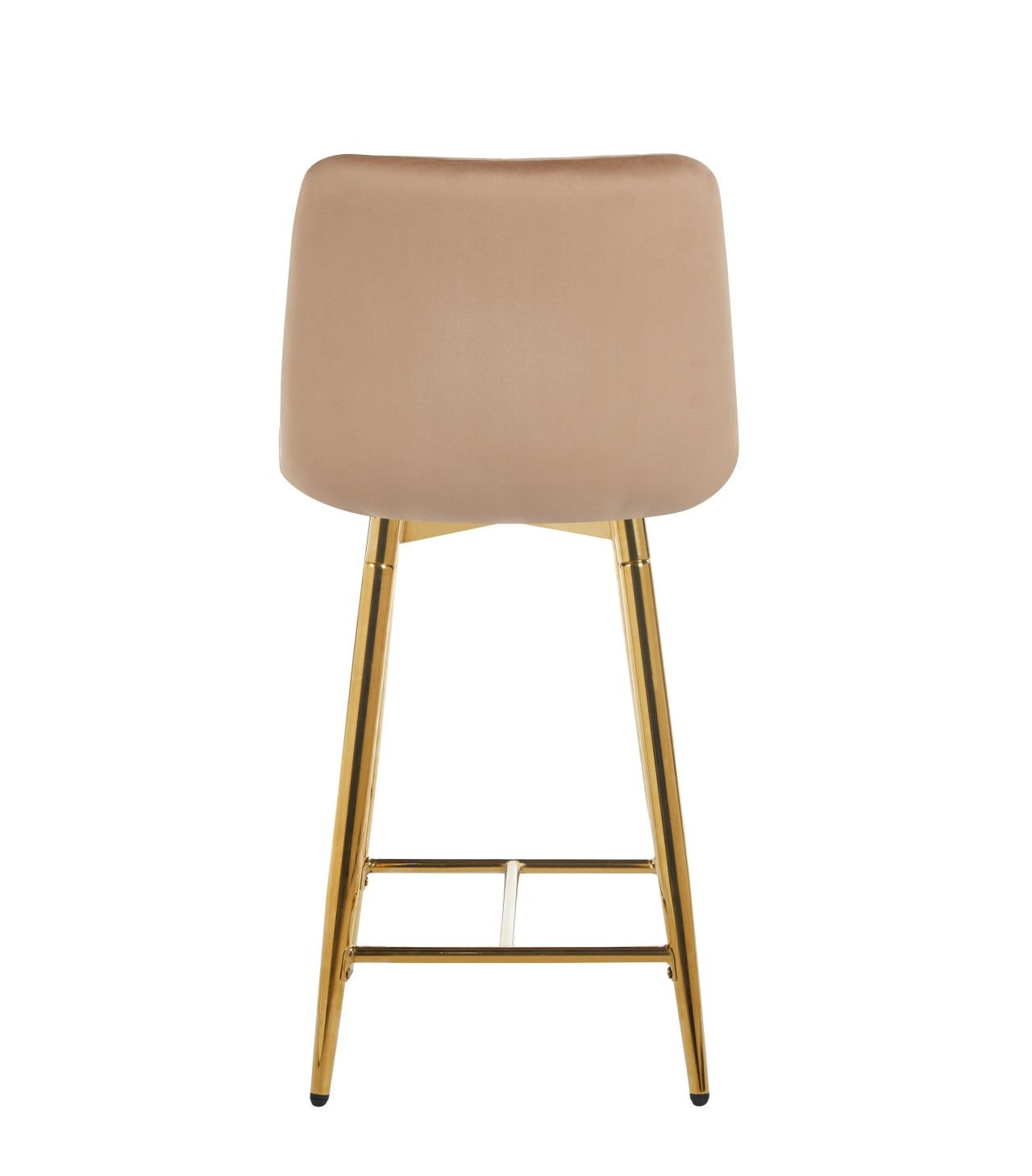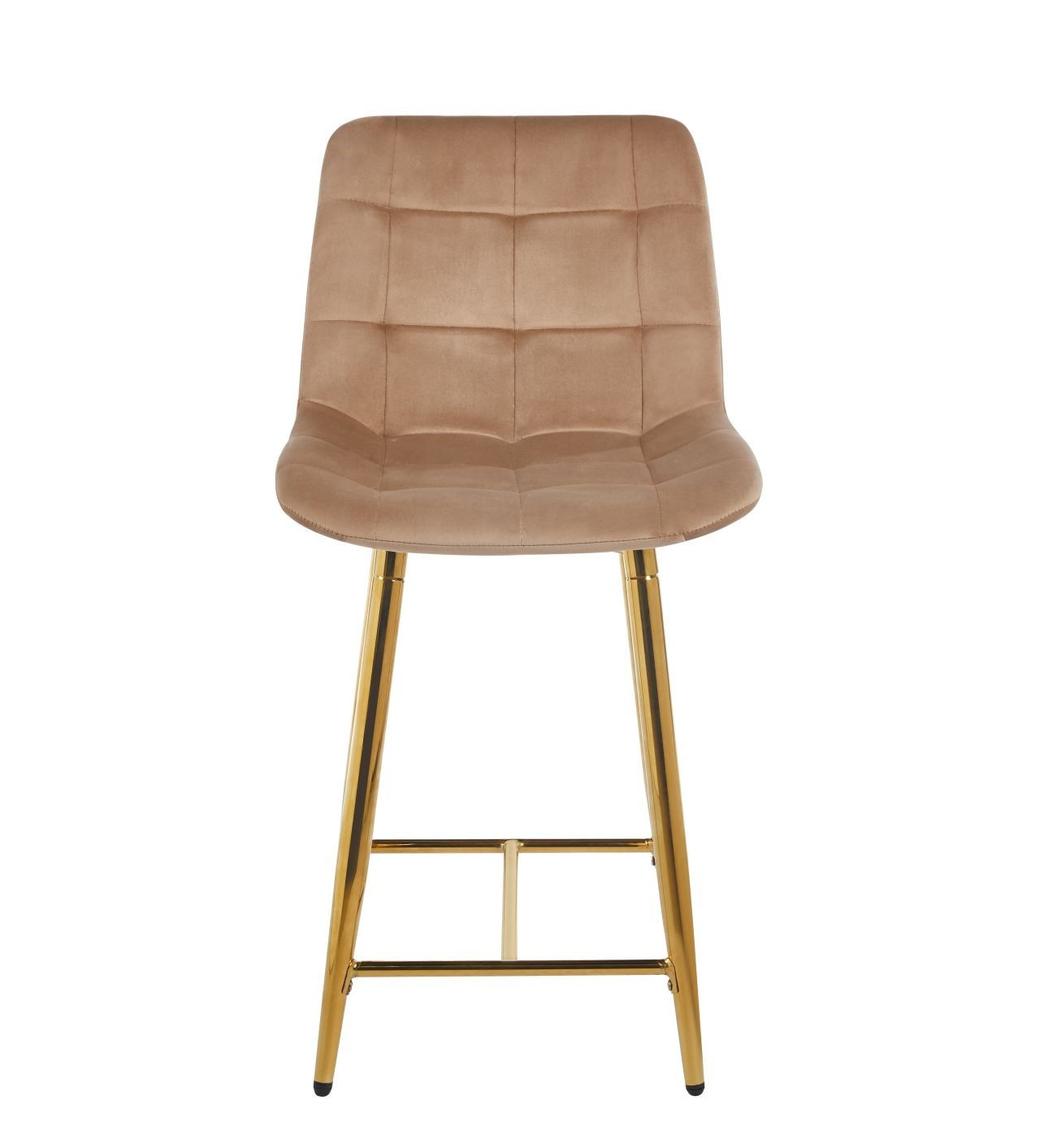 Rozměry: - šířka sedáku: 44 cm - výška sedáku: 61 cm - celková výška: 90 cm - hloubka sedáku: 37 cm Materiál - čalounění: samet - nohy: chrom Barva: - sedák: cappuccino - konstrukce: zlatá