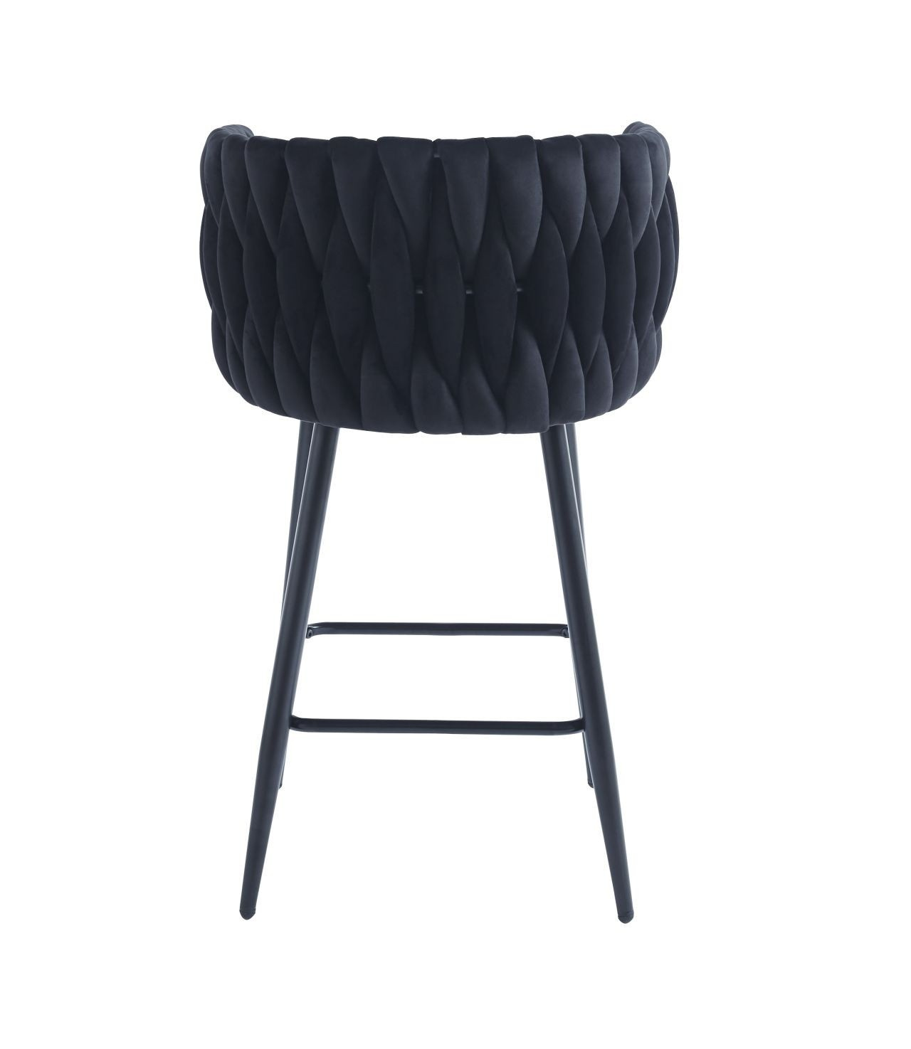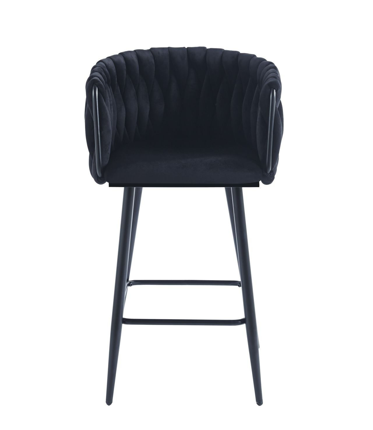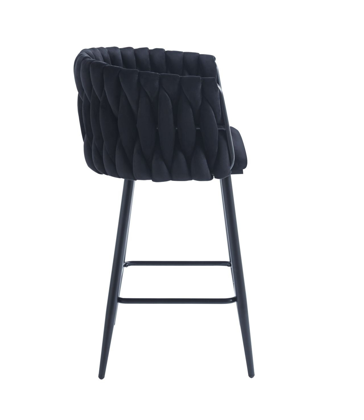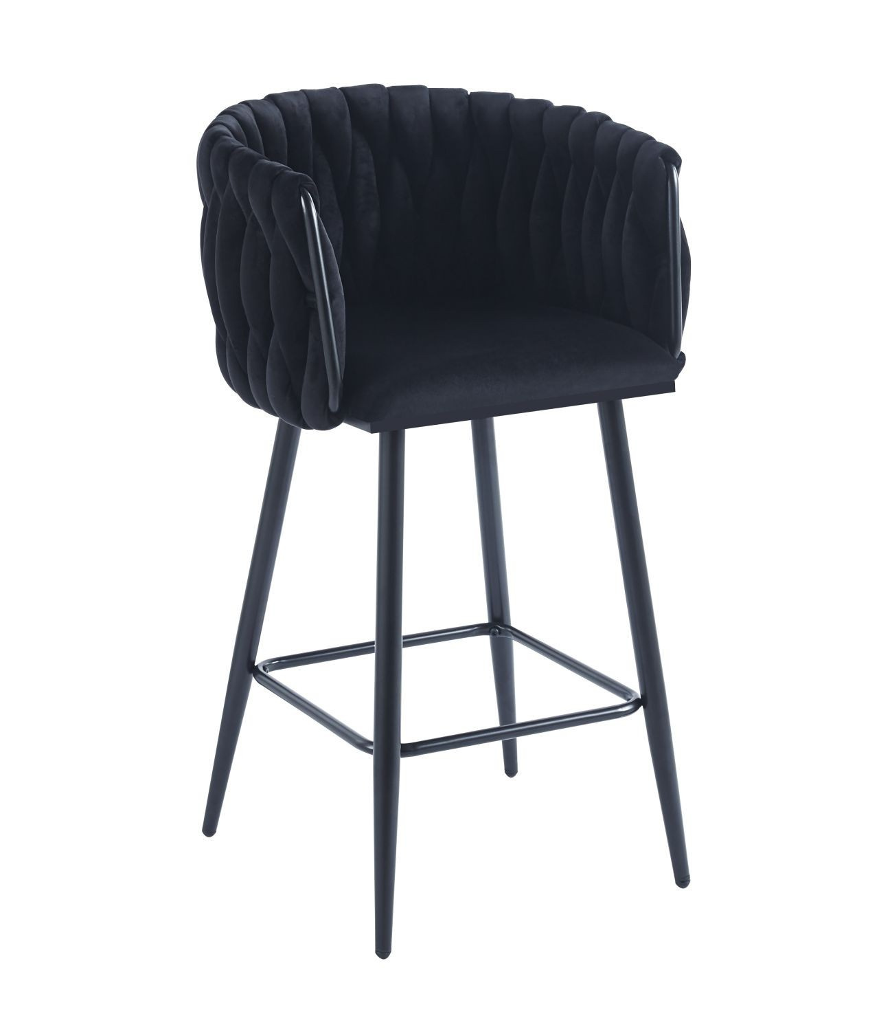 Rozměry: - šířka sedáku: 42 cm - celková šířka: 55 cm - výška sedáku: 64 cm - celková výška: 90 cm - hloubka sedáku: 43 cm - výška opěradla: 28 cm Materiál - čalounění: samet - rám: kov lakovaný práškovou barvou Barva: - sedák: černý - rám: černý