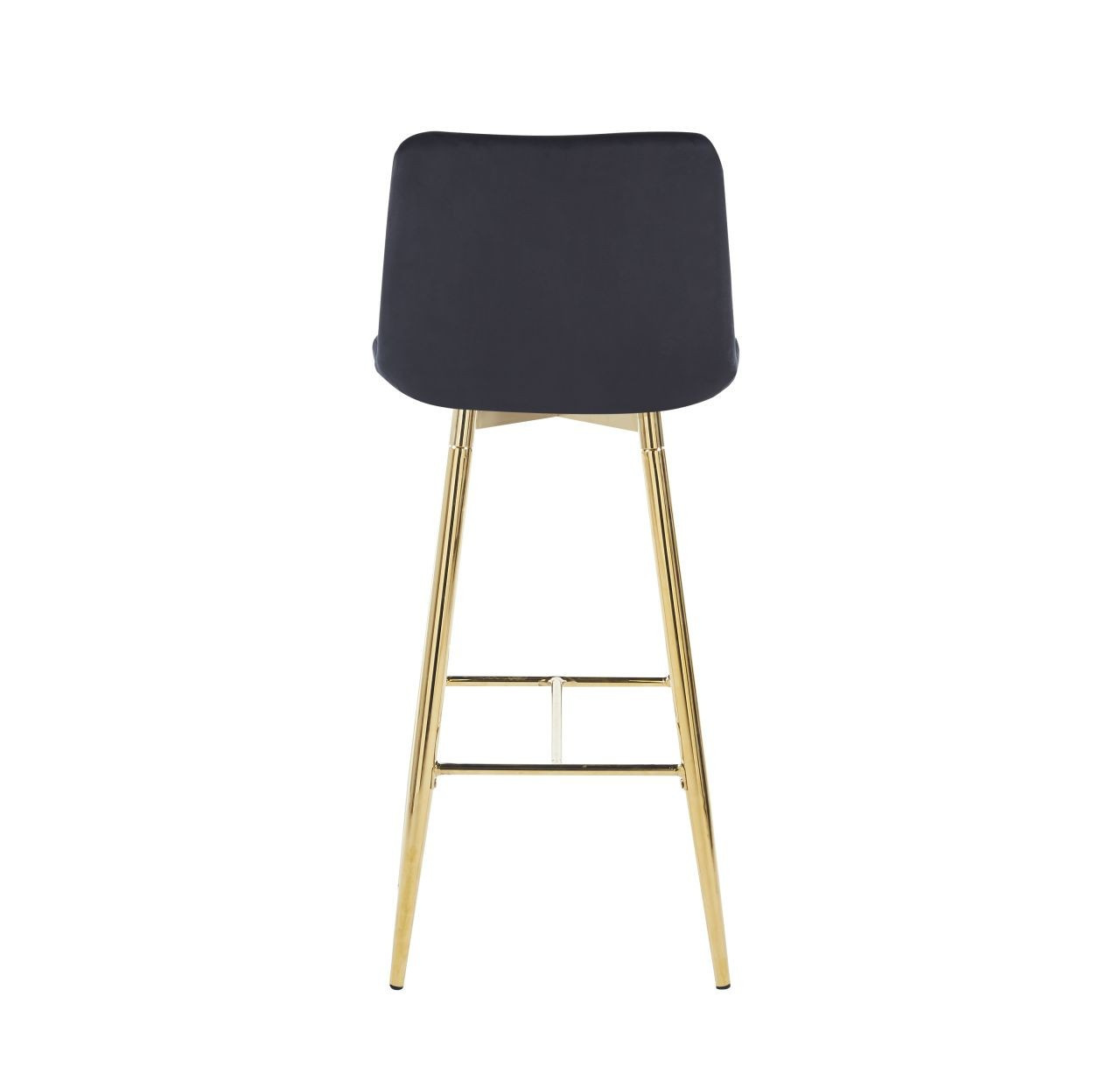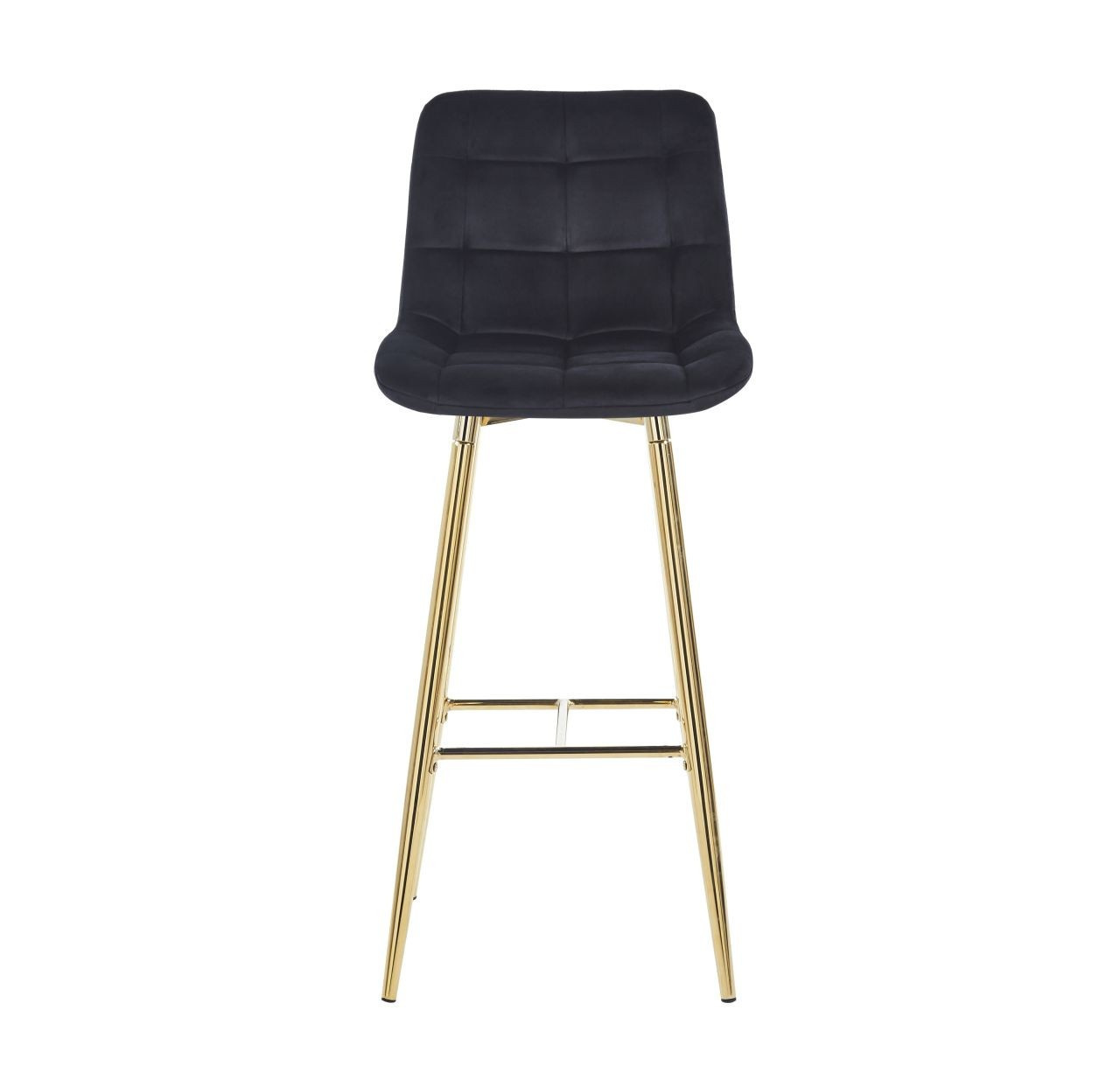 Rozměry: - šířka sedáku: 44 cm - výška sedáku: 77 cm - celková výška: 109 cm - hloubka sedáku: 37 cm Materiál - čalounění: samet - nohy: chrom Barva: - sedák: černá - konstrukce: zlatá