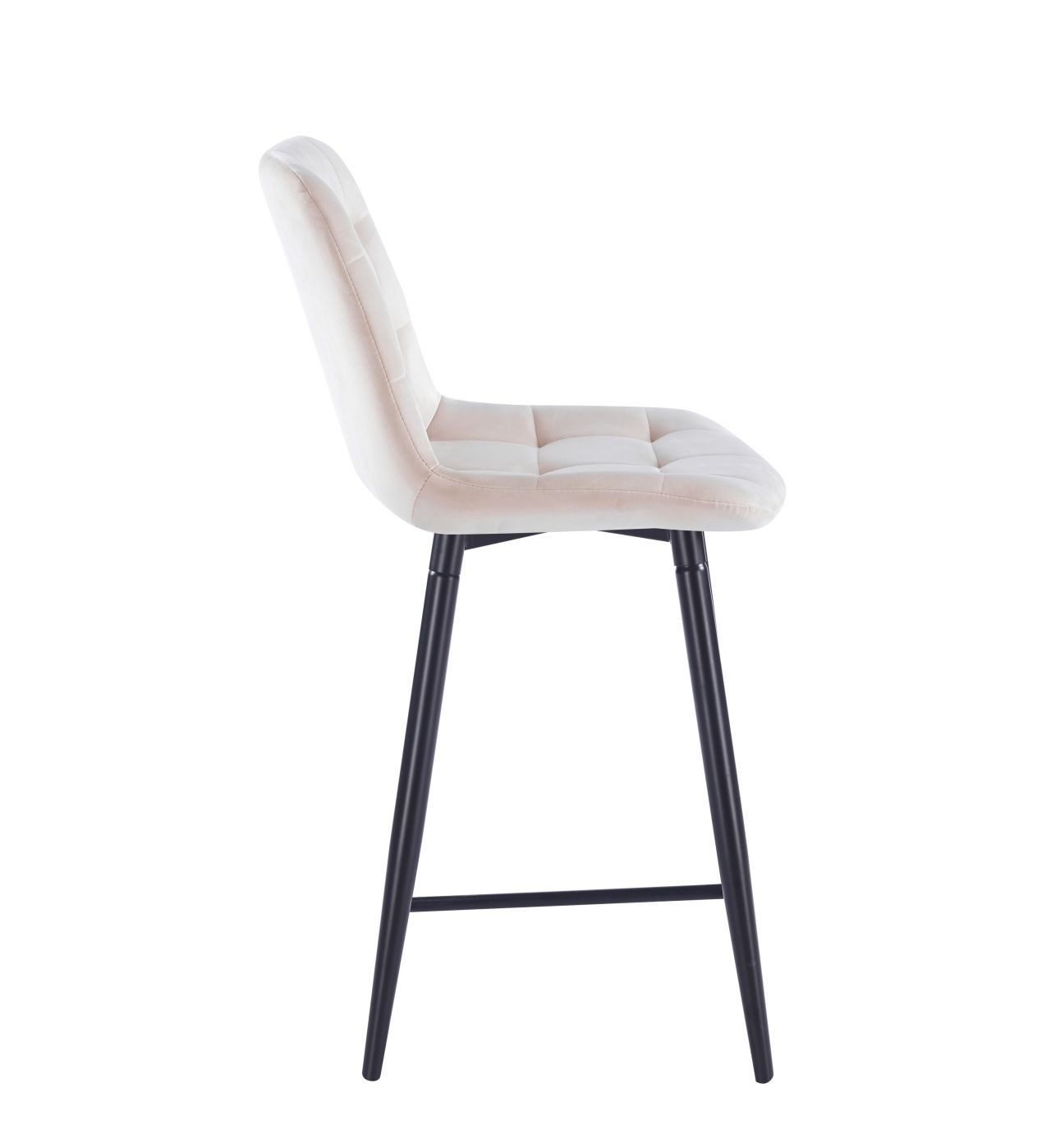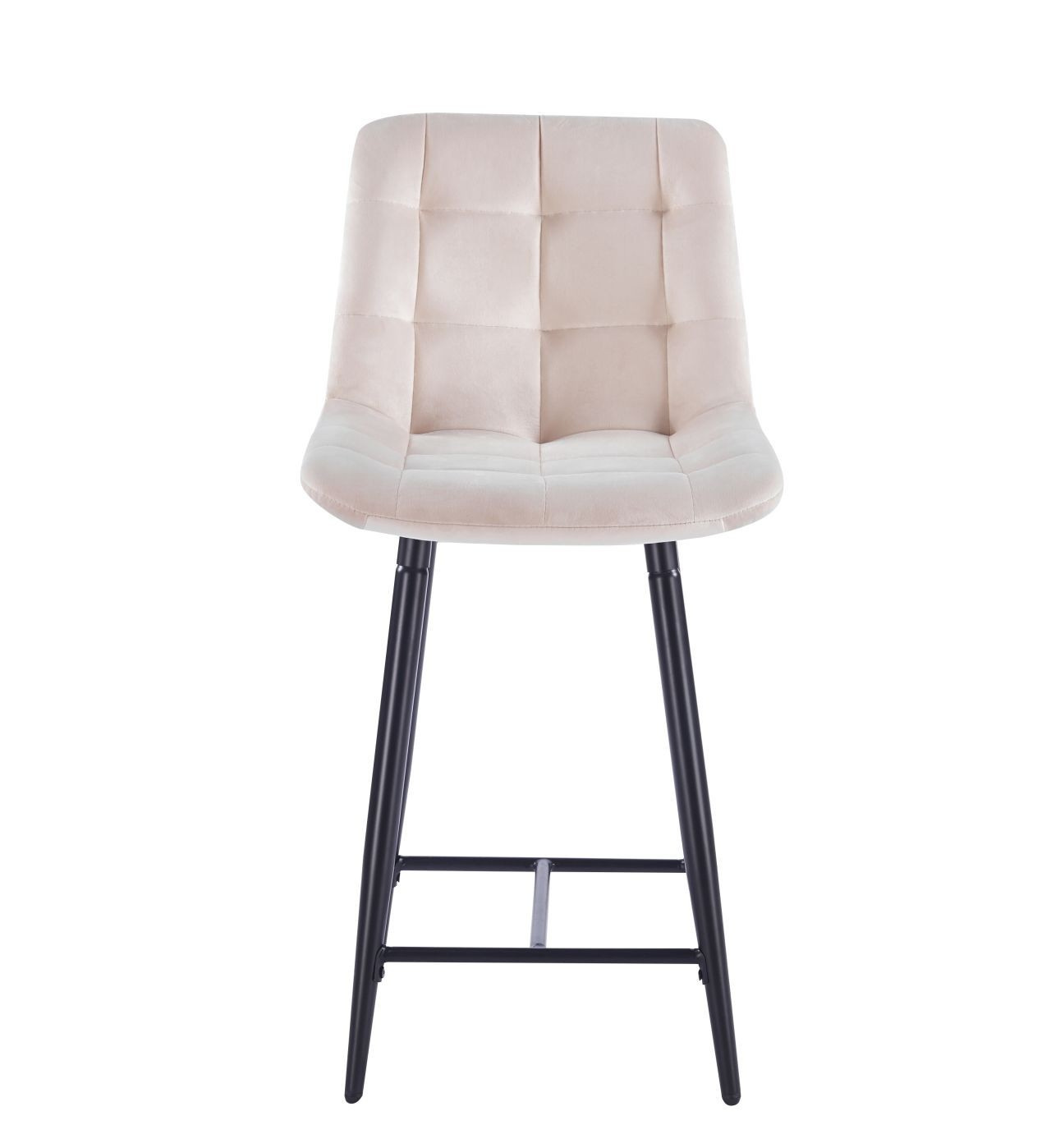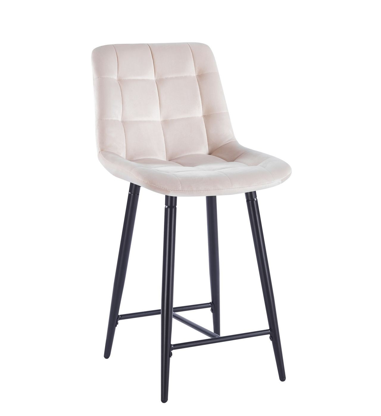 Rozměry: - šířka sedáku: 44 cm - výška sedáku: 61 cm - celková výška: 90 cm - hloubka sedáku: 37 cm Materiál - čalounění: samet Davis Riviera 06 - nohy: kov lakovaný práškovou barvou Barva: - sedák: béžový - konstrukce: černá