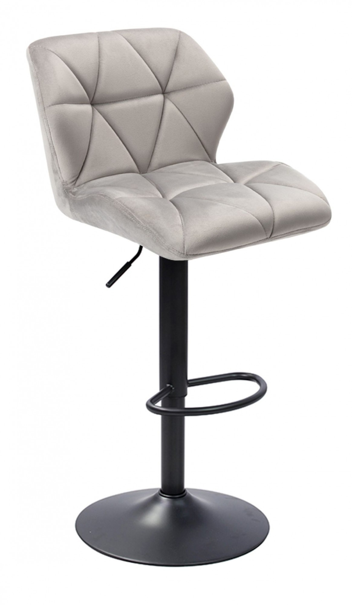 Výška k sedáku (nastavitelná): 60-82 cm Celková výška (nastavitelná): 85-105 cm Šířka sedáku: 42 cm Výška opěradla: 25 cm Materiál: samet, práškově lakovaná ocel