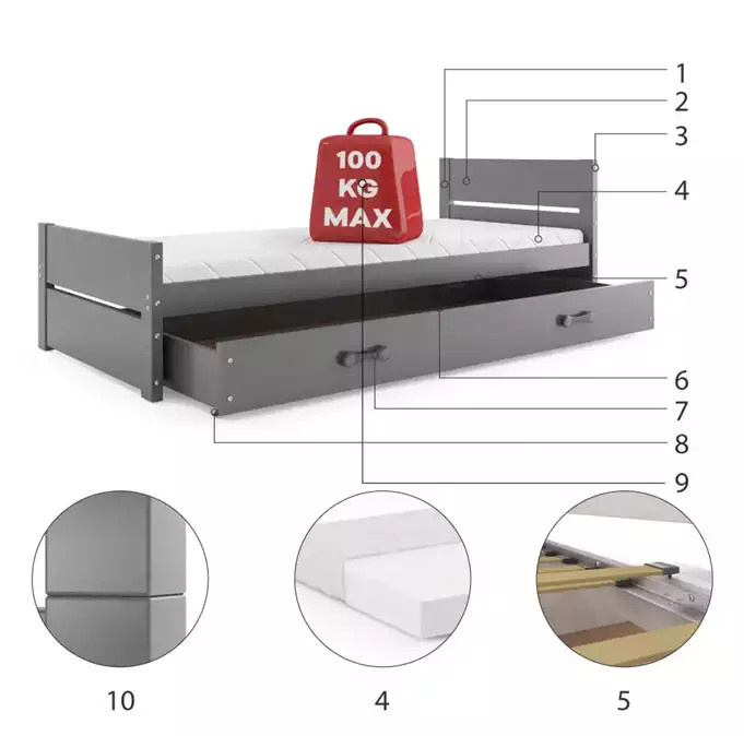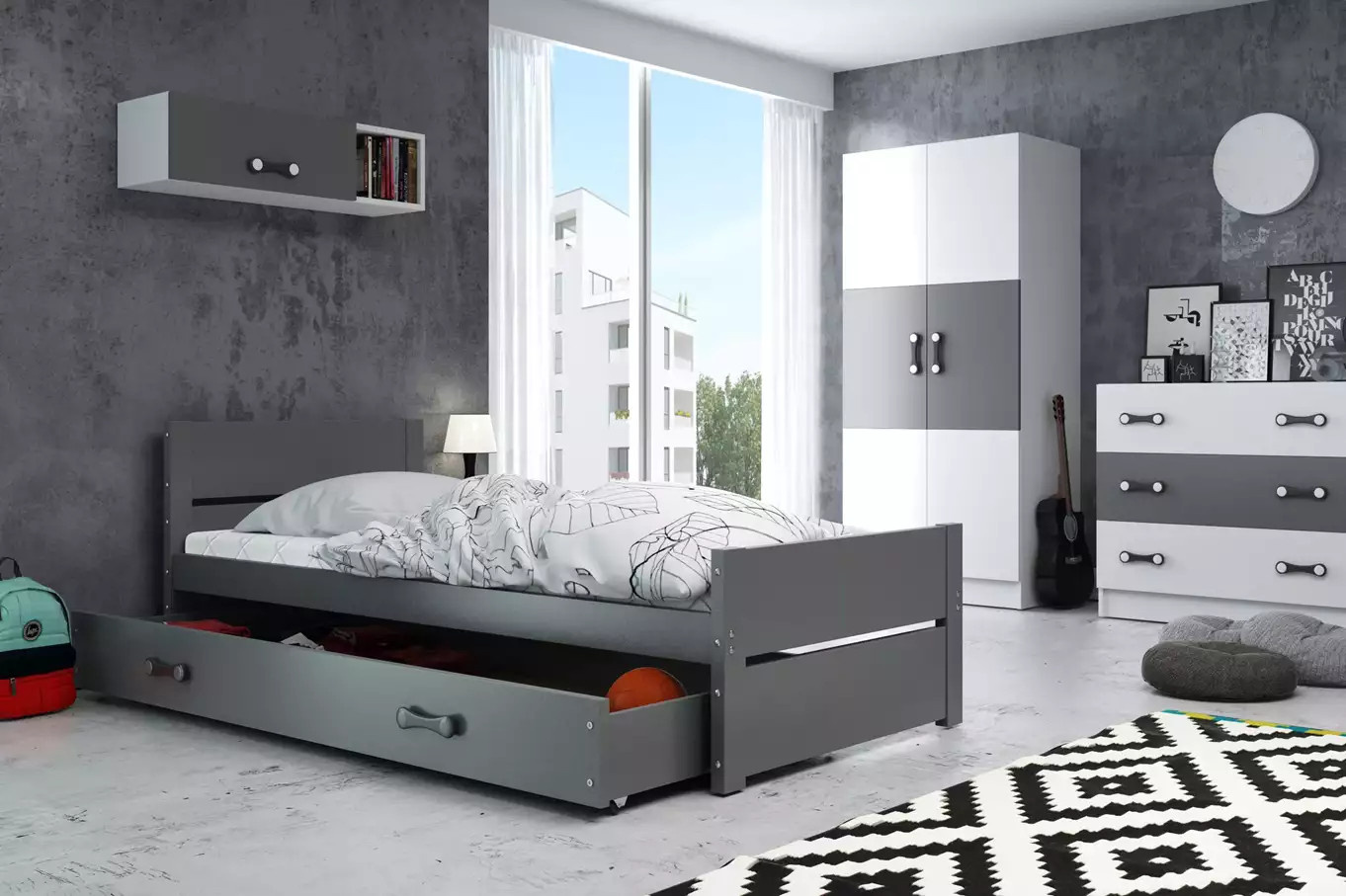 Dětská postel BARTEK, se šuplíkem bez matrace, Grafit