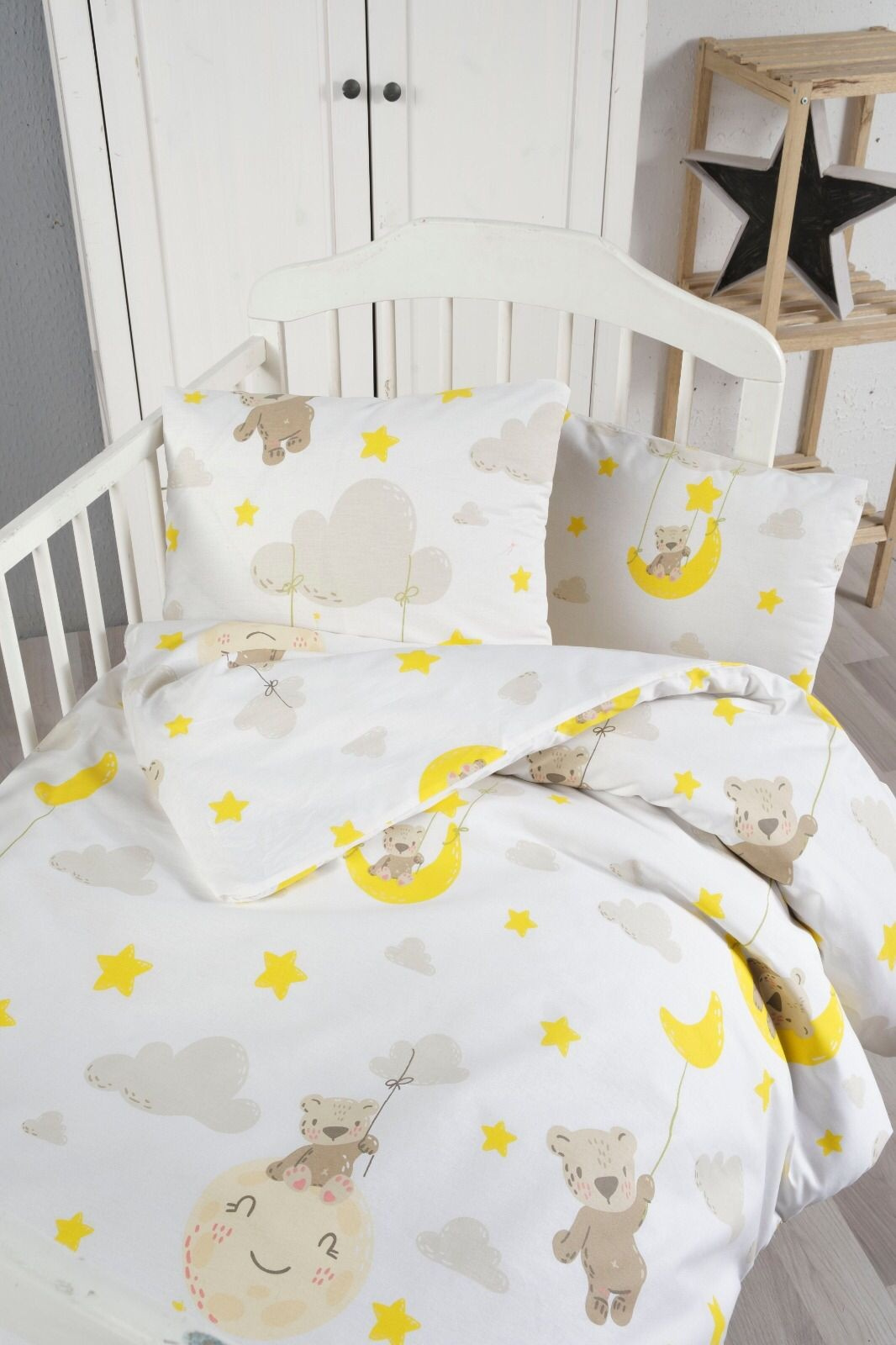 Bavlněné dětské povlečení 140x200, 70x90cm medvídek v oblacích