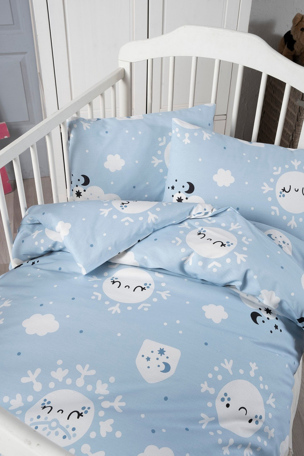 Bavlněné dětské povlečení do malé postýlky 90x135, 45x60 cm sen modrý