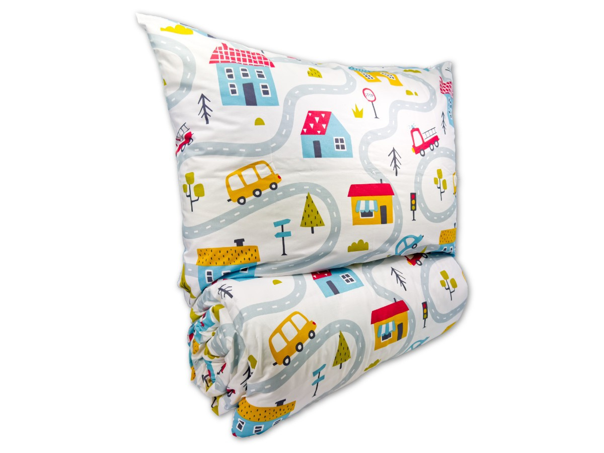 Bavlněný povlak na polštář 40x40 cm s dětským motivem městečko