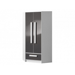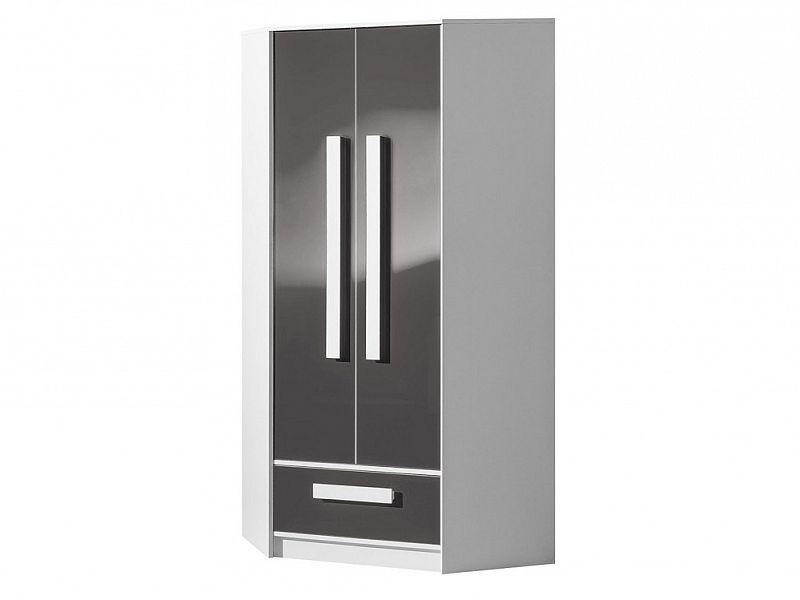 GOLIÁŠ 2- Skříň rohová dvoudvéřová (GULIVER 2)-korpus bílá/dvířka šedá lesk/úchyt bílá (DO) (Z)