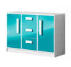 GOLIÁŠ 6- komoda nízká se 2 dvířkami 3 šuplíky (GULIVER 6)-korpus bílá/dvířka tyrkysová lesk/úchyt bílá (DO) (Z)