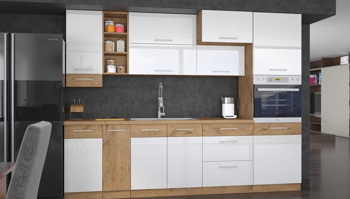 - Kuchyně VEGAS - Dub Lancelot / Bílý Lesk