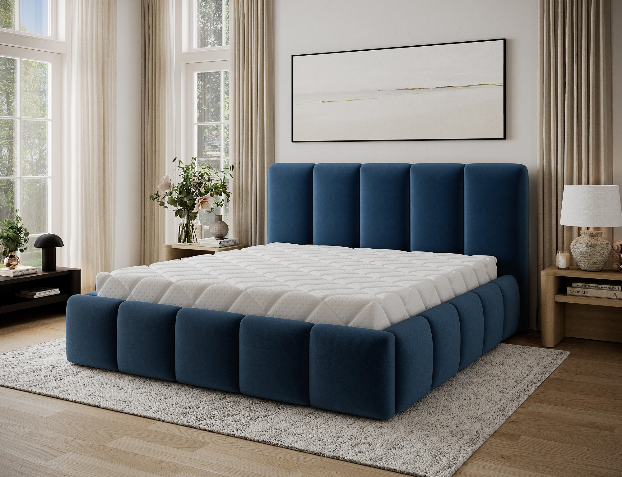 Edvige is an exceptionally comfortable, tasteful, and original glamour-style bed that impresses with its unique form. The sleeping surface dimensions – available in 140/160/180 × 200 cm – provide ample space for comfortable rest and can be chosen according to individual preferences, room size, and bedroom layout. Edvige stands out thanks to its high headboard and bed sides made with additional foam for the tufting, while the aesthetic effect is enhanced by elongated, spacious quilting. A wide range of color options makes it easy to match the bed with other elements of the bedroom décor. In this design, modernity and a contemporary finish go hand in hand with elegance, making Edvige a perfect addition to any bedroom and a piece that is certainly worth having.