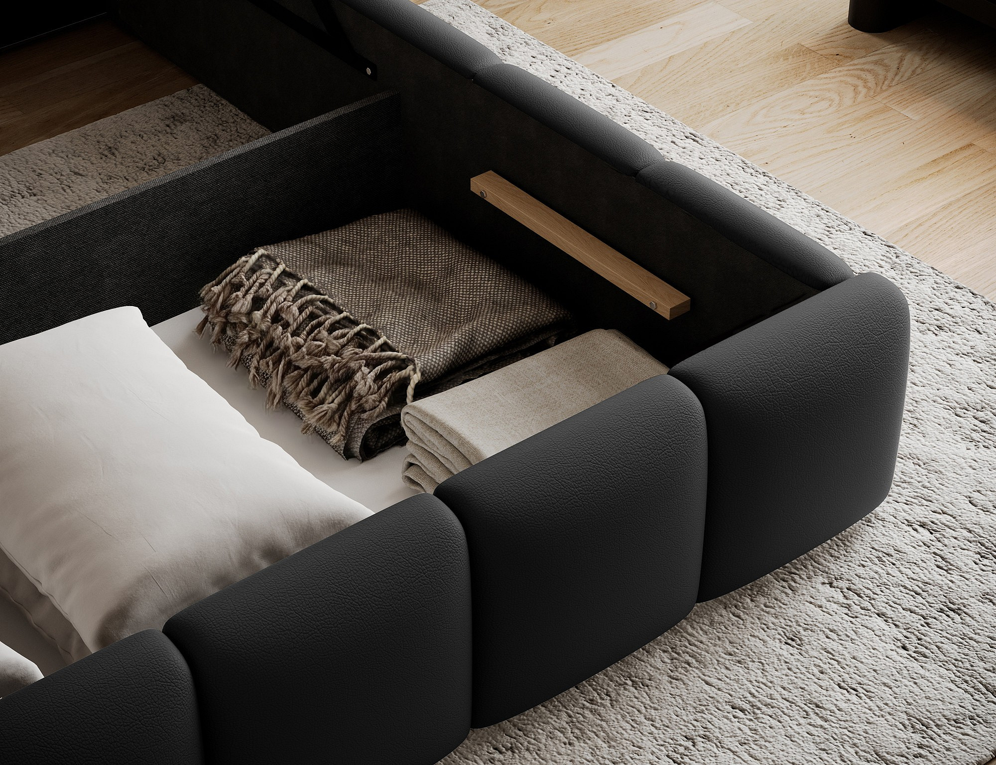 Jednou z hlavních výhod této postele je úložný prostor, který je ideální pro uskladnění ložního prádla, sezónního oblečení nebo dalších potřebných věcí. Tento prostor je snadno přístupný a pomáhá udržovat vaši ložnici čistou a uspořádanou.