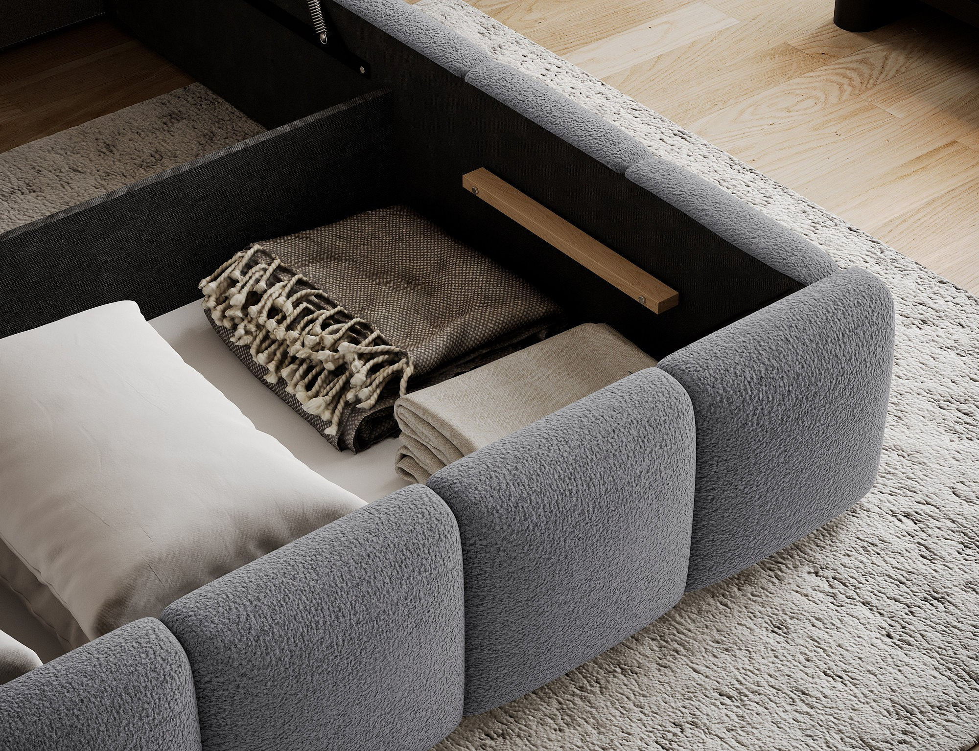 Jednou z hlavních výhod této postele je úložný prostor, který je ideální pro uskladnění ložního prádla, sezónního oblečení nebo dalších potřebných věcí. Tento prostor je snadno přístupný a pomáhá udržovat vaši ložnici čistou a uspořádanou.
