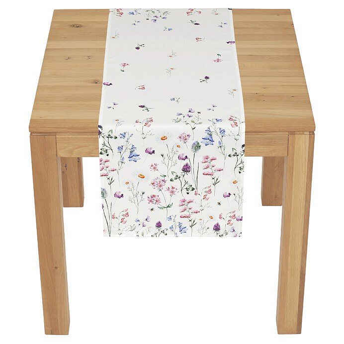 Běhoun s motivem barevného lučního kvítí na bílém polyesterovém podkladu přináší do interiéru svěží a přirozený vzhled. Rozměry 40 x 150 cm umožňují jeho univerzální použití na jídelní stoly či komody. Polyesterový materiál je snadno udržovatelný a zajišťuje dlouhou životnost textilie. Jemné květinové vzory vytvářejí příjemnou atmosféru vhodnou pro různé styly zařízení od klasického po moderní. Běhoun je ideální pro oživení stolování i dekorativní zvýraznění prostoru.