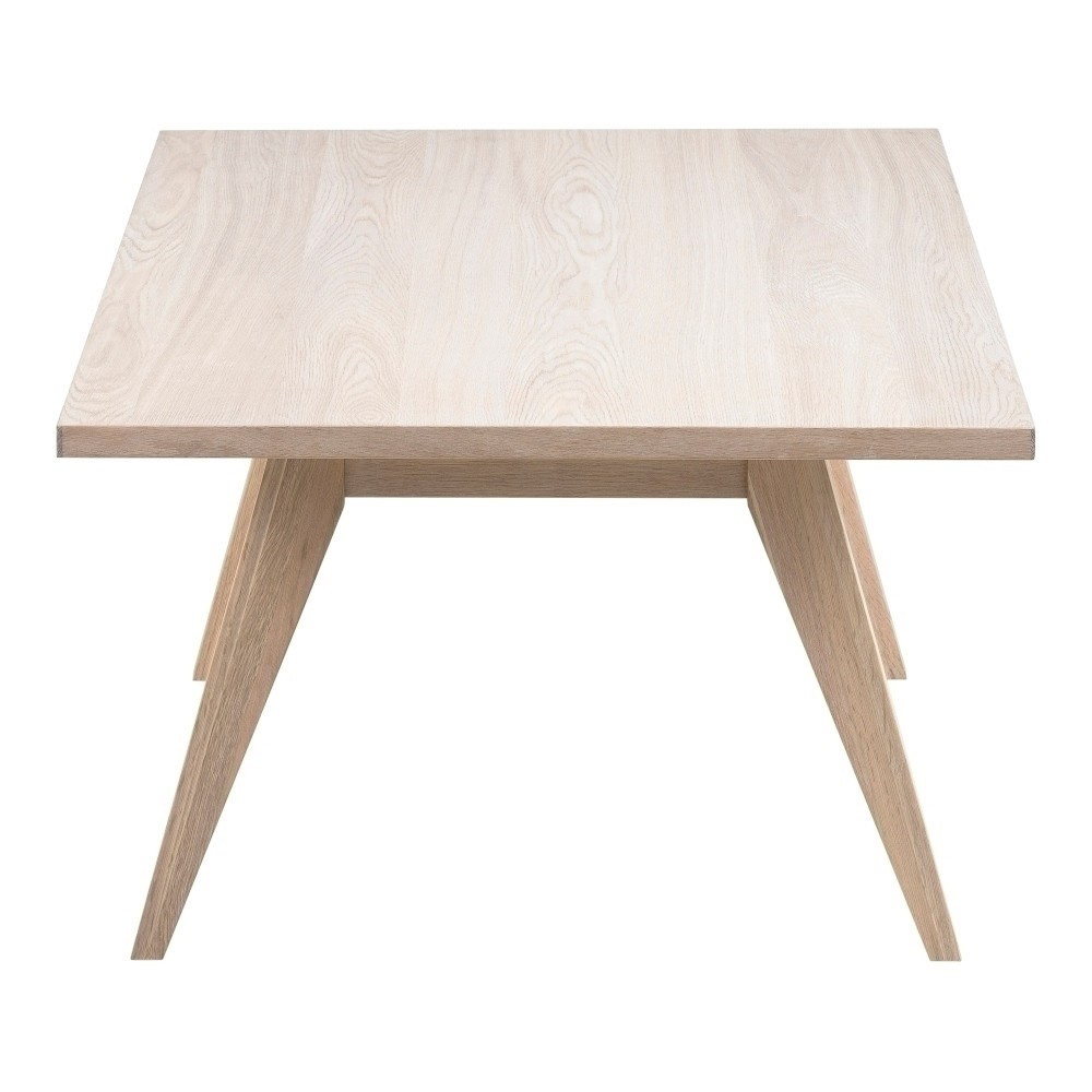 Konferenční stolek A-Line byl vyroben ve skandinávském stylu. Bělené dubové dřevo, použité k výrobě stolku, bylo naolejováno, díky čemuž se staly viditelnějšími přirozené letokruhy dřeva. Nízký stolek bude efektně vypadat v obývacím pokoji u pohovky. Zajímavý tvar nohou stolku, které se rozšiřují směrem ven, zajišťuje stolku také výjimečnou stabilitu. Hmotnost: 20 kg. Rozměry kartonu: 13,5cm x 138cm x 80cm