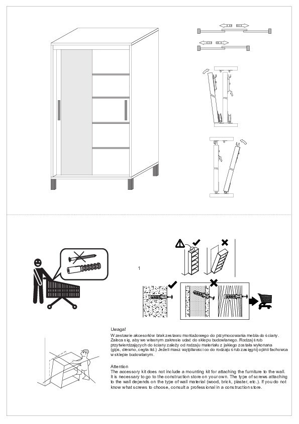 Bell-M je posuvná skříň dostupná ve dvou barevných variantách. Umístěné zrcadlo na přední straně a ozdobné lišty jí dodávají zajímavý a jedinečný design. Skříň se skvěle hodí do mnoha interiérů. Nábytek má systém posuvných dveří, prostorné police a tyč na oblečení. Pro lepší bezpečnost se doporučuje připevnit skříň ke zdi.