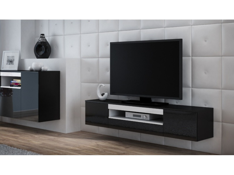 Komoda je závěsná a skládá z šuplíku a skříněk které se otevírají systémem tzv. PUSH&CLICK (pouhým zatlačením do dvířek).