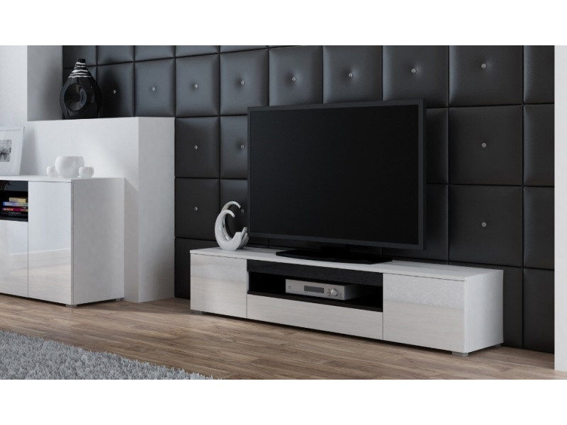 Komoda je stojící a skládá z šuplíku a skříněk které se otevírají systémem tzv. PUSH&CLICK (pouhým zatlačením do dvířek).