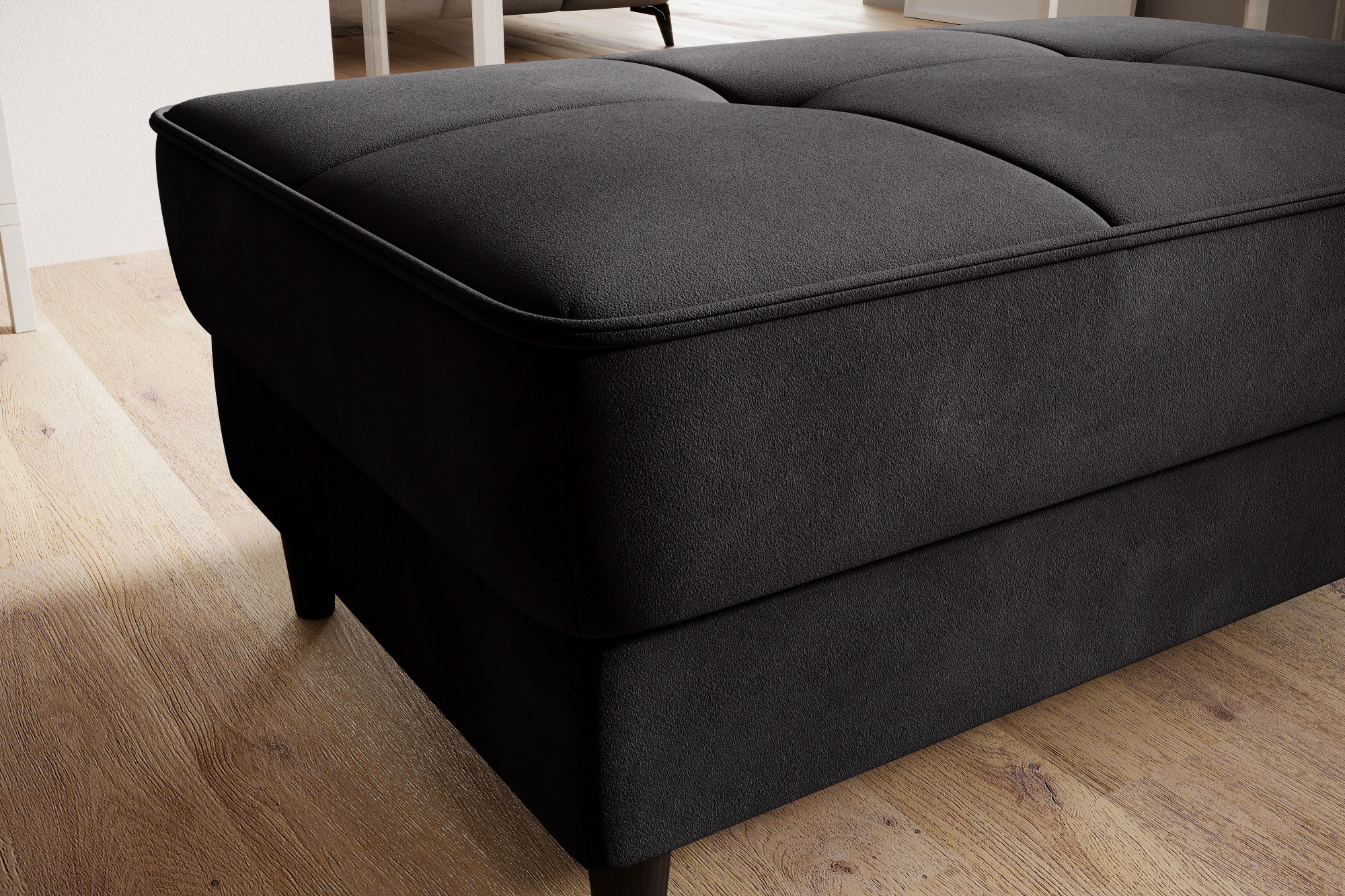 Model Bellis je naším vysoce kvalitním návrhem, který zlepší uspořádání vašeho interiéru. Široké, pohodlné sedadlo tohoto kusu nábytku vám umožní pohodlně odpočívat. Jeho minimalistická forma a jemné prošívání fungují výjimečně dobře s moderními interiérovými styly. Interiér Bellis je vybaven speciálním mechanismem, který umožňuje jeho otevření. Bellis může být použit jako další prostor pro ukládání věcí. Puf je vyroben pouze z vysoce kvalitních materiálů: vysoce elastické HR pěny, pěny T2130 a vlnité pružiny typu B. Tyto komponenty společně činí nabízený produkt velmi pružným. Nohy taburetu jsou vyrobeny z masivního dřeva. Poskytují mu dostatečně vysokou stabilitu a činí jeho lehký tvar příjemným pro oko.