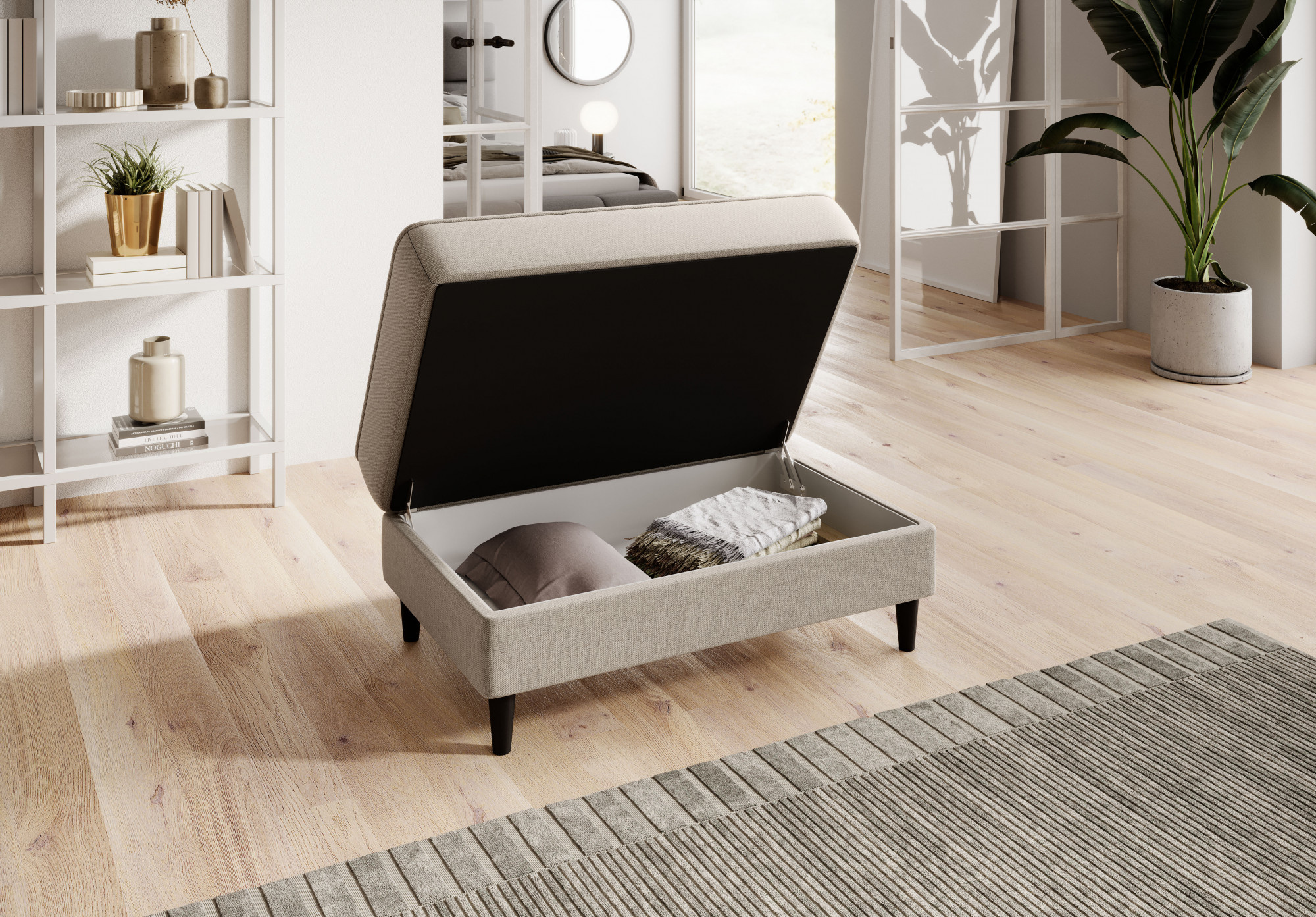 Model Bellis je naším vysoce kvalitním návrhem, který zlepší uspořádání vašeho interiéru. Široké, pohodlné sedadlo tohoto kusu nábytku vám umožní pohodlně odpočívat. Jeho minimalistická forma a jemné prošívání fungují výjimečně dobře s moderními interiérovými styly. Interiér Bellis je vybaven speciálním mechanismem, který umožňuje jeho otevření. Bellis může být použit jako další prostor pro ukládání věcí. Puf je vyroben pouze z vysoce kvalitních materiálů: vysoce elastické HR pěny, pěny T2130 a vlnité pružiny typu B. Tyto komponenty společně činí nabízený produkt velmi pružným. Nohy taburetu jsou vyrobeny z masivního dřeva. Poskytují mu dostatečně vysokou stabilitu a činí jeho lehký tvar příjemným pro oko.