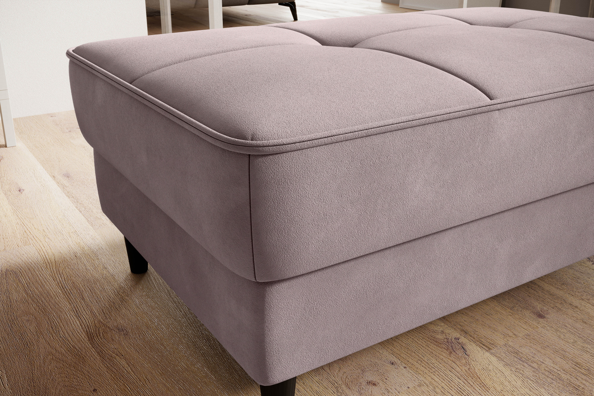 Model Bellis je naším vysoce kvalitním návrhem, který zlepší uspořádání vašeho interiéru. Široké, pohodlné sedadlo tohoto kusu nábytku vám umožní pohodlně odpočívat. Jeho minimalistická forma a jemné prošívání fungují výjimečně dobře s moderními interiérovými styly. Interiér Bellis je vybaven speciálním mechanismem, který umožňuje jeho otevření. Bellis může být použit jako další prostor pro ukládání věcí. Puf je vyroben pouze z vysoce kvalitních materiálů: vysoce elastické HR pěny, pěny T2130 a vlnité pružiny typu B. Tyto komponenty společně činí nabízený produkt velmi pružným. Nohy taburetu jsou vyrobeny z masivního dřeva. Poskytují mu dostatečně vysokou stabilitu a činí jeho lehký tvar příjemným pro oko.