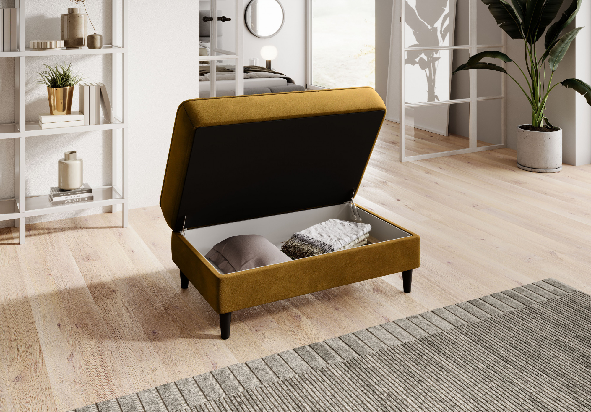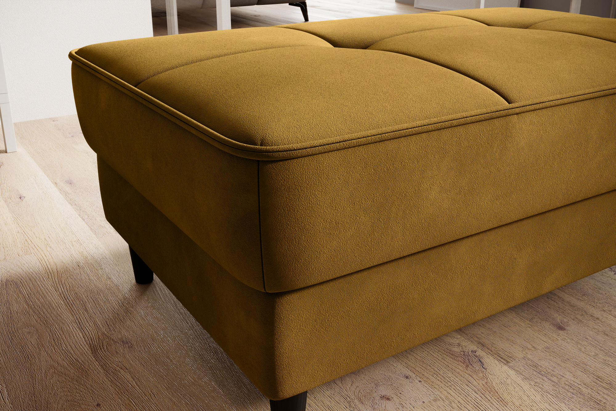 Model Bellis je naším vysoce kvalitním návrhem, který zlepší uspořádání vašeho interiéru. Široké, pohodlné sedadlo tohoto kusu nábytku vám umožní pohodlně odpočívat. Jeho minimalistická forma a jemné prošívání fungují výjimečně dobře s moderními interiérovými styly. Interiér Bellis je vybaven speciálním mechanismem, který umožňuje jeho otevření. Bellis může být použit jako další prostor pro ukládání věcí. Puf je vyroben pouze z vysoce kvalitních materiálů: vysoce elastické HR pěny, pěny T2130 a vlnité pružiny typu B. Tyto komponenty společně činí nabízený produkt velmi pružným. Nohy taburetu jsou vyrobeny z masivního dřeva. Poskytují mu dostatečně vysokou stabilitu a činí jeho lehký tvar příjemným pro oko.