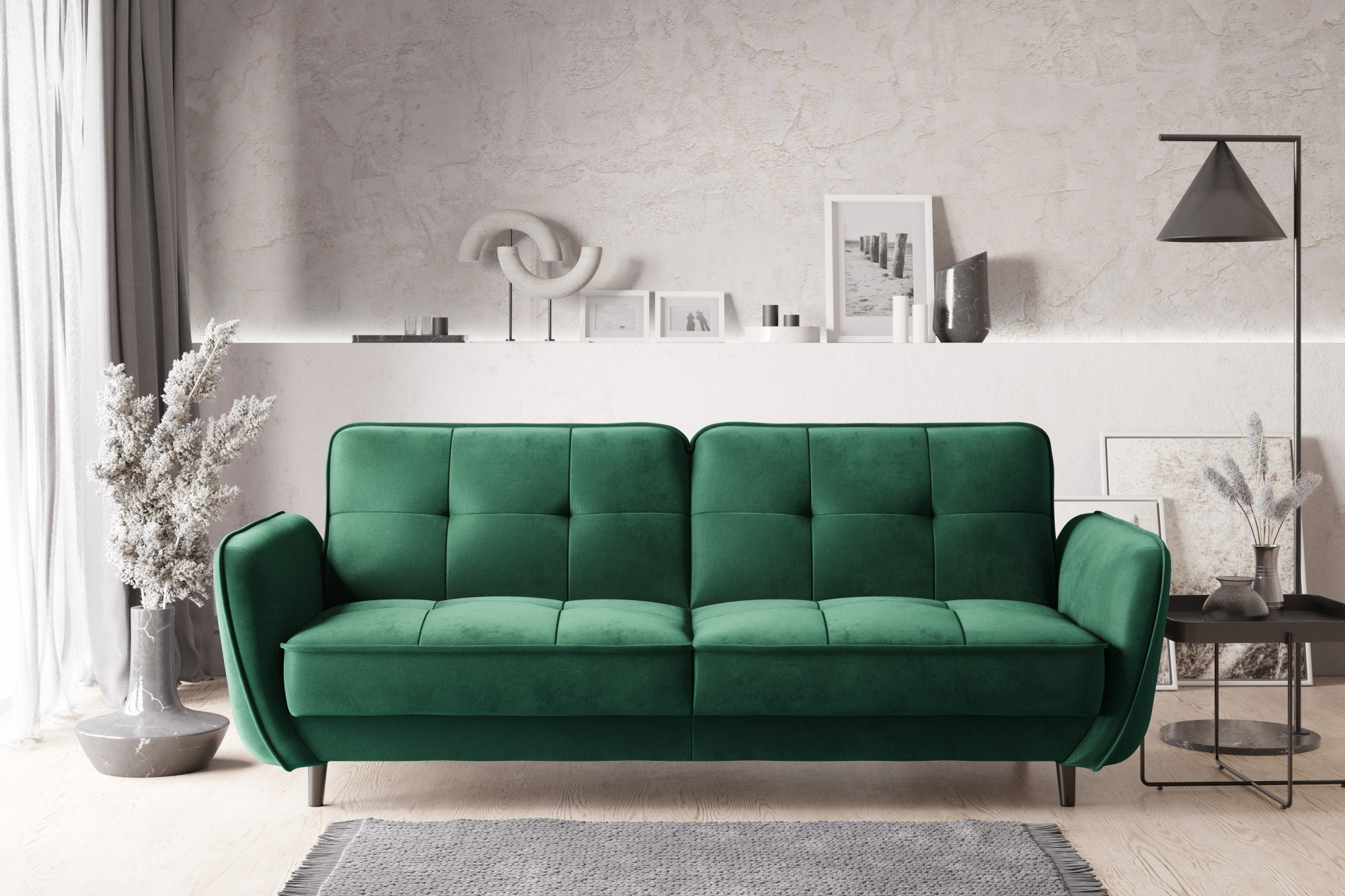 Pohovka Bellis kombinuje klasickou eleganci s moderním stylem. Pohovka Bellis s funkcí spaní je doplněna elegantními dřevěnými nohami, které přinášejí do každé místnosti nádech přírody. Šířka pohovky 220 centimetrů je vhodná pro středně velký obývací pokoj, zatímco 11 centimetrů vysoké nohy vizuálně zvětšují menší místnost a umožňují úklid pod nábytkem. Bellis je také dodáván s úložným prostorem na lůžkoviny - užitečné, pokud není místo na další deky nebo polštáře. Pohovka Bellis má také funkci spaní. Díky mechanismu skládání click-clack můžete rychle a snadno proměnit pohovku v pohodlnou postel. Navíc není potřeba pohovku Bellis odsunovat od zdi, když je rozložena a aktivována funkce spaní. Bellis nabízí ležící plochu o rozměrech 190x110 centimetrů. Kus nábytku je vyplněn vysoce flexibilní HR pěnou, která je známá svou pevností a odolností. Sedák pohovky i opěradlo jsou vybaveny tímto typem pěny. Rozkládací pohovka Bellis je také vybavena vysoce kvalitním jádrem s pružinami typu B a kapsovými pružinami. Ozdoby ve formě prošívání a quiltování jsou zodpovědné za estetickou stránku pohovky.