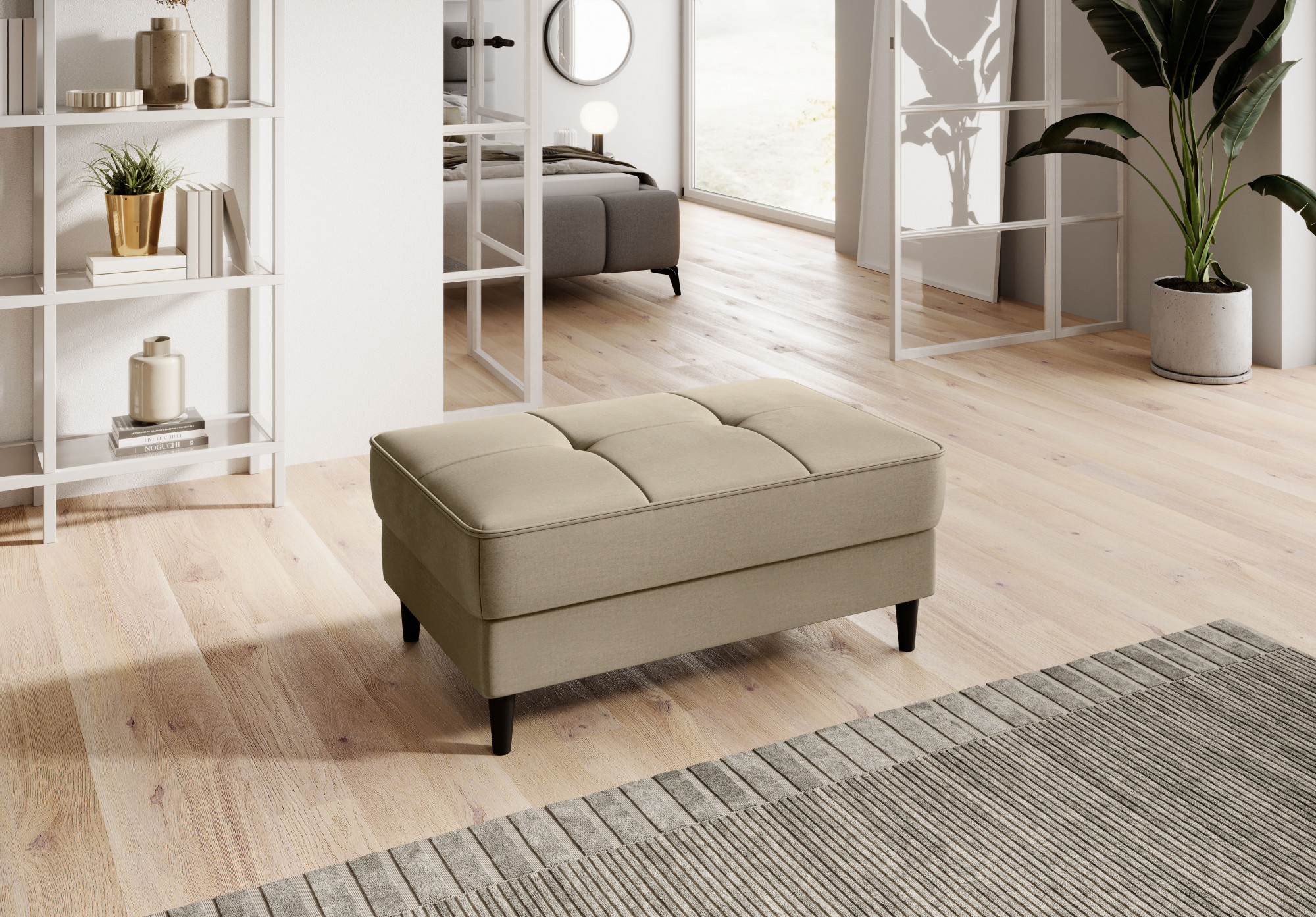 Model Bellis je naším vysoce kvalitním návrhem, který zlepší uspořádání vašeho interiéru. Široké, pohodlné sedadlo tohoto kusu nábytku vám umožní pohodlně odpočívat. Jeho minimalistická forma a jemné prošívání fungují výjimečně dobře s moderními interiérovými styly. Interiér Bellis je vybaven speciálním mechanismem, který umožňuje jeho otevření. Bellis může být použit jako další prostor pro ukládání věcí. Puf je vyroben pouze z vysoce kvalitních materiálů: vysoce elastické HR pěny, pěny T2130 a vlnité pružiny typu B. Tyto komponenty společně činí nabízený produkt velmi pružným. Nohy taburetu jsou vyrobeny z masivního dřeva. Poskytují mu dostatečně vysokou stabilitu a činí jeho lehký tvar příjemným pro oko.