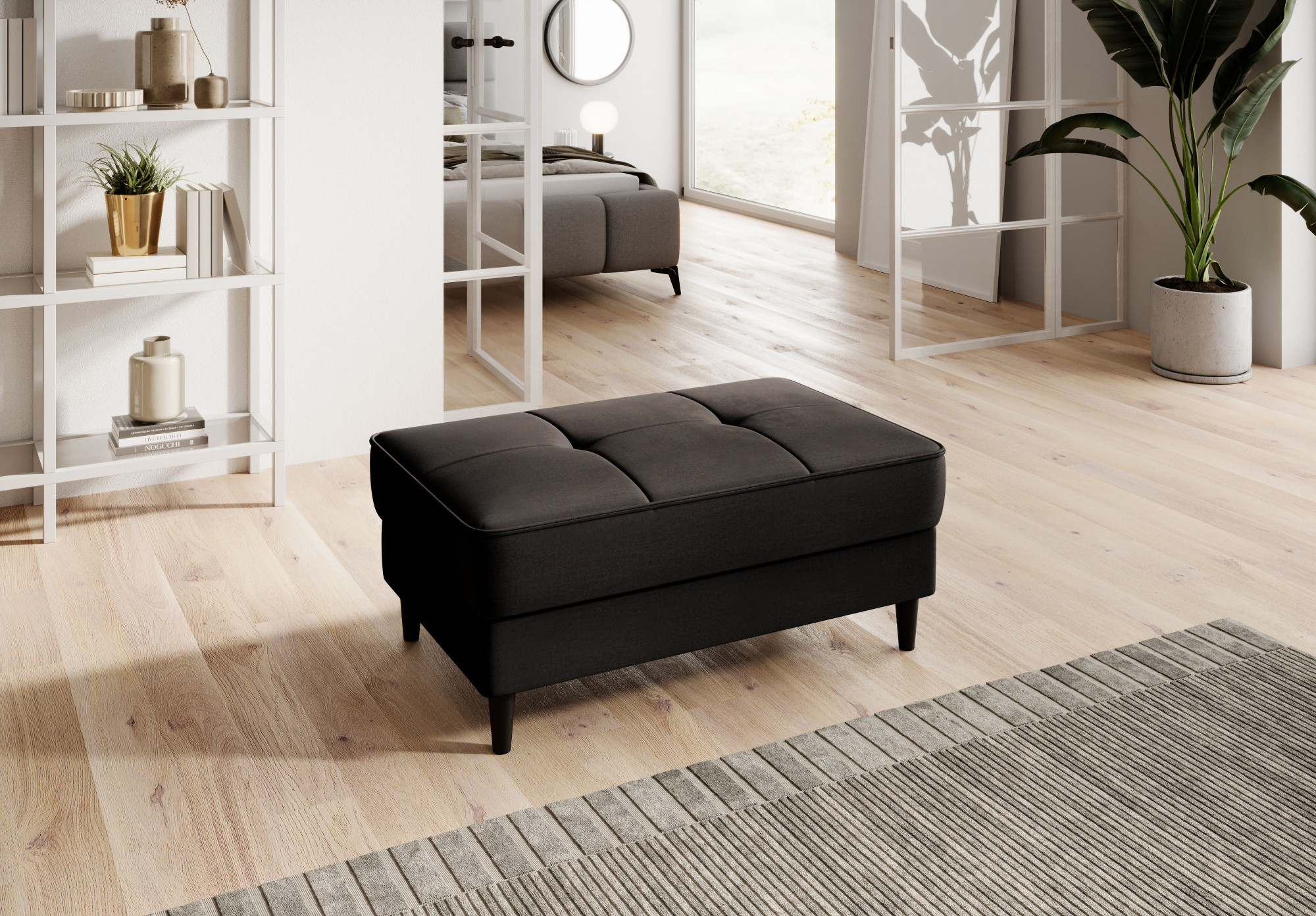 Model Bellis je naším vysoce kvalitním návrhem, který zlepší uspořádání vašeho interiéru. Široké, pohodlné sedadlo tohoto kusu nábytku vám umožní pohodlně odpočívat. Jeho minimalistická forma a jemné prošívání fungují výjimečně dobře s moderními interiérovými styly. Interiér Bellis je vybaven speciálním mechanismem, který umožňuje jeho otevření. Bellis může být použit jako další prostor pro ukládání věcí. Puf je vyroben pouze z vysoce kvalitních materiálů: vysoce elastické HR pěny, pěny T2130 a vlnité pružiny typu B. Tyto komponenty společně činí nabízený produkt velmi pružným. Nohy taburetu jsou vyrobeny z masivního dřeva. Poskytují mu dostatečně vysokou stabilitu a činí jeho lehký tvar příjemným pro oko.