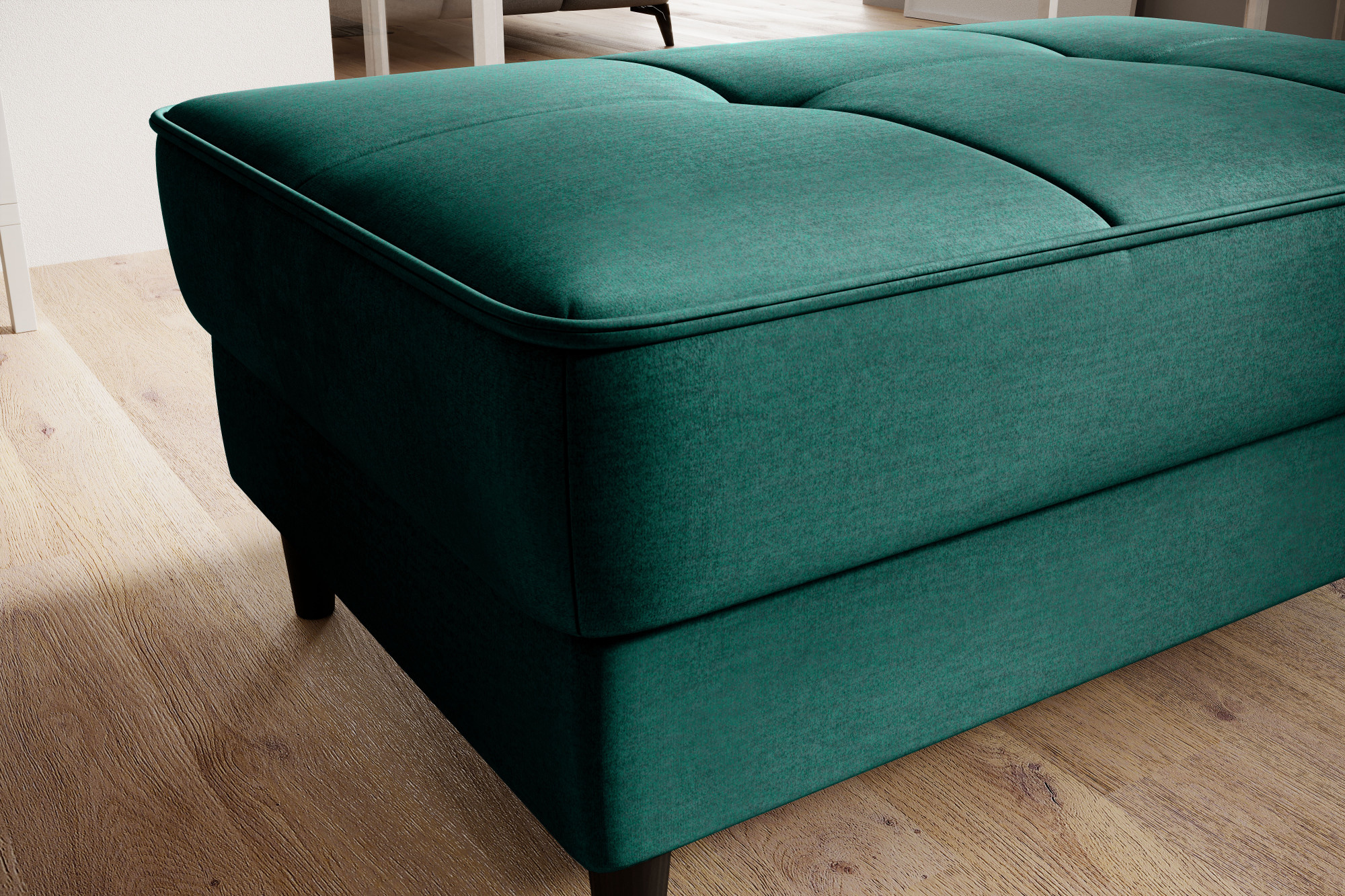 Model Bellis je naším vysoce kvalitním návrhem, který zlepší uspořádání vašeho interiéru. Široké, pohodlné sedadlo tohoto kusu nábytku vám umožní pohodlně odpočívat. Jeho minimalistická forma a jemné prošívání fungují výjimečně dobře s moderními interiérovými styly. Interiér Bellis je vybaven speciálním mechanismem, který umožňuje jeho otevření. Bellis může být použit jako další prostor pro ukládání věcí. Puf je vyroben pouze z vysoce kvalitních materiálů: vysoce elastické HR pěny, pěny T2130 a vlnité pružiny typu B. Tyto komponenty společně činí nabízený produkt velmi pružným. Nohy taburetu jsou vyrobeny z masivního dřeva. Poskytují mu dostatečně vysokou stabilitu a činí jeho lehký tvar příjemným pro oko.