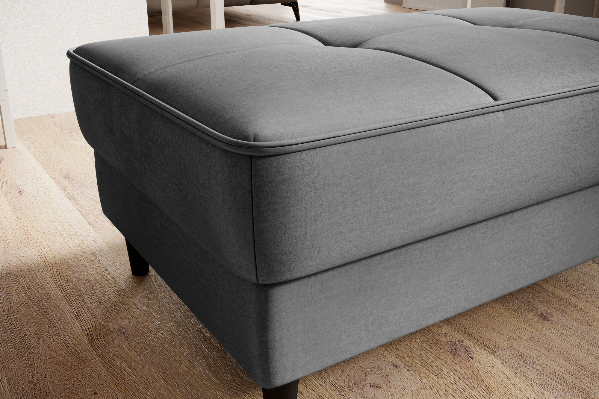 Model Bellis je naším vysoce kvalitním návrhem, který zlepší uspořádání vašeho interiéru. Široké, pohodlné sedadlo tohoto kusu nábytku vám umožní pohodlně odpočívat. Jeho minimalistická forma a jemné prošívání fungují výjimečně dobře s moderními interiérovými styly. Interiér Bellis je vybaven speciálním mechanismem, který umožňuje jeho otevření. Bellis může být použit jako další prostor pro ukládání věcí. Puf je vyroben pouze z vysoce kvalitních materiálů: vysoce elastické HR pěny, pěny T2130 a vlnité pružiny typu B. Tyto komponenty společně činí nabízený produkt velmi pružným. Nohy taburetu jsou vyrobeny z masivního dřeva. Poskytují mu dostatečně vysokou stabilitu a činí jeho lehký tvar příjemným pro oko.