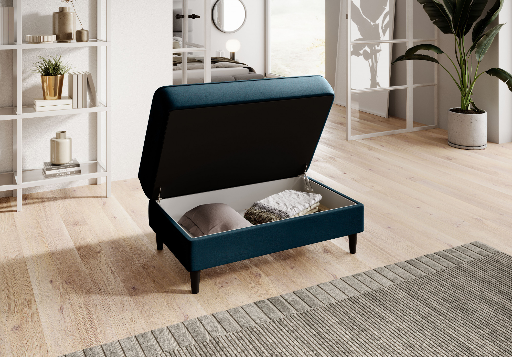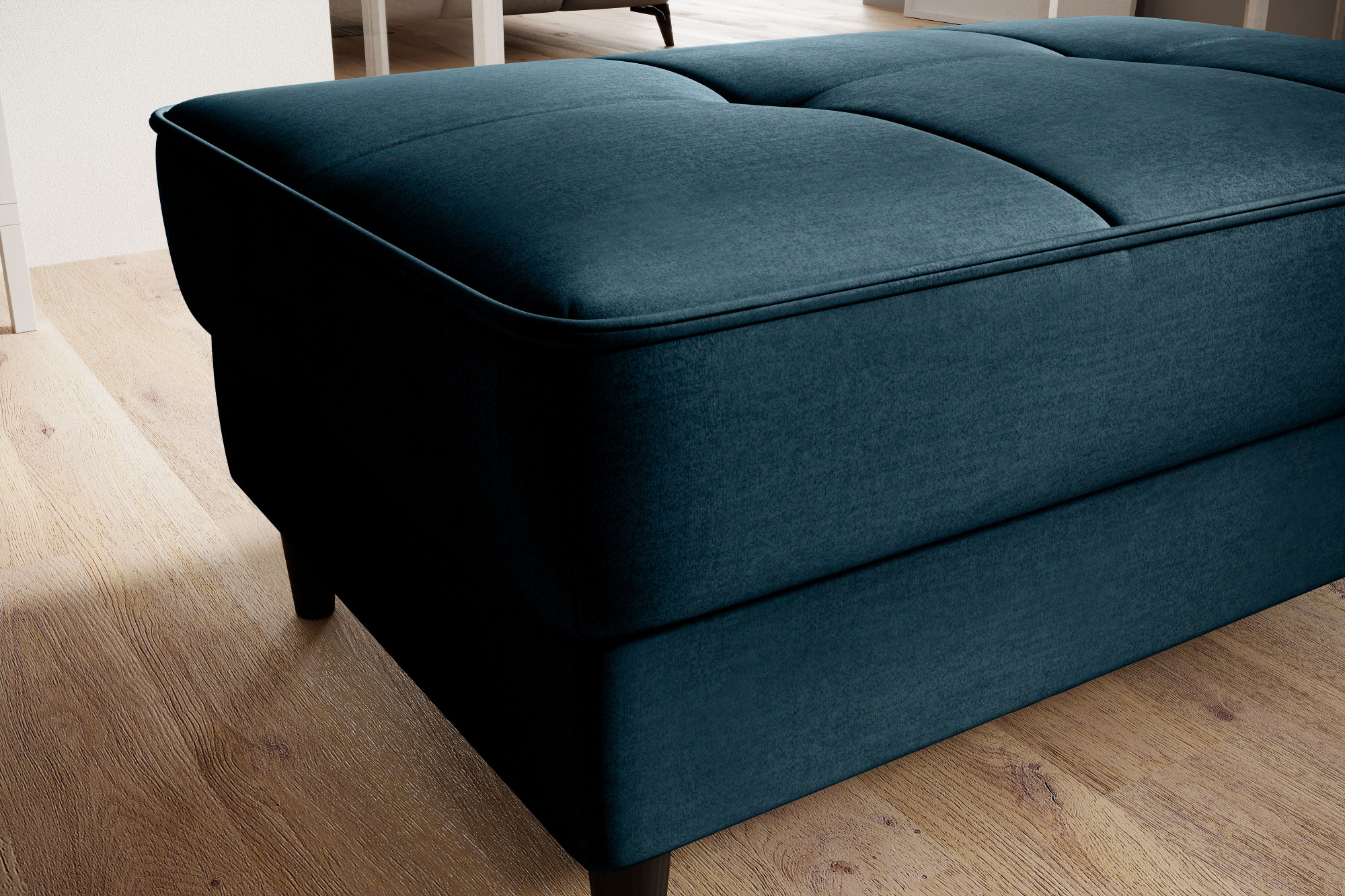 Model Bellis je naším vysoce kvalitním návrhem, který zlepší uspořádání vašeho interiéru. Široké, pohodlné sedadlo tohoto kusu nábytku vám umožní pohodlně odpočívat. Jeho minimalistická forma a jemné prošívání fungují výjimečně dobře s moderními interiérovými styly. Interiér Bellis je vybaven speciálním mechanismem, který umožňuje jeho otevření. Bellis může být použit jako další prostor pro ukládání věcí. Puf je vyroben pouze z vysoce kvalitních materiálů: vysoce elastické HR pěny, pěny T2130 a vlnité pružiny typu B. Tyto komponenty společně činí nabízený produkt velmi pružným. Nohy taburetu jsou vyrobeny z masivního dřeva. Poskytují mu dostatečně vysokou stabilitu a činí jeho lehký tvar příjemným pro oko.