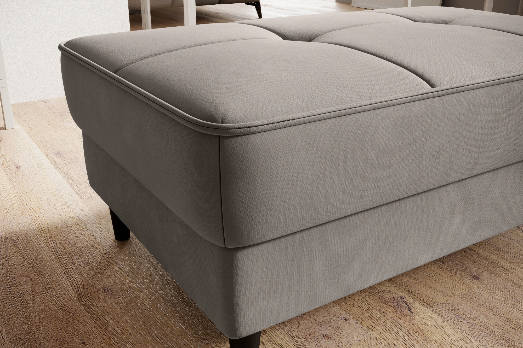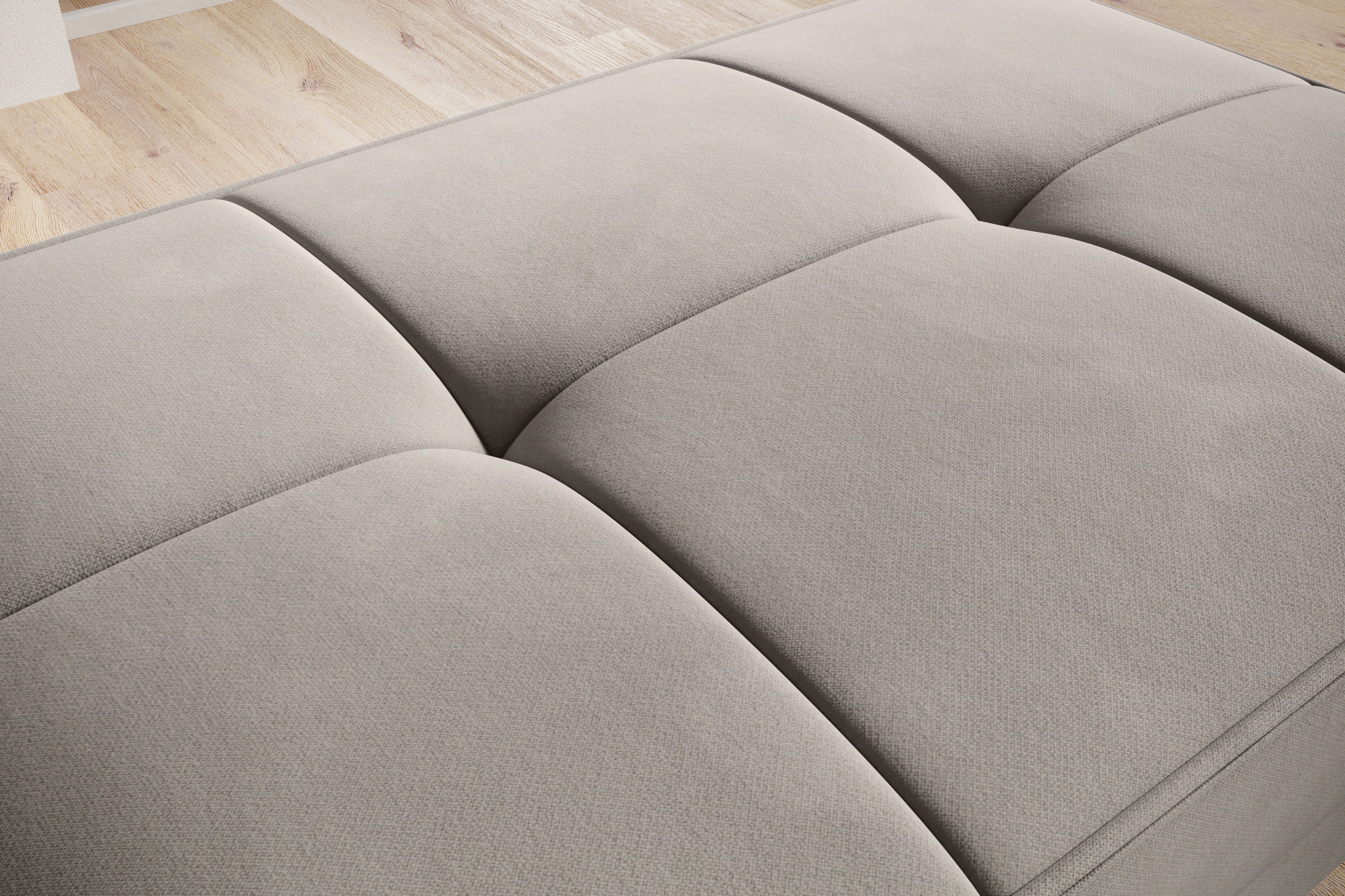 Model Bellis je naším vysoce kvalitním návrhem, který zlepší uspořádání vašeho interiéru. Široké, pohodlné sedadlo tohoto kusu nábytku vám umožní pohodlně odpočívat. Jeho minimalistická forma a jemné prošívání fungují výjimečně dobře s moderními interiérovými styly. Interiér Bellis je vybaven speciálním mechanismem, který umožňuje jeho otevření. Bellis může být použit jako další prostor pro ukládání věcí. Puf je vyroben pouze z vysoce kvalitních materiálů: vysoce elastické HR pěny, pěny T2130 a vlnité pružiny typu B. Tyto komponenty společně činí nabízený produkt velmi pružným. Nohy taburetu jsou vyrobeny z masivního dřeva. Poskytují mu dostatečně vysokou stabilitu a činí jeho lehký tvar příjemným pro oko.