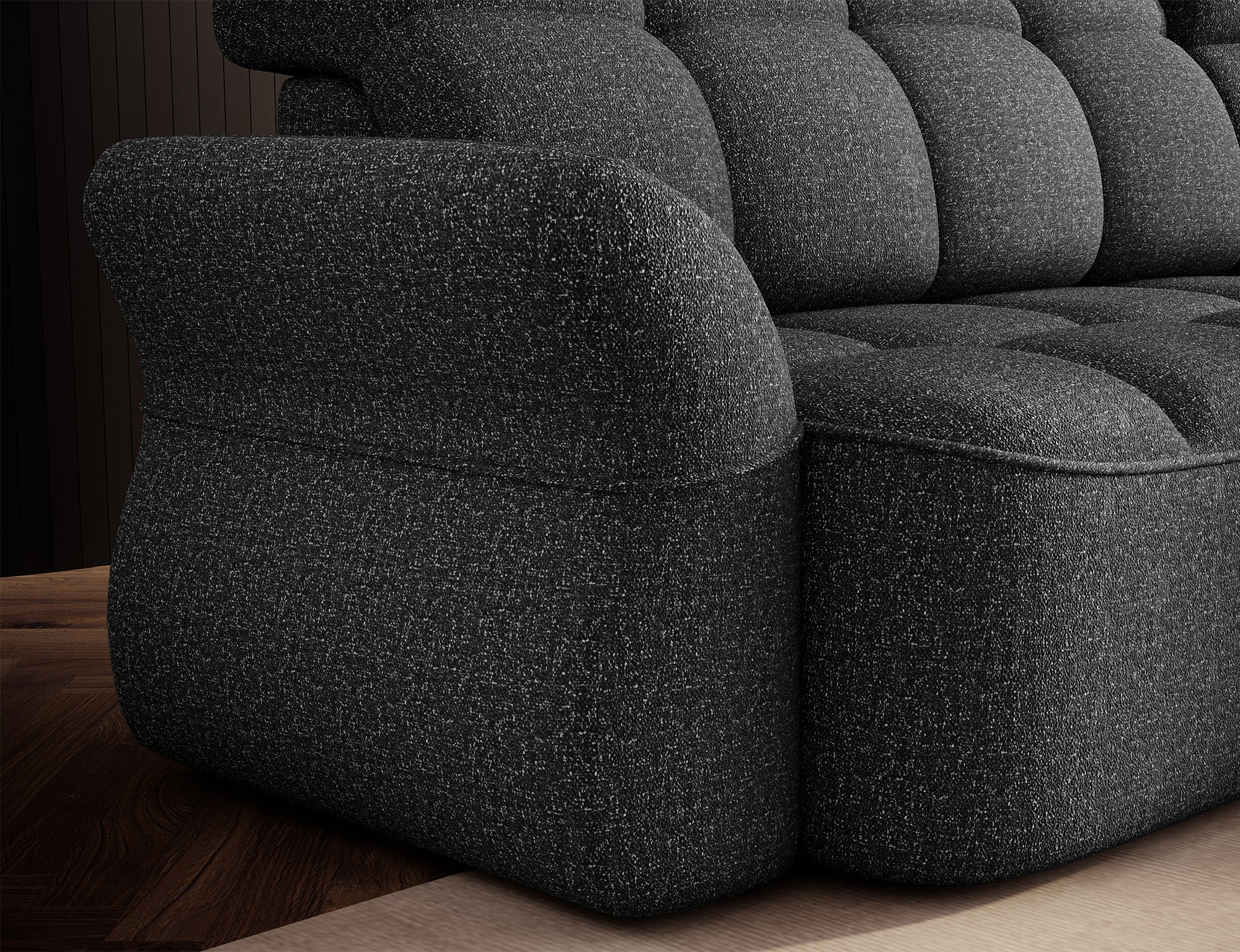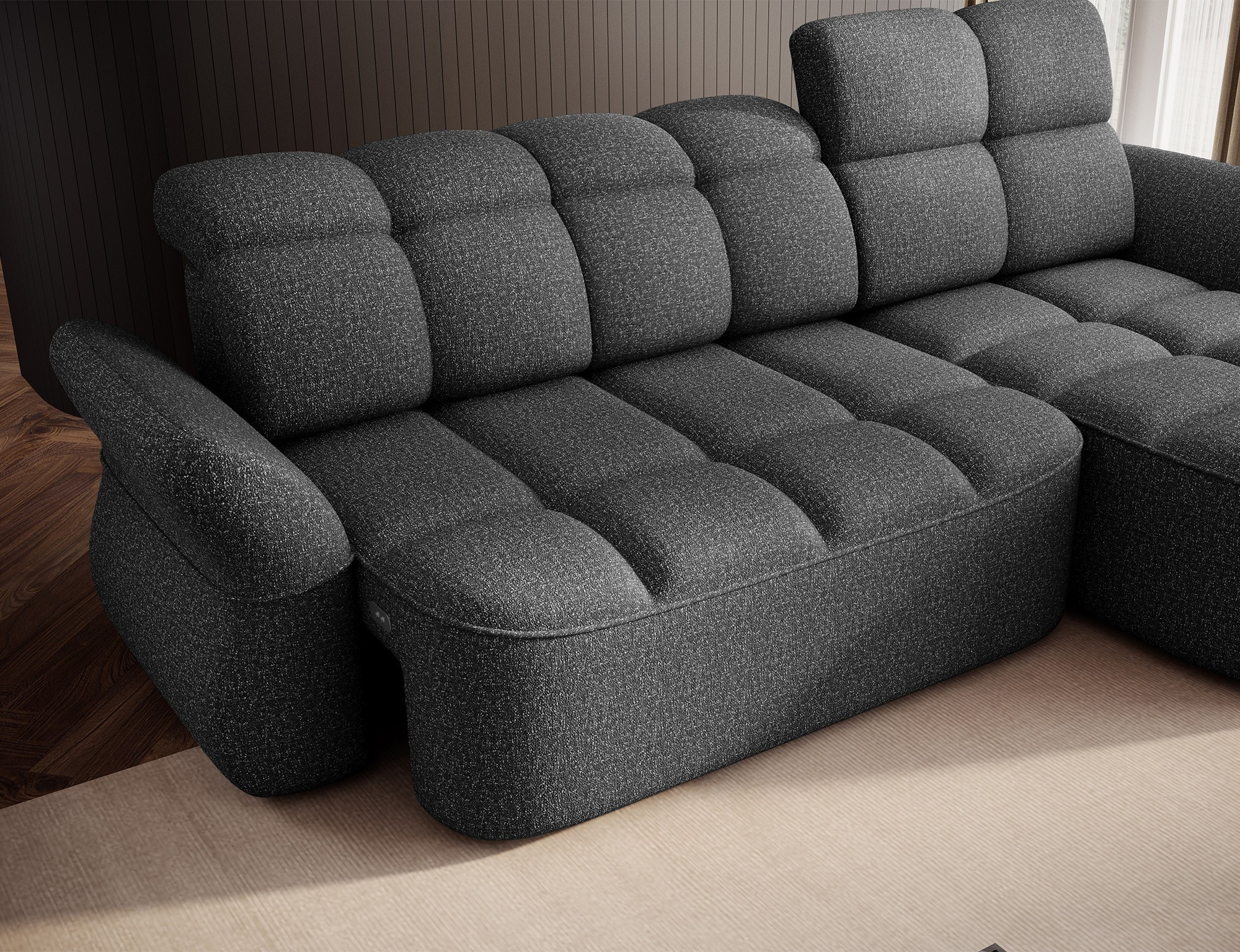 Rohová pohovka Beneth je dokonalou kombinací moderního designu a maximálního pohodlí. Jeho prostorné sedadlo, vyplněné vlnovými pružinami typu B a vysoce odolnou pěnou HR3030, nabízí ideální rovnováhu mezi měkkostí a oporou. Opěradlo, které je vybaveno čalouněným pásem a polyuretanovou pěnou T2315, se přizpůsobí vašemu držení těla pro maximální relaxaci. Ale Beneth není jen o vzhledu – je nabitý funkcionalitou. Je vybaven funkcí spaní a úložným prostorem, zatímco elektrické prodloužení sedadla vám umožňuje snadno nastavit hloubku. Plně čalouněné opěradlo z něj činí ohromující středobod z každého úhlu a jeho elegantní černé plastové nohy dodávají nádech lehkosti a moderní elegance.