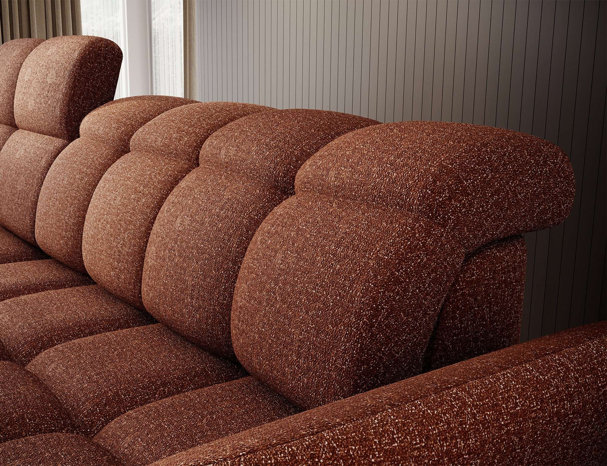Rohová pohovka Beneth je dokonalou kombinací moderního designu a maximálního pohodlí. Jeho prostorné sedadlo, vyplněné vlnovými pružinami typu B a vysoce odolnou pěnou HR3030, nabízí ideální rovnováhu mezi měkkostí a oporou. Opěradlo, které je vybaveno čalouněným pásem a polyuretanovou pěnou T2315, se přizpůsobí vašemu držení těla pro maximální relaxaci. Ale Beneth není jen o vzhledu – je nabitý funkcionalitou. Je vybaven funkcí spaní a úložným prostorem, zatímco elektrické prodloužení sedadla vám umožňuje snadno nastavit hloubku. Plně čalouněné opěradlo z něj činí ohromující středobod z každého úhlu a jeho elegantní černé plastové nohy dodávají nádech lehkosti a moderní elegance.
