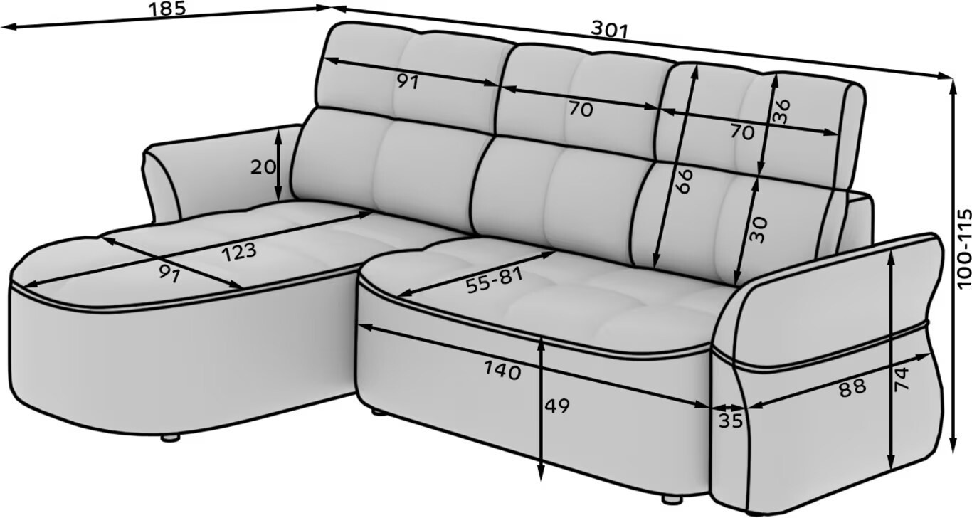 Rohová pohovka Beneth je dokonalou kombinací moderního designu a maximálního pohodlí. Jeho prostorné sedadlo, vyplněné vlnovými pružinami typu B a vysoce odolnou pěnou HR3030, nabízí ideální rovnováhu mezi měkkostí a oporou. Opěradlo, které je vybaveno čalouněným pásem a polyuretanovou pěnou T2315, se přizpůsobí vašemu držení těla pro maximální relaxaci. Ale Beneth není jen o vzhledu – je nabitý funkcionalitou. Je vybaven funkcí spaní a úložným prostorem, zatímco elektrické prodloužení sedadla vám umožňuje snadno nastavit hloubku. Plně čalouněné opěradlo z něj činí ohromující středobod z každého úhlu a jeho elegantní černé plastové nohy dodávají nádech lehkosti a moderní elegance.