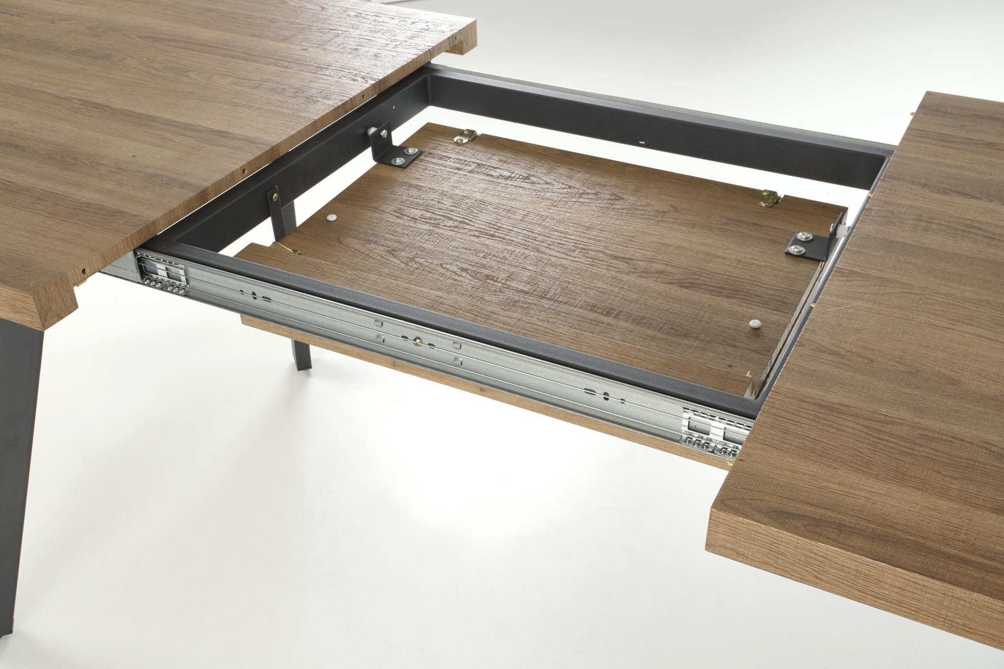 rozměry: 150÷220/85/76 cm, skládací stůl, materiál: MDF laminovaná / práškově lakovaná ocel, barva: deska - medový ořech, nohy - černá POZNÁMKA: po rozlití jakékoliv tekutiny na desku stolu je třeba ji ihned otřít do sucha, aby se zabránilo absorpci vody materiálem desky stolu.