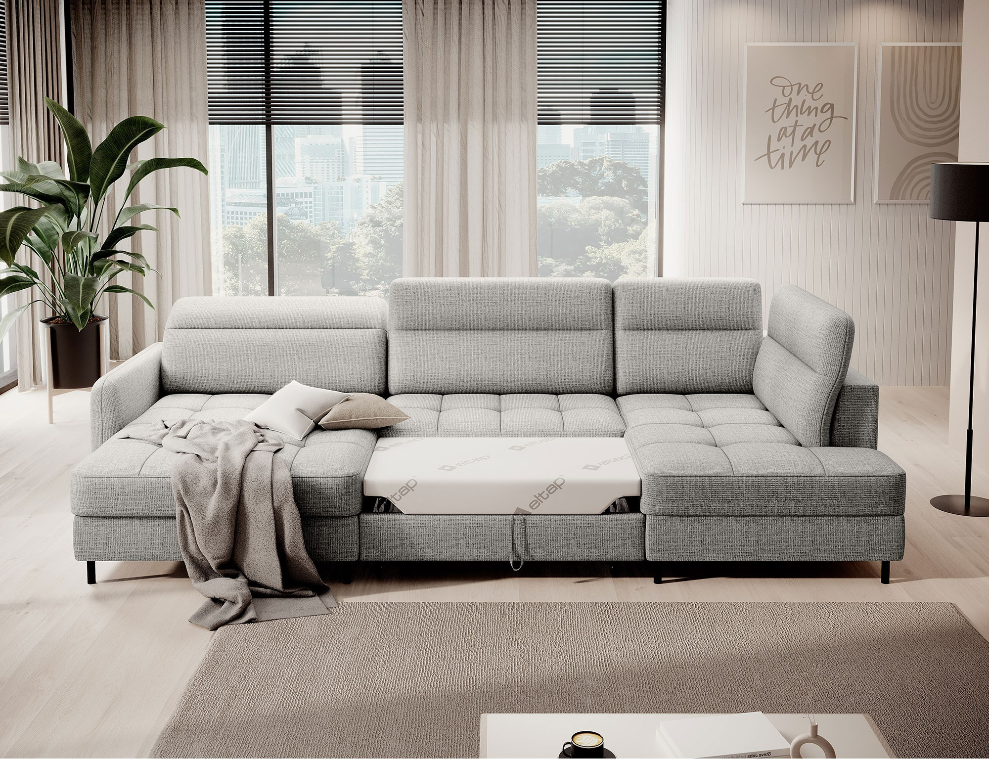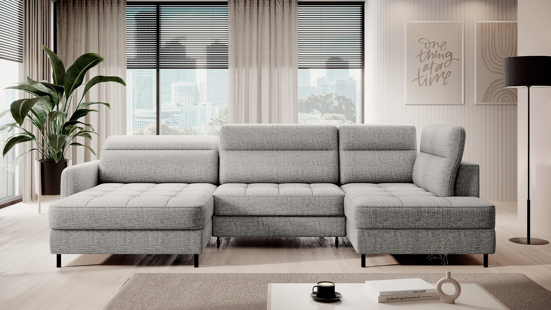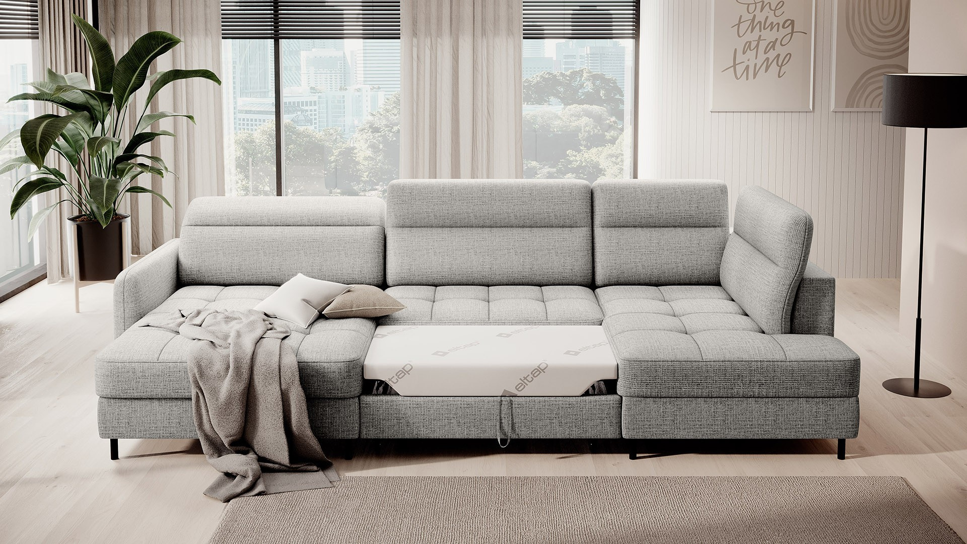 Rohová pohovka Berrto je neuvěřitelně elegantní kus nábytku pro váš obývací pokoj, navržený tak, aby vám poskytl výjimečné pohodlí a funkčnost. Tato elegantní rohová pohovka kombinuje moderní design s použitím vysoce kvalitních komponentů. Rohová pohovka Berrto je vybavena vlnovými pružinami typu B, které v kombinaci s vysoce elastickou pěnou HR + T2130 vytvářejí povrch s bezkonkurenčním komfortem. Tento kus nábytku je měkký, flexibilní a dokonale se přizpůsobí tvaru vašeho těla, což poskytuje nejen relaxaci, ale také úlevu svalům. Použití čalounických popruhů a pěny T2130 v opěradle rohové pohovky Berrto zajišťuje její odolnost a odolnost vůči deformacím. Nemusíte se obávat nevzhledných vrásek - tato rohová pohovka si zachová svůj původní vzhled po mnoho let. Můžete jej rychle a snadno přeměnit na pohodlnou postel, která vám i vašim hostům poskytne klidný spánek. Navíc rohová pohovka skrývá prostorný úložný prostor na ložní prádlo, který poskytuje dostatek místa pro všechny potřebné textilie. Rohová pohovka Berrto nabízí nejen pohodlí, ale také stabilitu. S působivou nosností 390 kg si jej můžete užívat po mnoho let, aniž byste se museli obávat o jeho odolnost. Rohová pohovka Berrto vyniká nejen svou funkčností, ale také estetickým designem. Černé ocelové nohy mu dodávají moderní charakter a elegantní design z něj činí výrazný prvek vaší obývací místnosti. Rohová pohovka Berrto je vybavena snadno použitelným mechanismem typu Dolphin, který umožňuje rychle ji přeměnit na pohodlnou postel. Toto je ideální řešení, když potřebujete prostor na spaní pro hosty. Rohová pohovka Berrto kombinuje luxus, pohodlí a funkčnost. Jeho vysoce kvalitní řemeslné zpracování a pečlivé dokončení z něj činí nejen ústřední bod vašeho obývacího pokoje, ale také místo pro relaxaci a trávení času s přáteli a rodinou.