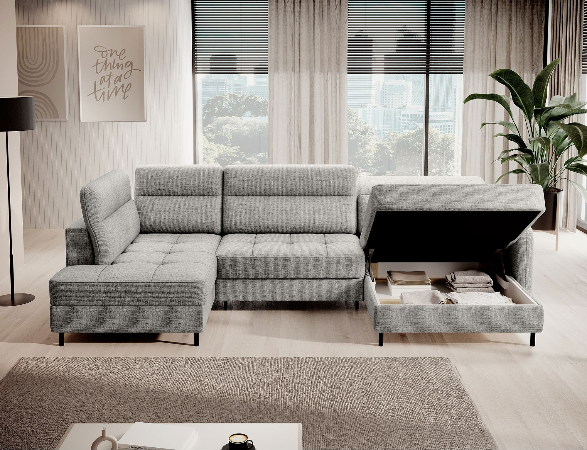 Rohová pohovka Berrto je neuvěřitelně elegantní kus nábytku pro váš obývací pokoj, navržený tak, aby vám poskytl výjimečné pohodlí a funkčnost. Tato elegantní rohová pohovka kombinuje moderní design s použitím vysoce kvalitních komponentů. Rohová pohovka Berrto je vybavena vlnovými pružinami typu B, které v kombinaci s vysoce elastickou pěnou HR + T2130 vytvářejí povrch s bezkonkurenčním komfortem. Tento kus nábytku je měkký, flexibilní a dokonale se přizpůsobí tvaru vašeho těla, což poskytuje nejen relaxaci, ale také úlevu svalům. Použití čalounických popruhů a pěny T2130 v opěradle rohové pohovky Berrto zajišťuje její odolnost a odolnost vůči deformacím. Nemusíte se obávat nevzhledných vrásek - tato rohová pohovka si zachová svůj původní vzhled po mnoho let. Můžete jej rychle a snadno přeměnit na pohodlnou postel, která vám i vašim hostům poskytne klidný spánek. Navíc rohová pohovka skrývá prostorný úložný prostor na ložní prádlo, který poskytuje dostatek místa pro všechny potřebné textilie. Rohová pohovka Berrto nabízí nejen pohodlí, ale také stabilitu. S působivou nosností 390 kg si jej můžete užívat po mnoho let, aniž byste se museli obávat o jeho odolnost. Rohová pohovka Berrto vyniká nejen svou funkčností, ale také estetickým designem. Černé ocelové nohy mu dodávají moderní charakter a elegantní design z něj činí výrazný prvek vaší obývací místnosti. Rohová pohovka Berrto je vybavena snadno použitelným mechanismem typu Dolphin, který umožňuje rychle ji přeměnit na pohodlnou postel. Toto je ideální řešení, když potřebujete prostor na spaní pro hosty. Rohová pohovka Berrto kombinuje luxus, pohodlí a funkčnost. Jeho vysoce kvalitní řemeslné zpracování a pečlivé dokončení z něj činí nejen ústřední bod vašeho obývacího pokoje, ale také místo pro relaxaci a trávení času s přáteli a rodinou.
