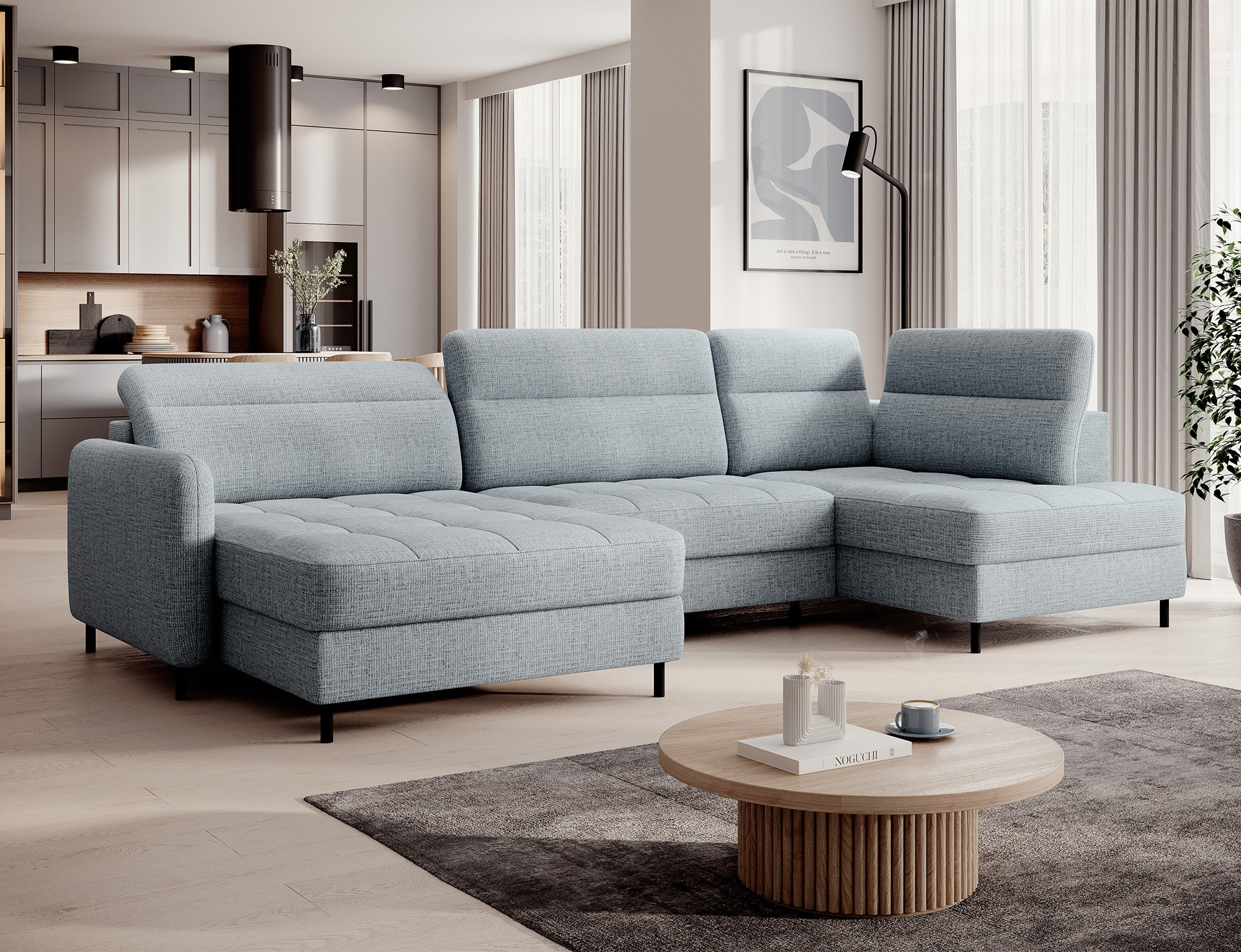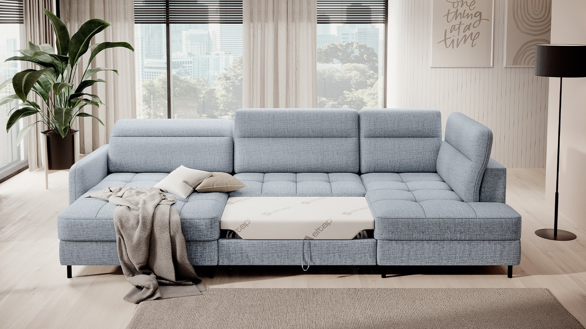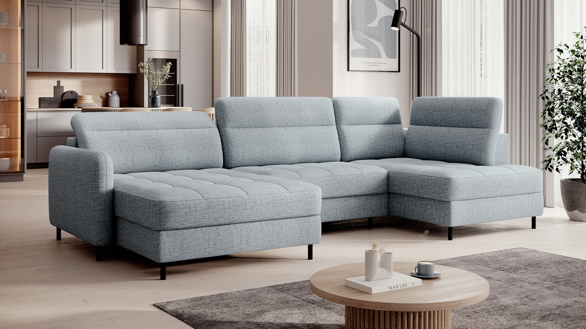 Rohová pohovka Berrto je neuvěřitelně elegantní kus nábytku pro váš obývací pokoj, navržený tak, aby vám poskytl výjimečné pohodlí a funkčnost. Tato elegantní rohová pohovka kombinuje moderní design s použitím vysoce kvalitních komponentů. Rohová pohovka Berrto je vybavena vlnovými pružinami typu B, které v kombinaci s vysoce elastickou pěnou HR + T2130 vytvářejí povrch s bezkonkurenčním komfortem. Tento kus nábytku je měkký, flexibilní a dokonale se přizpůsobí tvaru vašeho těla, což poskytuje nejen relaxaci, ale také úlevu svalům. Použití čalounických popruhů a pěny T2130 v opěradle rohové pohovky Berrto zajišťuje její odolnost a odolnost vůči deformacím. Nemusíte se obávat nevzhledných vrásek - tato rohová pohovka si zachová svůj původní vzhled po mnoho let. Můžete jej rychle a snadno přeměnit na pohodlnou postel, která vám i vašim hostům poskytne klidný spánek. Navíc rohová pohovka skrývá prostorný úložný prostor na ložní prádlo, který poskytuje dostatek místa pro všechny potřebné textilie. Rohová pohovka Berrto nabízí nejen pohodlí, ale také stabilitu. S působivou nosností 390 kg si jej můžete užívat po mnoho let, aniž byste se museli obávat o jeho odolnost. Rohová pohovka Berrto vyniká nejen svou funkčností, ale také estetickým designem. Černé ocelové nohy mu dodávají moderní charakter a elegantní design z něj činí výrazný prvek vaší obývací místnosti. Rohová pohovka Berrto je vybavena snadno použitelným mechanismem typu Dolphin, který umožňuje rychle ji přeměnit na pohodlnou postel. Toto je ideální řešení, když potřebujete prostor na spaní pro hosty. Rohová pohovka Berrto kombinuje luxus, pohodlí a funkčnost. Jeho vysoce kvalitní řemeslné zpracování a pečlivé dokončení z něj činí nejen ústřední bod vašeho obývacího pokoje, ale také místo pro relaxaci a trávení času s přáteli a rodinou.