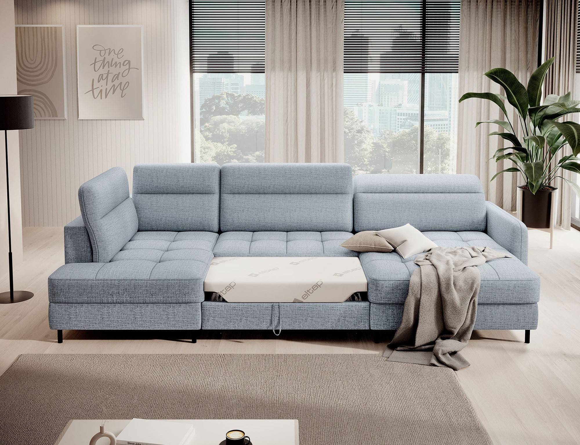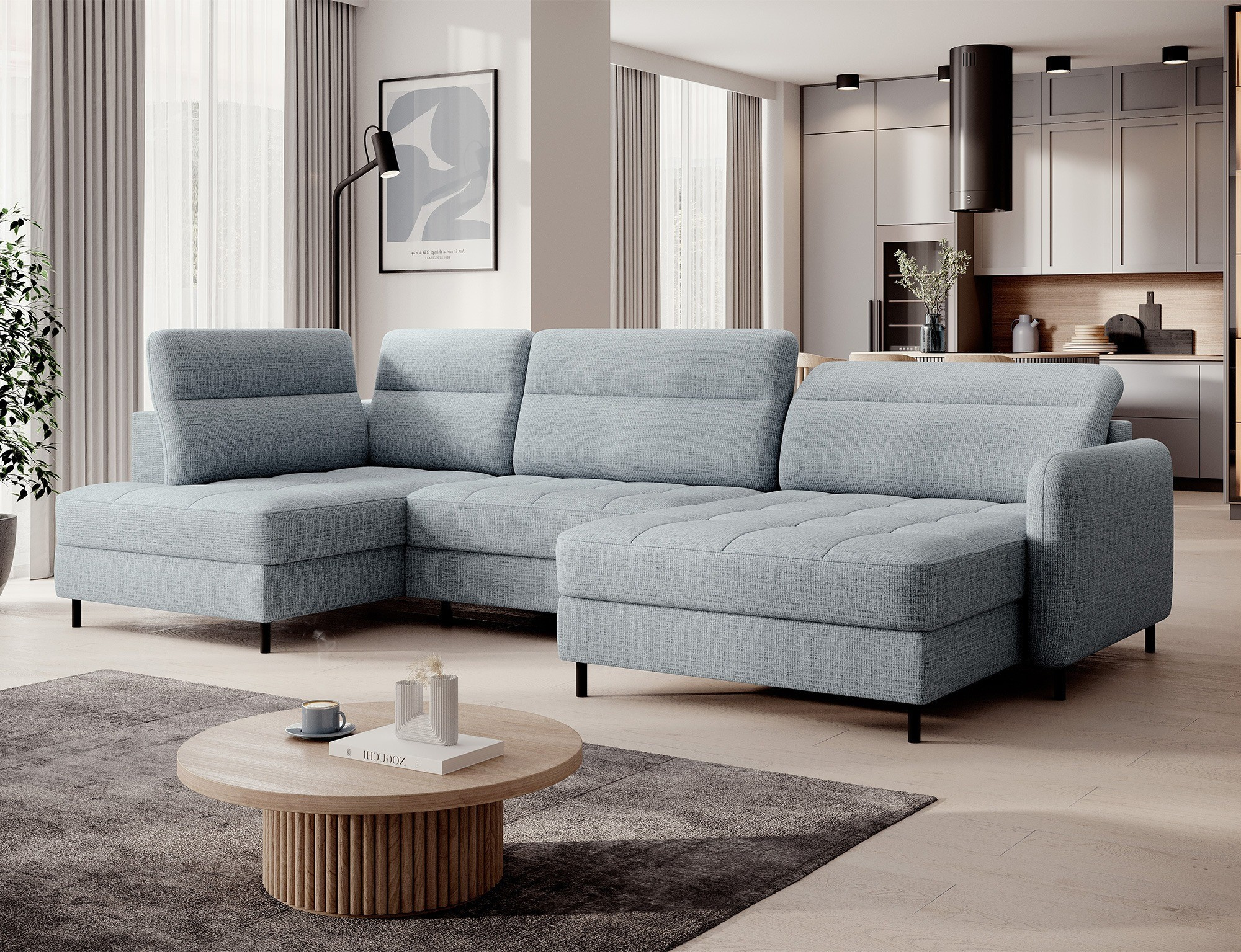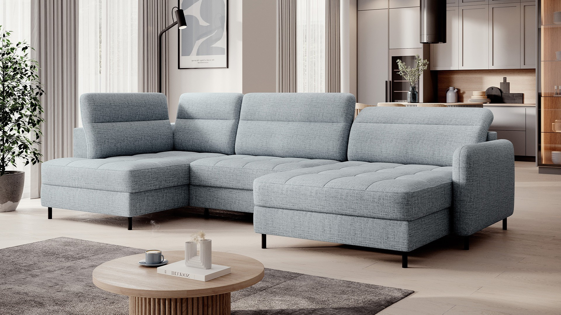 Rohová pohovka Berrto je neuvěřitelně elegantní kus nábytku pro váš obývací pokoj, navržený tak, aby vám poskytl výjimečné pohodlí a funkčnost. Tato elegantní rohová pohovka kombinuje moderní design s použitím vysoce kvalitních komponentů. Rohová pohovka Berrto je vybavena vlnovými pružinami typu B, které v kombinaci s vysoce elastickou pěnou HR + T2130 vytvářejí povrch s bezkonkurenčním komfortem. Tento kus nábytku je měkký, flexibilní a dokonale se přizpůsobí tvaru vašeho těla, což poskytuje nejen relaxaci, ale také úlevu svalům. Použití čalounických popruhů a pěny T2130 v opěradle rohové pohovky Berrto zajišťuje její odolnost a odolnost vůči deformacím. Nemusíte se obávat nevzhledných vrásek - tato rohová pohovka si zachová svůj původní vzhled po mnoho let. Můžete jej rychle a snadno přeměnit na pohodlnou postel, která vám i vašim hostům poskytne klidný spánek. Navíc rohová pohovka skrývá prostorný úložný prostor na ložní prádlo, který poskytuje dostatek místa pro všechny potřebné textilie. Rohová pohovka Berrto nabízí nejen pohodlí, ale také stabilitu. S působivou nosností 390 kg si jej můžete užívat po mnoho let, aniž byste se museli obávat o jeho odolnost. Rohová pohovka Berrto vyniká nejen svou funkčností, ale také estetickým designem. Černé ocelové nohy mu dodávají moderní charakter a elegantní design z něj činí výrazný prvek vaší obývací místnosti. Rohová pohovka Berrto je vybavena snadno použitelným mechanismem typu Dolphin, který umožňuje rychle ji přeměnit na pohodlnou postel. Toto je ideální řešení, když potřebujete prostor na spaní pro hosty. Rohová pohovka Berrto kombinuje luxus, pohodlí a funkčnost. Jeho vysoce kvalitní řemeslné zpracování a pečlivé dokončení z něj činí nejen ústřední bod vašeho obývacího pokoje, ale také místo pro relaxaci a trávení času s přáteli a rodinou.