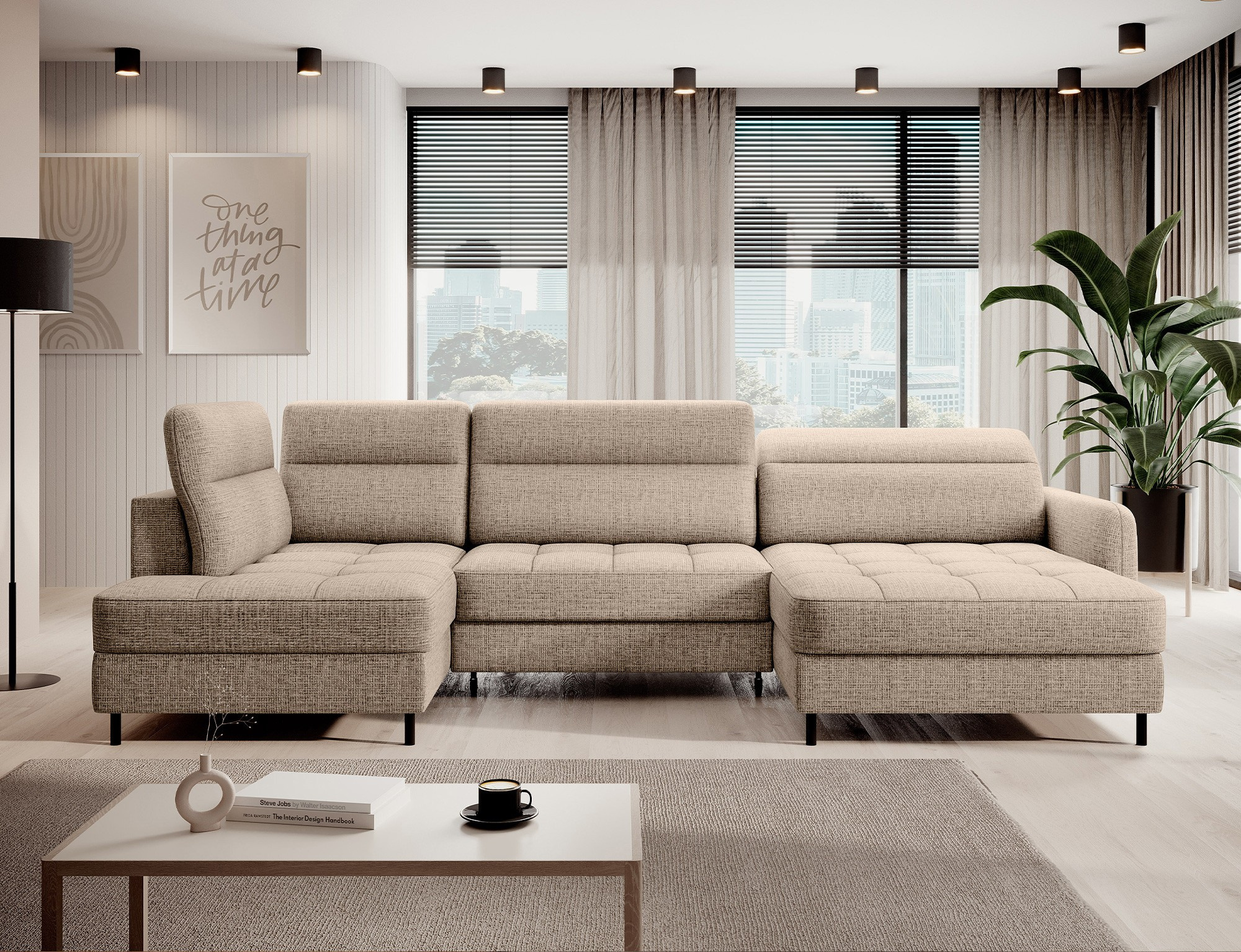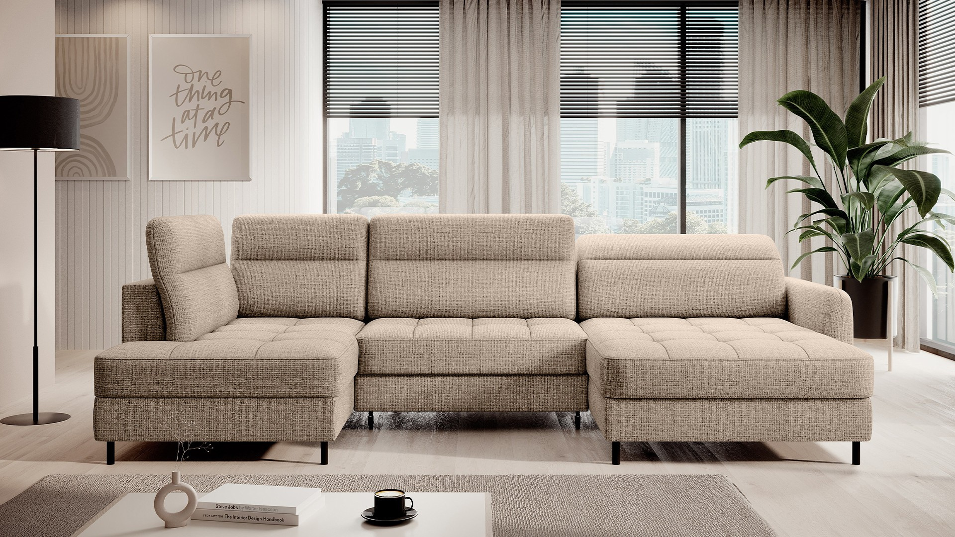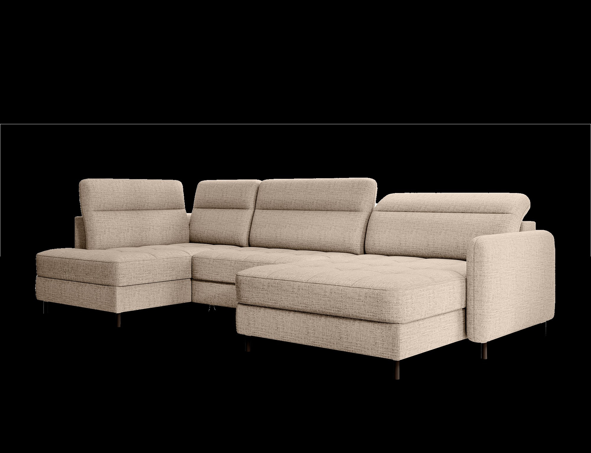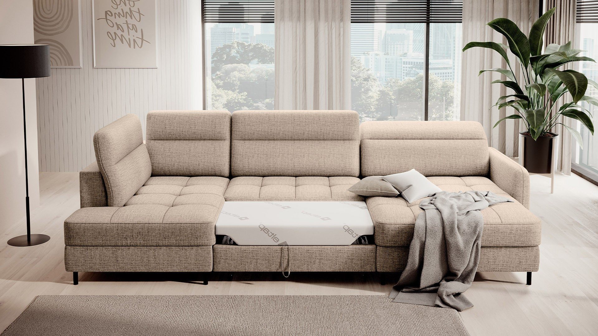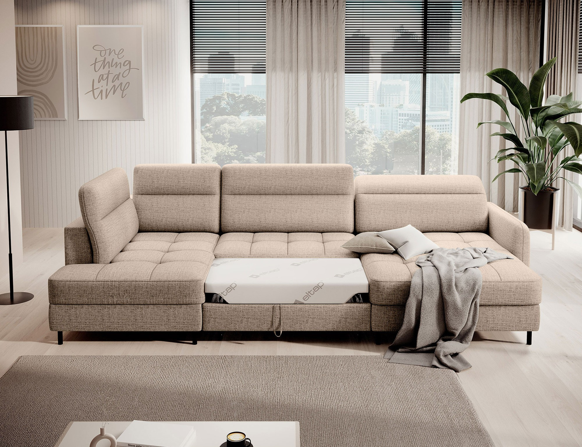 Rohová pohovka Berrto je neuvěřitelně elegantní kus nábytku pro váš obývací pokoj, navržený tak, aby vám poskytl výjimečné pohodlí a funkčnost. Tato elegantní rohová pohovka kombinuje moderní design s použitím vysoce kvalitních komponentů. Rohová pohovka Berrto je vybavena vlnovými pružinami typu B, které v kombinaci s vysoce elastickou pěnou HR + T2130 vytvářejí povrch s bezkonkurenčním komfortem. Tento kus nábytku je měkký, flexibilní a dokonale se přizpůsobí tvaru vašeho těla, což poskytuje nejen relaxaci, ale také úlevu svalům. Použití čalounických popruhů a pěny T2130 v opěradle rohové pohovky Berrto zajišťuje její odolnost a odolnost vůči deformacím. Nemusíte se obávat nevzhledných vrásek - tato rohová pohovka si zachová svůj původní vzhled po mnoho let. Můžete jej rychle a snadno přeměnit na pohodlnou postel, která vám i vašim hostům poskytne klidný spánek. Navíc rohová pohovka skrývá prostorný úložný prostor na ložní prádlo, který poskytuje dostatek místa pro všechny potřebné textilie. Rohová pohovka Berrto nabízí nejen pohodlí, ale také stabilitu. S působivou nosností 390 kg si jej můžete užívat po mnoho let, aniž byste se museli obávat o jeho odolnost. Rohová pohovka Berrto vyniká nejen svou funkčností, ale také estetickým designem. Černé ocelové nohy mu dodávají moderní charakter a elegantní design z něj činí výrazný prvek vaší obývací místnosti. Rohová pohovka Berrto je vybavena snadno použitelným mechanismem typu Dolphin, který umožňuje rychle ji přeměnit na pohodlnou postel. Toto je ideální řešení, když potřebujete prostor na spaní pro hosty. Rohová pohovka Berrto kombinuje luxus, pohodlí a funkčnost. Jeho vysoce kvalitní řemeslné zpracování a pečlivé dokončení z něj činí nejen ústřední bod vašeho obývacího pokoje, ale také místo pro relaxaci a trávení času s přáteli a rodinou.