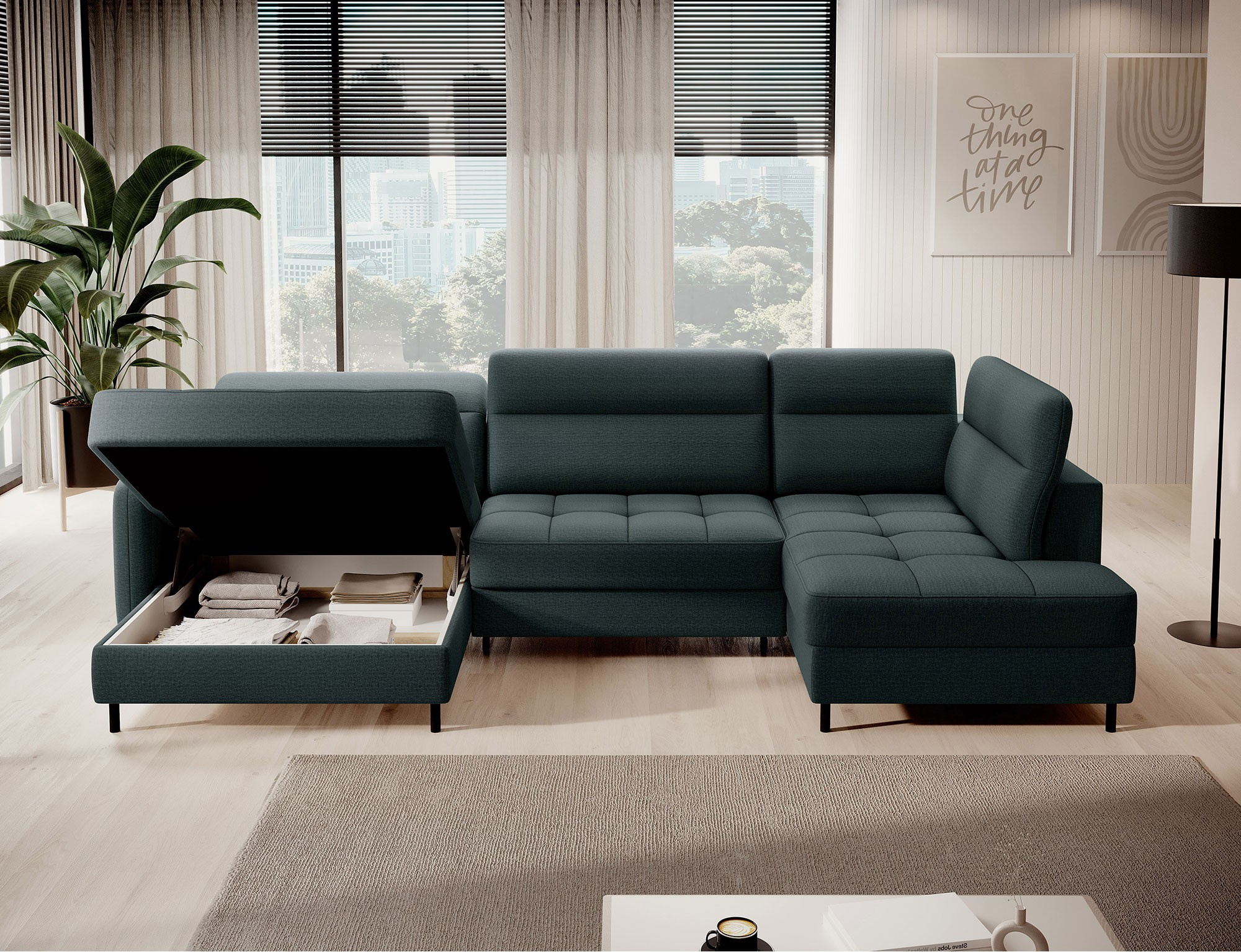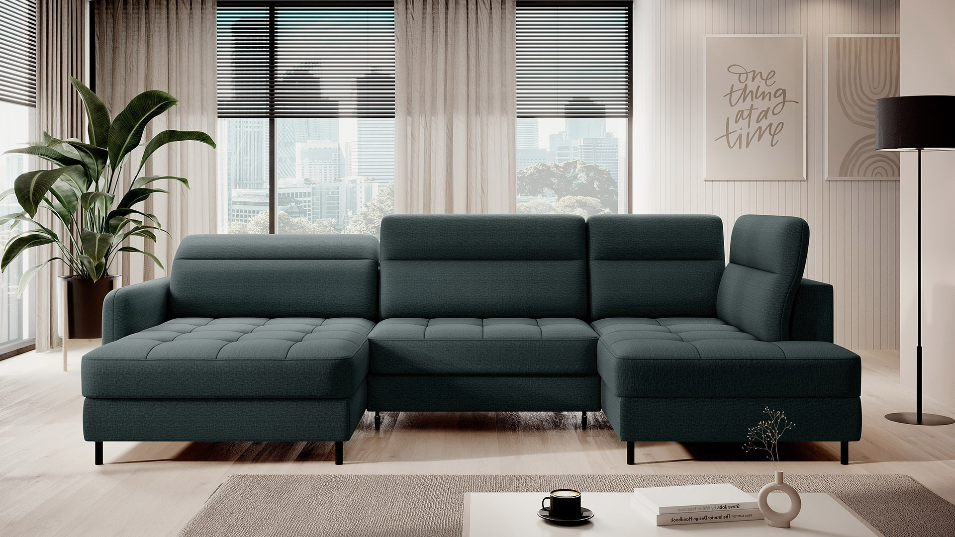 Rohová pohovka Berrto je neuvěřitelně elegantní kus nábytku pro váš obývací pokoj, navržený tak, aby vám poskytl výjimečné pohodlí a funkčnost. Tato elegantní rohová pohovka kombinuje moderní design s použitím vysoce kvalitních komponentů. Rohová pohovka Berrto je vybavena vlnovými pružinami typu B, které v kombinaci s vysoce elastickou pěnou HR + T2130 vytvářejí povrch s bezkonkurenčním komfortem. Tento kus nábytku je měkký, flexibilní a dokonale se přizpůsobí tvaru vašeho těla, což poskytuje nejen relaxaci, ale také úlevu svalům. Použití čalounických popruhů a pěny T2130 v opěradle rohové pohovky Berrto zajišťuje její odolnost a odolnost vůči deformacím. Nemusíte se obávat nevzhledných vrásek - tato rohová pohovka si zachová svůj původní vzhled po mnoho let. Můžete jej rychle a snadno přeměnit na pohodlnou postel, která vám i vašim hostům poskytne klidný spánek. Navíc rohová pohovka skrývá prostorný úložný prostor na ložní prádlo, který poskytuje dostatek místa pro všechny potřebné textilie. Rohová pohovka Berrto nabízí nejen pohodlí, ale také stabilitu. S působivou nosností 390 kg si jej můžete užívat po mnoho let, aniž byste se museli obávat o jeho odolnost. Rohová pohovka Berrto vyniká nejen svou funkčností, ale také estetickým designem. Černé ocelové nohy mu dodávají moderní charakter a elegantní design z něj činí výrazný prvek vaší obývací místnosti. Rohová pohovka Berrto je vybavena snadno použitelným mechanismem typu Dolphin, který umožňuje rychle ji přeměnit na pohodlnou postel. Toto je ideální řešení, když potřebujete prostor na spaní pro hosty. Rohová pohovka Berrto kombinuje luxus, pohodlí a funkčnost. Jeho vysoce kvalitní řemeslné zpracování a pečlivé dokončení z něj činí nejen ústřední bod vašeho obývacího pokoje, ale také místo pro relaxaci a trávení času s přáteli a rodinou.