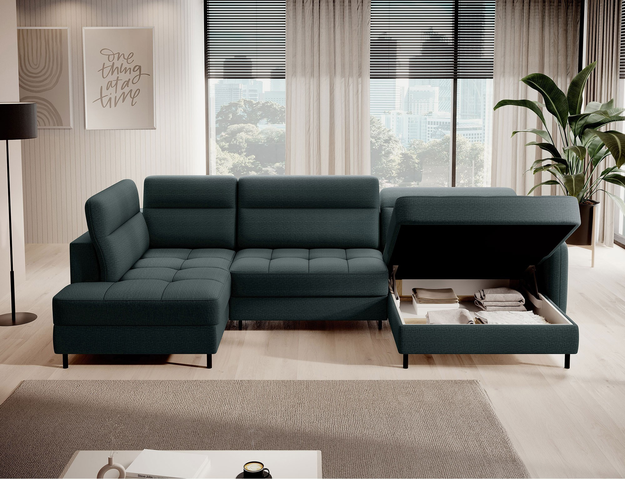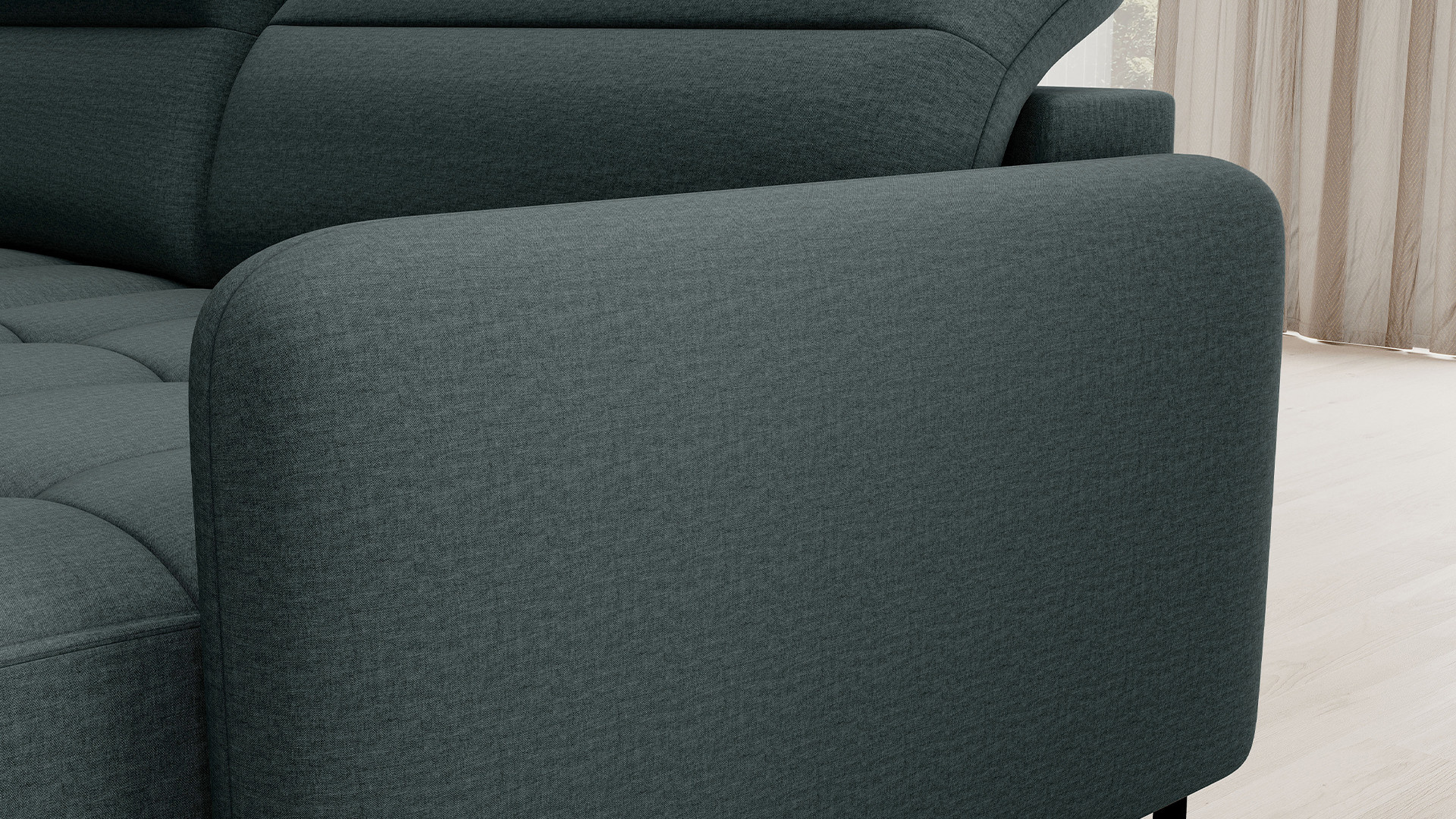 Rohová pohovka Berrto je neuvěřitelně elegantní kus nábytku pro váš obývací pokoj, navržený tak, aby vám poskytl výjimečné pohodlí a funkčnost. Tato elegantní rohová pohovka kombinuje moderní design s použitím vysoce kvalitních komponentů. Rohová pohovka Berrto je vybavena vlnovými pružinami typu B, které v kombinaci s vysoce elastickou pěnou HR + T2130 vytvářejí povrch s bezkonkurenčním komfortem. Tento kus nábytku je měkký, flexibilní a dokonale se přizpůsobí tvaru vašeho těla, což poskytuje nejen relaxaci, ale také úlevu svalům. Použití čalounických popruhů a pěny T2130 v opěradle rohové pohovky Berrto zajišťuje její odolnost a odolnost vůči deformacím. Nemusíte se obávat nevzhledných vrásek - tato rohová pohovka si zachová svůj původní vzhled po mnoho let. Můžete jej rychle a snadno přeměnit na pohodlnou postel, která vám i vašim hostům poskytne klidný spánek. Navíc rohová pohovka skrývá prostorný úložný prostor na ložní prádlo, který poskytuje dostatek místa pro všechny potřebné textilie. Rohová pohovka Berrto nabízí nejen pohodlí, ale také stabilitu. S působivou nosností 390 kg si jej můžete užívat po mnoho let, aniž byste se museli obávat o jeho odolnost. Rohová pohovka Berrto vyniká nejen svou funkčností, ale také estetickým designem. Černé ocelové nohy mu dodávají moderní charakter a elegantní design z něj činí výrazný prvek vaší obývací místnosti. Rohová pohovka Berrto je vybavena snadno použitelným mechanismem typu Dolphin, který umožňuje rychle ji přeměnit na pohodlnou postel. Toto je ideální řešení, když potřebujete prostor na spaní pro hosty. Rohová pohovka Berrto kombinuje luxus, pohodlí a funkčnost. Jeho vysoce kvalitní řemeslné zpracování a pečlivé dokončení z něj činí nejen ústřední bod vašeho obývacího pokoje, ale také místo pro relaxaci a trávení času s přáteli a rodinou.