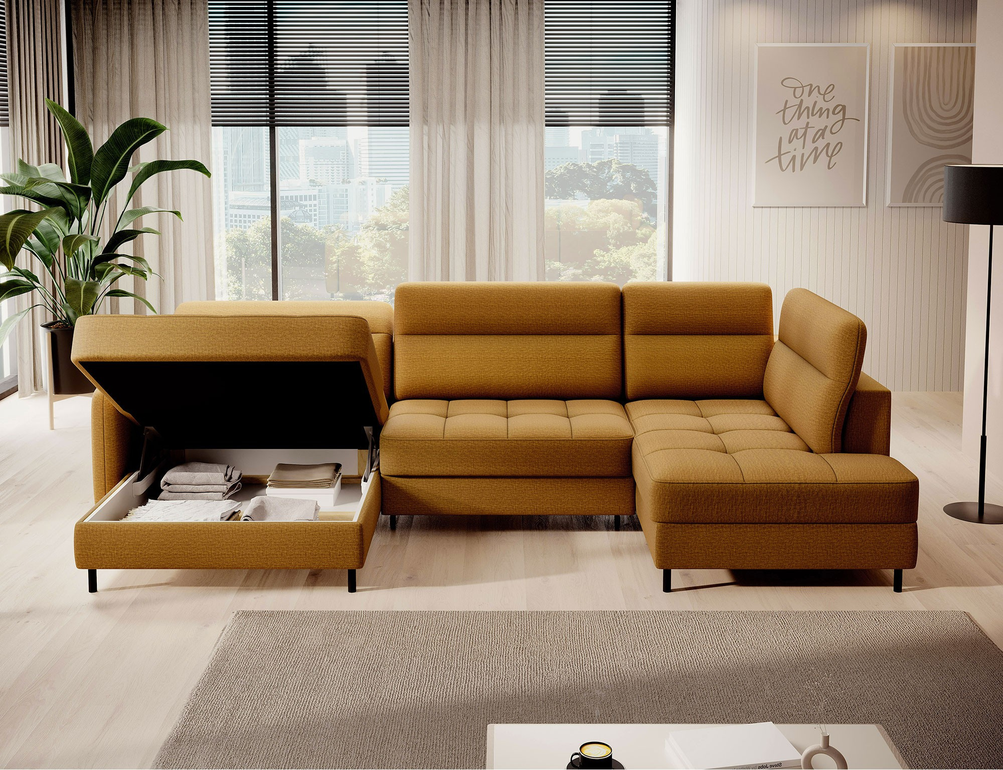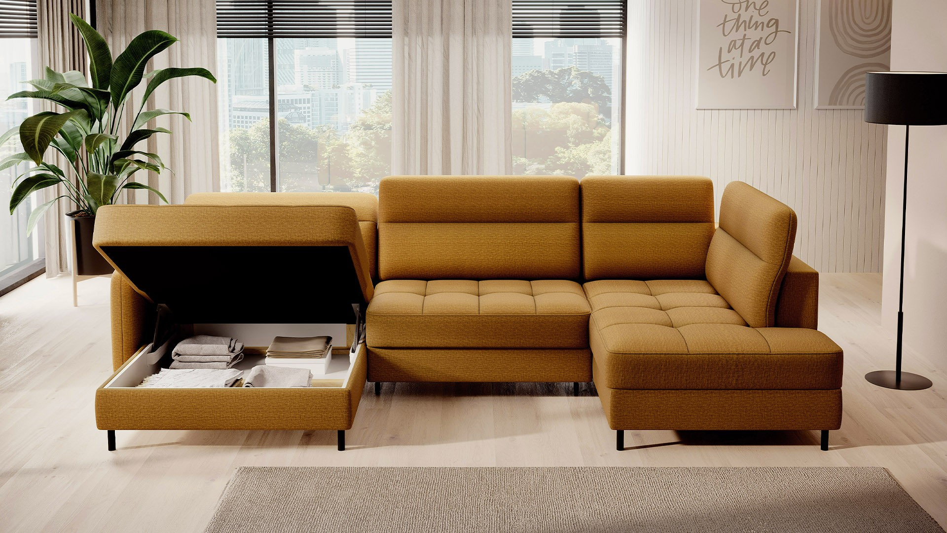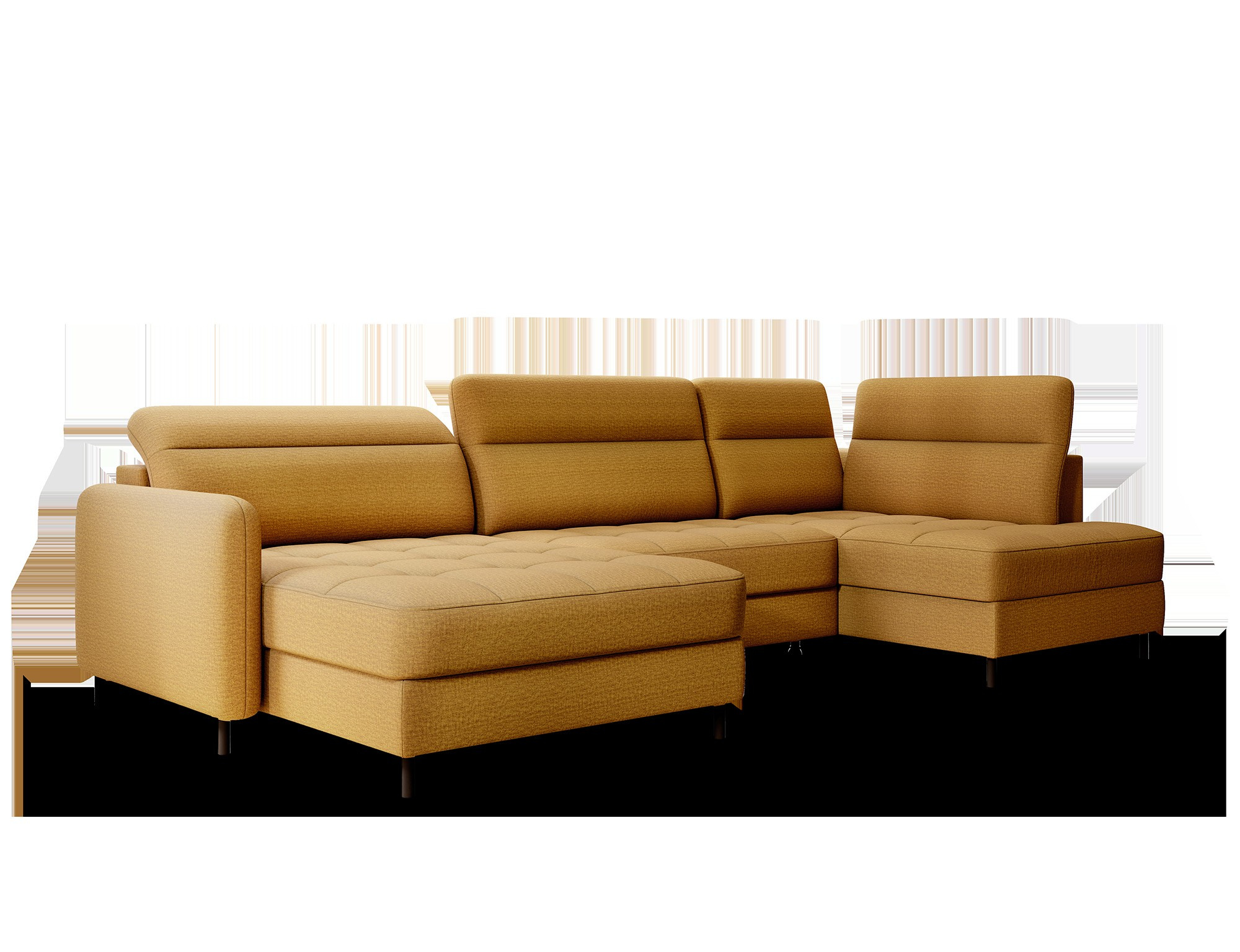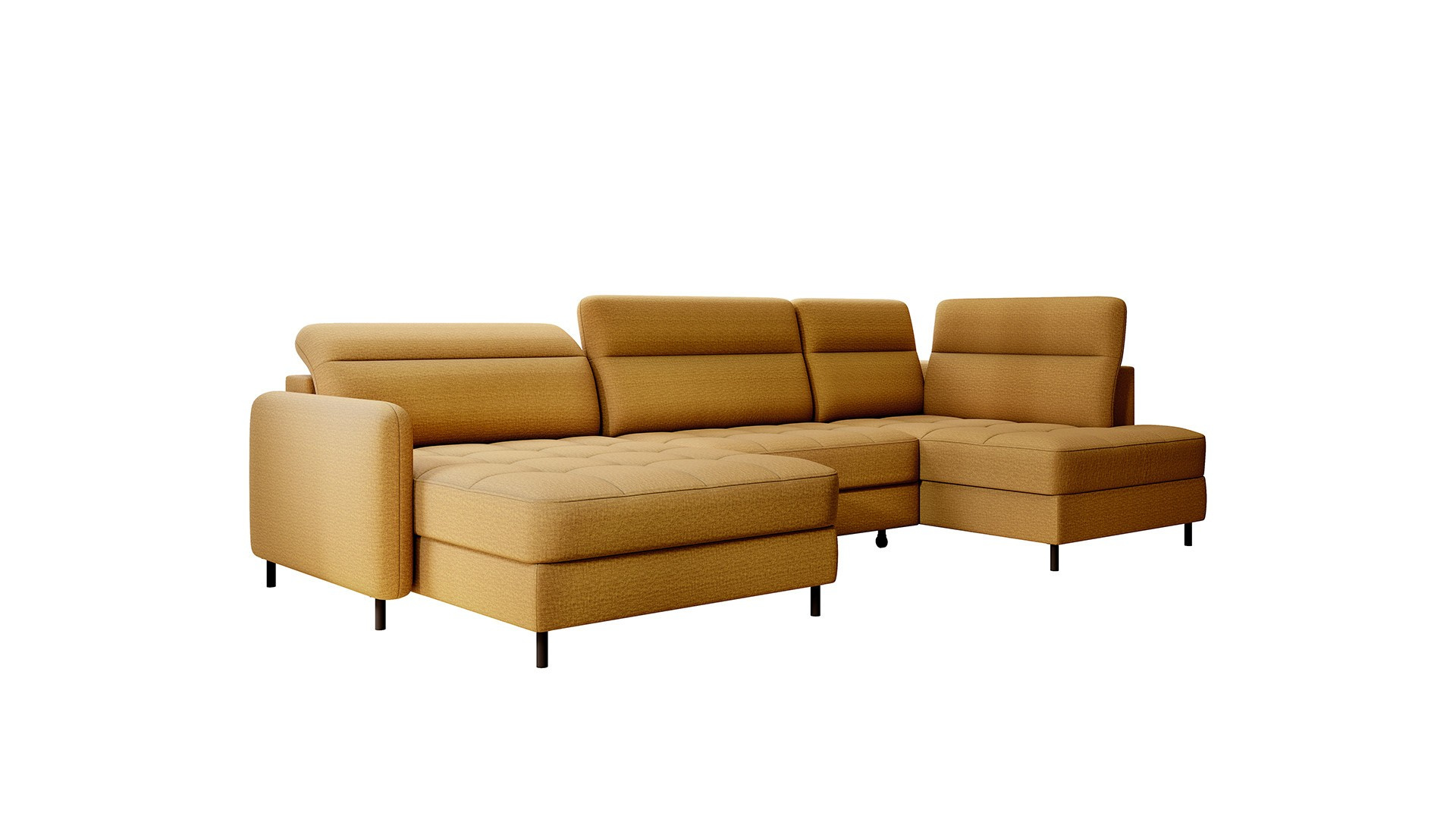 Rohová pohovka Berrto je neuvěřitelně elegantní kus nábytku pro váš obývací pokoj, navržený tak, aby vám poskytl výjimečné pohodlí a funkčnost. Tato elegantní rohová pohovka kombinuje moderní design s použitím vysoce kvalitních komponentů. Rohová pohovka Berrto je vybavena vlnovými pružinami typu B, které v kombinaci s vysoce elastickou pěnou HR + T2130 vytvářejí povrch s bezkonkurenčním komfortem. Tento kus nábytku je měkký, flexibilní a dokonale se přizpůsobí tvaru vašeho těla, což poskytuje nejen relaxaci, ale také úlevu svalům. Použití čalounických popruhů a pěny T2130 v opěradle rohové pohovky Berrto zajišťuje její odolnost a odolnost vůči deformacím. Nemusíte se obávat nevzhledných vrásek - tato rohová pohovka si zachová svůj původní vzhled po mnoho let. Můžete jej rychle a snadno přeměnit na pohodlnou postel, která vám i vašim hostům poskytne klidný spánek. Navíc rohová pohovka skrývá prostorný úložný prostor na ložní prádlo, který poskytuje dostatek místa pro všechny potřebné textilie. Rohová pohovka Berrto nabízí nejen pohodlí, ale také stabilitu. S působivou nosností 390 kg si jej můžete užívat po mnoho let, aniž byste se museli obávat o jeho odolnost. Rohová pohovka Berrto vyniká nejen svou funkčností, ale také estetickým designem. Černé ocelové nohy mu dodávají moderní charakter a elegantní design z něj činí výrazný prvek vaší obývací místnosti. Rohová pohovka Berrto je vybavena snadno použitelným mechanismem typu Dolphin, který umožňuje rychle ji přeměnit na pohodlnou postel. Toto je ideální řešení, když potřebujete prostor na spaní pro hosty. Rohová pohovka Berrto kombinuje luxus, pohodlí a funkčnost. Jeho vysoce kvalitní řemeslné zpracování a pečlivé dokončení z něj činí nejen ústřední bod vašeho obývacího pokoje, ale také místo pro relaxaci a trávení času s přáteli a rodinou.
