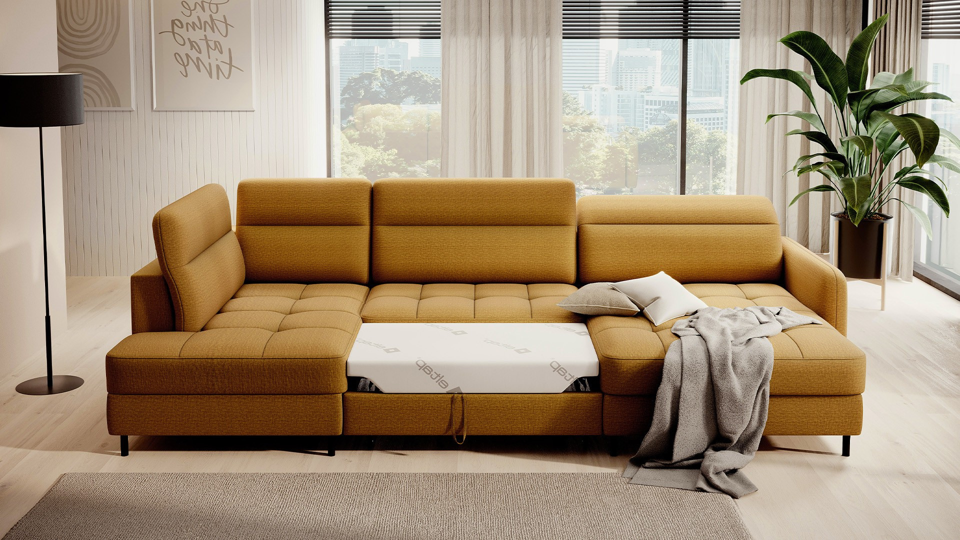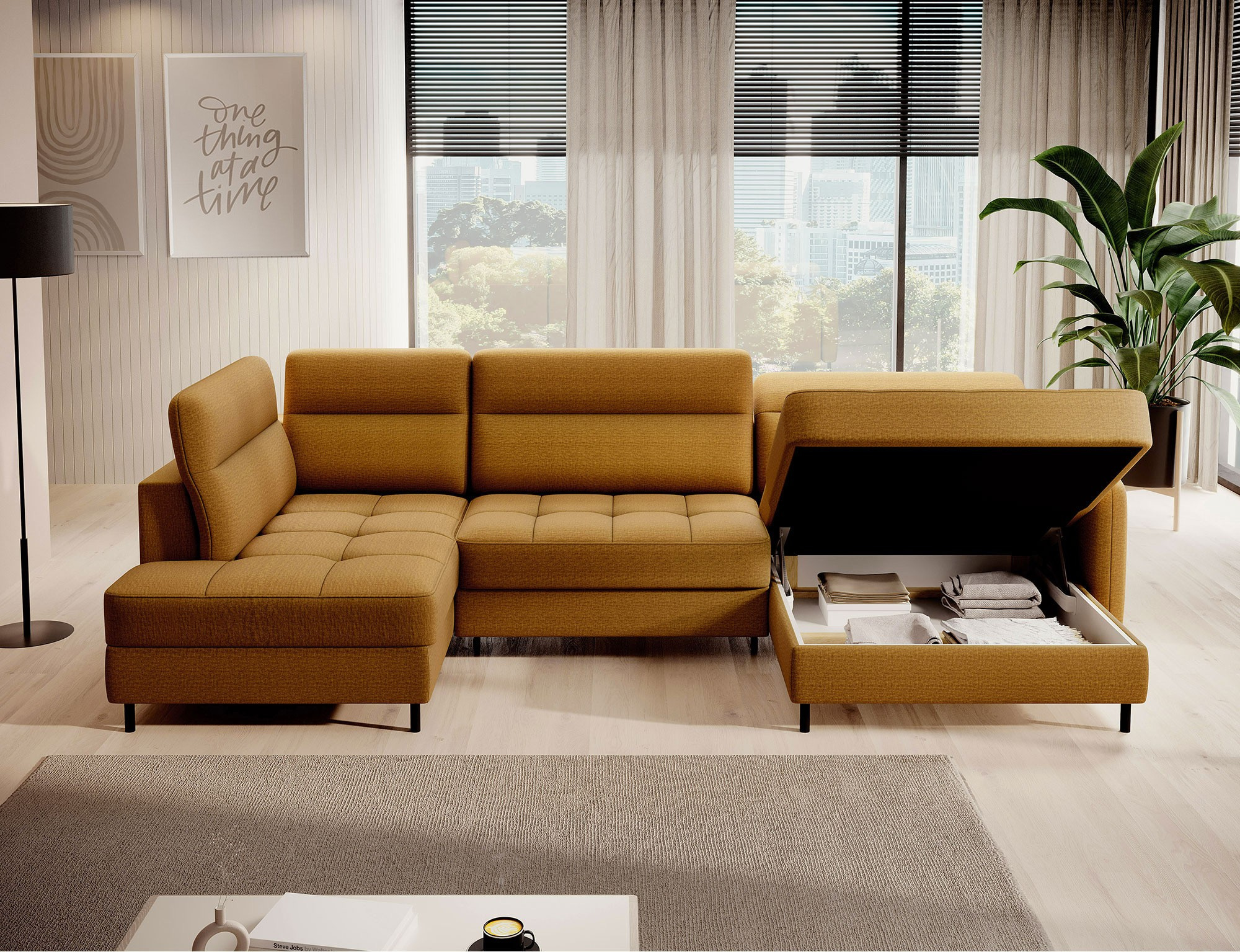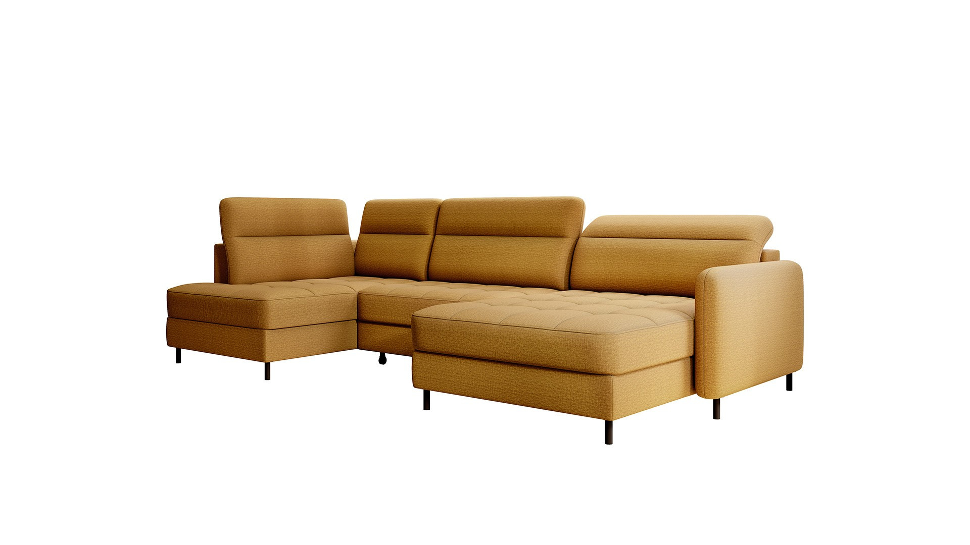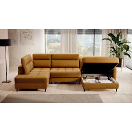 Rohová pohovka Berrto je neuvěřitelně elegantní kus nábytku pro váš obývací pokoj, navržený tak, aby vám poskytl výjimečné pohodlí a funkčnost. Tato elegantní rohová pohovka kombinuje moderní design s použitím vysoce kvalitních komponentů. Rohová pohovka Berrto je vybavena vlnovými pružinami typu B, které v kombinaci s vysoce elastickou pěnou HR + T2130 vytvářejí povrch s bezkonkurenčním komfortem. Tento kus nábytku je měkký, flexibilní a dokonale se přizpůsobí tvaru vašeho těla, což poskytuje nejen relaxaci, ale také úlevu svalům. Použití čalounických popruhů a pěny T2130 v opěradle rohové pohovky Berrto zajišťuje její odolnost a odolnost vůči deformacím. Nemusíte se obávat nevzhledných vrásek - tato rohová pohovka si zachová svůj původní vzhled po mnoho let. Můžete jej rychle a snadno přeměnit na pohodlnou postel, která vám i vašim hostům poskytne klidný spánek. Navíc rohová pohovka skrývá prostorný úložný prostor na ložní prádlo, který poskytuje dostatek místa pro všechny potřebné textilie. Rohová pohovka Berrto nabízí nejen pohodlí, ale také stabilitu. S působivou nosností 390 kg si jej můžete užívat po mnoho let, aniž byste se museli obávat o jeho odolnost. Rohová pohovka Berrto vyniká nejen svou funkčností, ale také estetickým designem. Černé ocelové nohy mu dodávají moderní charakter a elegantní design z něj činí výrazný prvek vaší obývací místnosti. Rohová pohovka Berrto je vybavena snadno použitelným mechanismem typu Dolphin, který umožňuje rychle ji přeměnit na pohodlnou postel. Toto je ideální řešení, když potřebujete prostor na spaní pro hosty. Rohová pohovka Berrto kombinuje luxus, pohodlí a funkčnost. Jeho vysoce kvalitní řemeslné zpracování a pečlivé dokončení z něj činí nejen ústřední bod vašeho obývacího pokoje, ale také místo pro relaxaci a trávení času s přáteli a rodinou.
