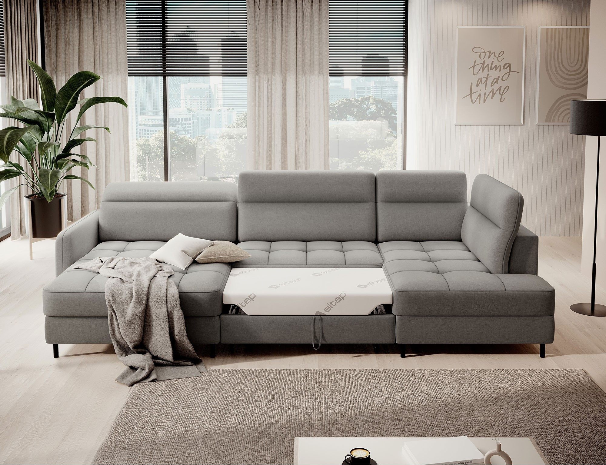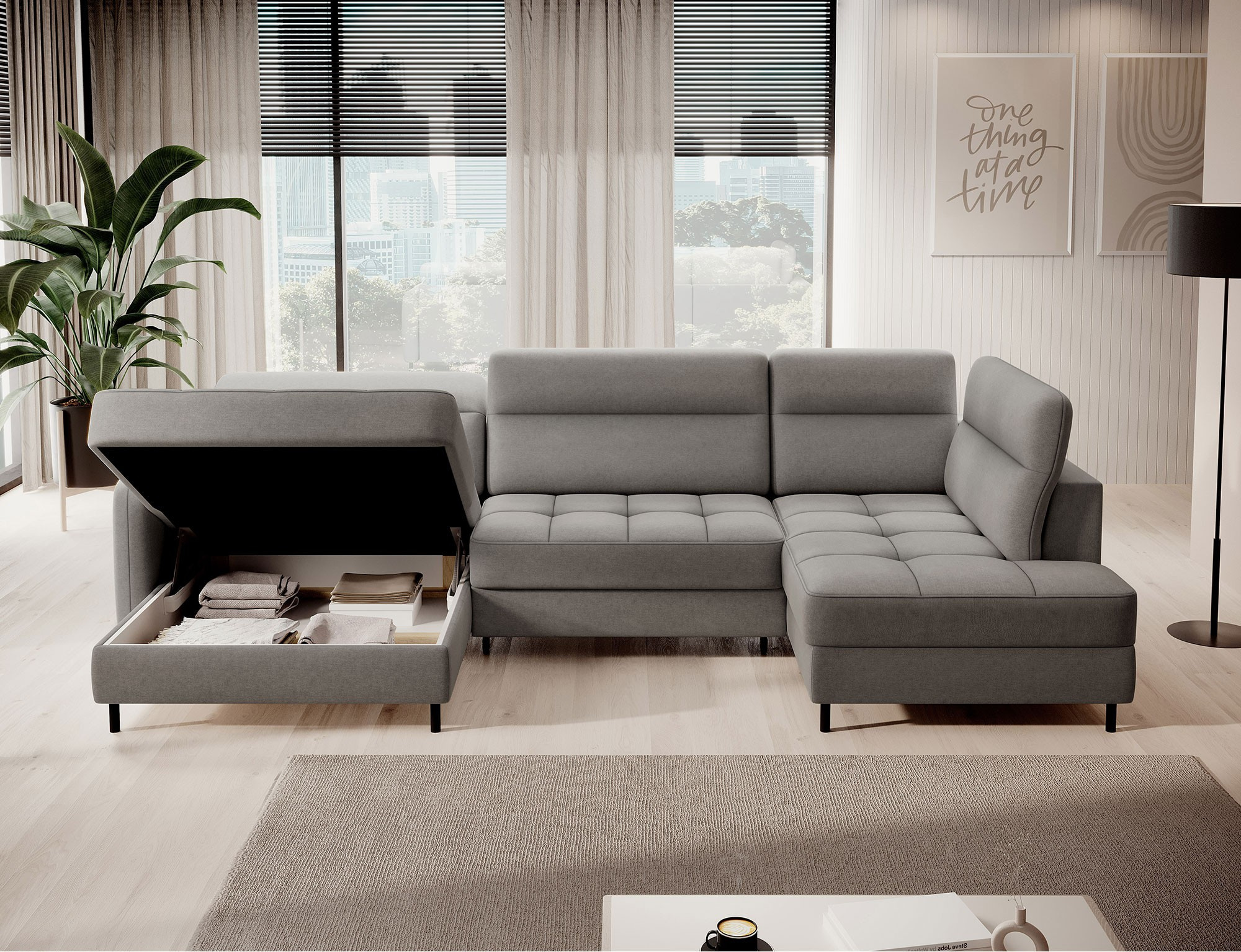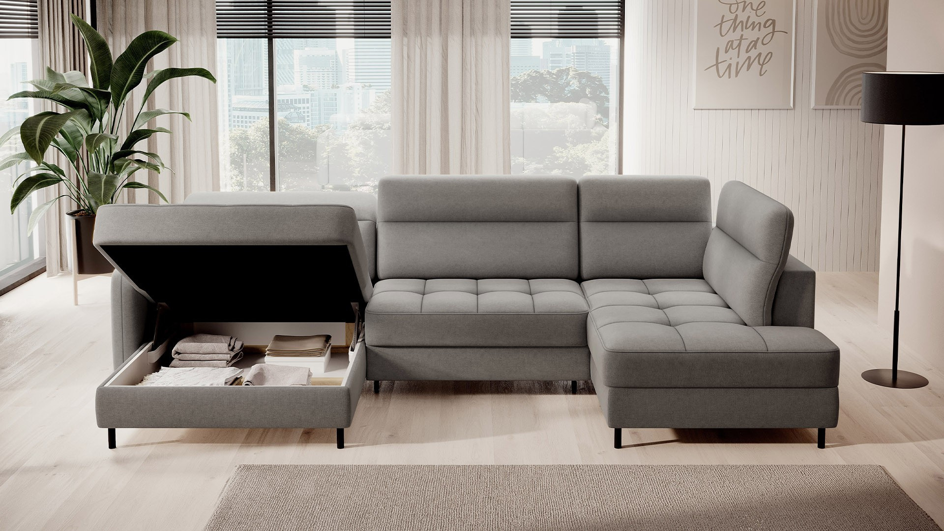 Rohová pohovka Berrto je neuvěřitelně elegantní kus nábytku pro váš obývací pokoj, navržený tak, aby vám poskytl výjimečné pohodlí a funkčnost. Tato elegantní rohová pohovka kombinuje moderní design s použitím vysoce kvalitních komponentů. Rohová pohovka Berrto je vybavena vlnovými pružinami typu B, které v kombinaci s vysoce elastickou pěnou HR + T2130 vytvářejí povrch s bezkonkurenčním komfortem. Tento kus nábytku je měkký, flexibilní a dokonale se přizpůsobí tvaru vašeho těla, což poskytuje nejen relaxaci, ale také úlevu svalům. Použití čalounických popruhů a pěny T2130 v opěradle rohové pohovky Berrto zajišťuje její odolnost a odolnost vůči deformacím. Nemusíte se obávat nevzhledných vrásek - tato rohová pohovka si zachová svůj původní vzhled po mnoho let. Můžete jej rychle a snadno přeměnit na pohodlnou postel, která vám i vašim hostům poskytne klidný spánek. Navíc rohová pohovka skrývá prostorný úložný prostor na ložní prádlo, který poskytuje dostatek místa pro všechny potřebné textilie. Rohová pohovka Berrto nabízí nejen pohodlí, ale také stabilitu. S působivou nosností 390 kg si jej můžete užívat po mnoho let, aniž byste se museli obávat o jeho odolnost. Rohová pohovka Berrto vyniká nejen svou funkčností, ale také estetickým designem. Černé ocelové nohy mu dodávají moderní charakter a elegantní design z něj činí výrazný prvek vaší obývací místnosti. Rohová pohovka Berrto je vybavena snadno použitelným mechanismem typu Dolphin, který umožňuje rychle ji přeměnit na pohodlnou postel. Toto je ideální řešení, když potřebujete prostor na spaní pro hosty. Rohová pohovka Berrto kombinuje luxus, pohodlí a funkčnost. Jeho vysoce kvalitní řemeslné zpracování a pečlivé dokončení z něj činí nejen ústřední bod vašeho obývacího pokoje, ale také místo pro relaxaci a trávení času s přáteli a rodinou.