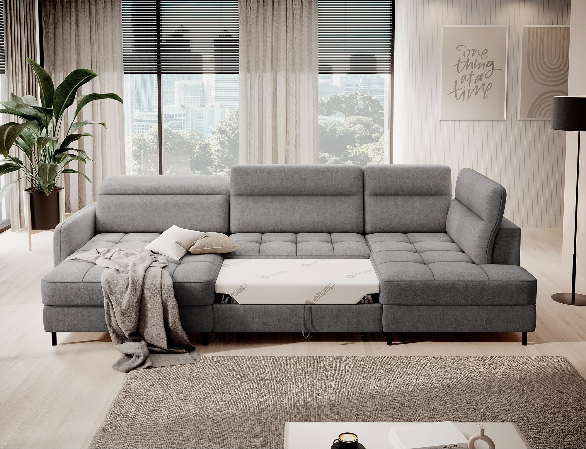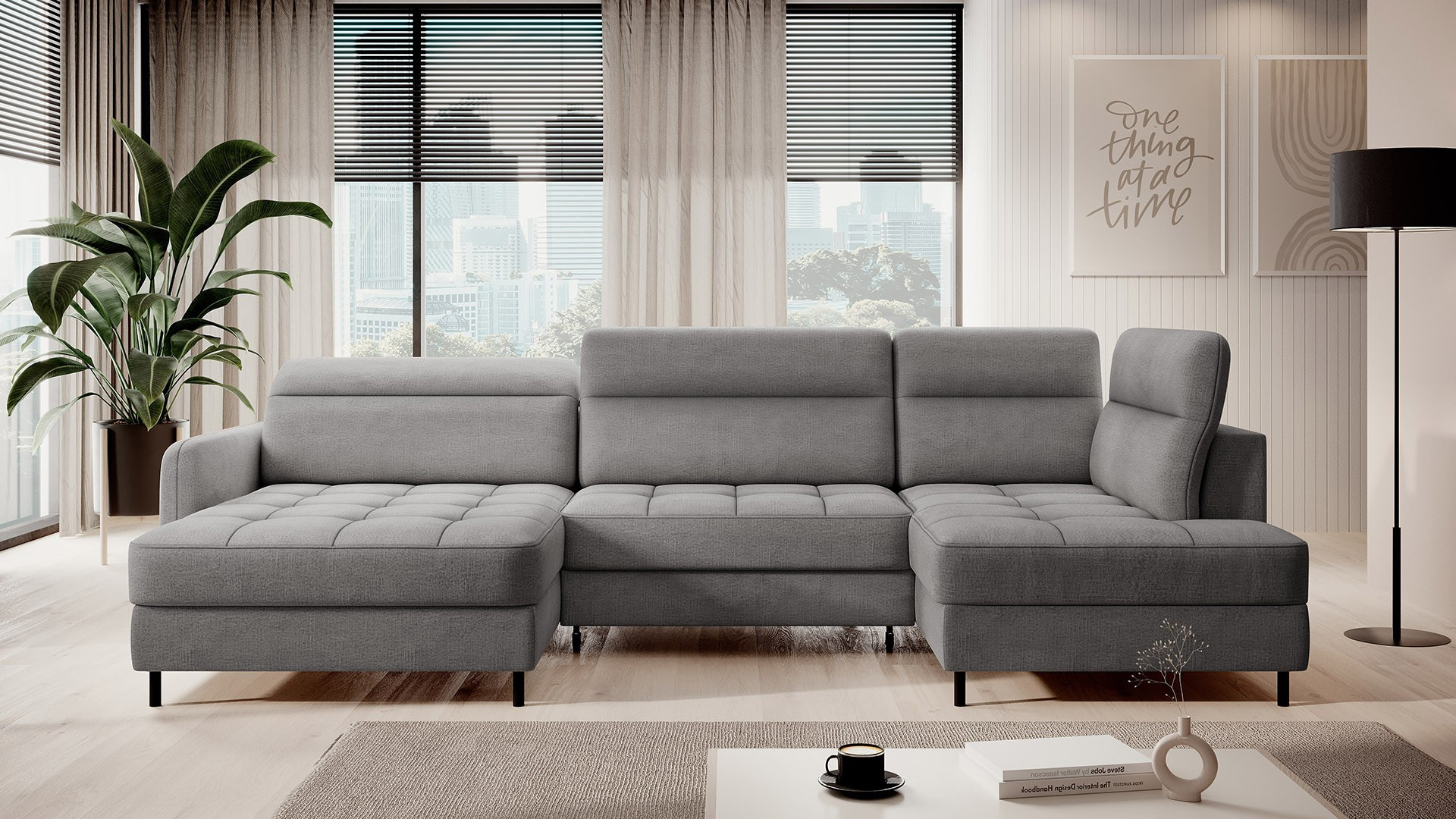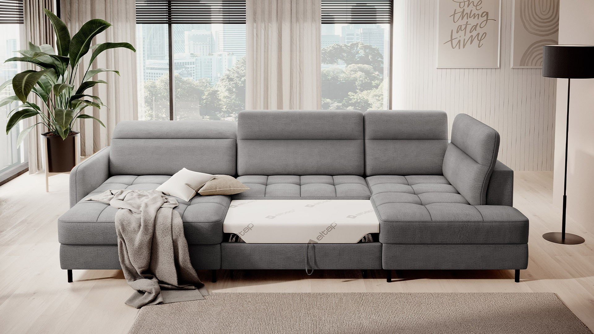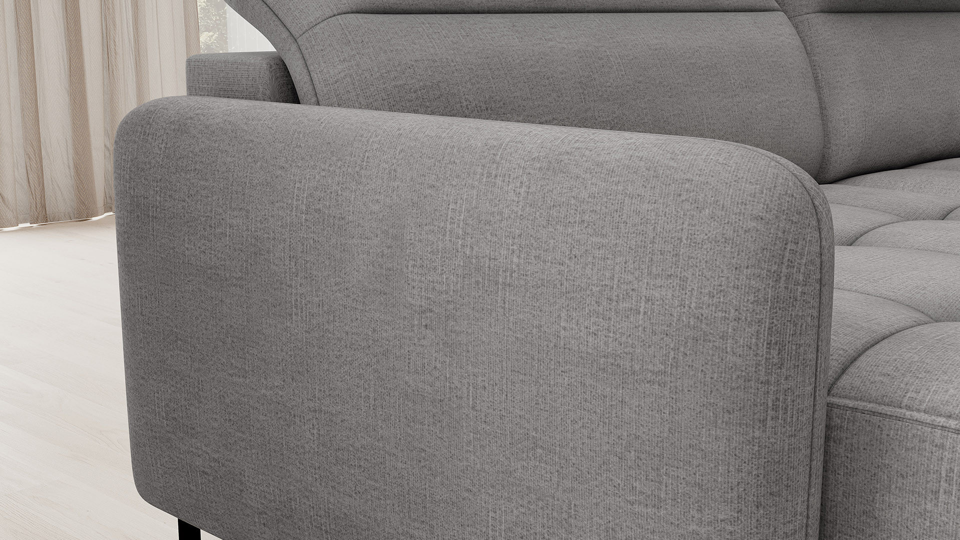 Rohová pohovka Berrto je neuvěřitelně elegantní kus nábytku pro váš obývací pokoj, navržený tak, aby vám poskytl výjimečné pohodlí a funkčnost. Tato elegantní rohová pohovka kombinuje moderní design s použitím vysoce kvalitních komponentů. Rohová pohovka Berrto je vybavena vlnovými pružinami typu B, které v kombinaci s vysoce elastickou pěnou HR + T2130 vytvářejí povrch s bezkonkurenčním komfortem. Tento kus nábytku je měkký, flexibilní a dokonale se přizpůsobí tvaru vašeho těla, což poskytuje nejen relaxaci, ale také úlevu svalům. Použití čalounických popruhů a pěny T2130 v opěradle rohové pohovky Berrto zajišťuje její odolnost a odolnost vůči deformacím. Nemusíte se obávat nevzhledných vrásek - tato rohová pohovka si zachová svůj původní vzhled po mnoho let. Můžete jej rychle a snadno přeměnit na pohodlnou postel, která vám i vašim hostům poskytne klidný spánek. Navíc rohová pohovka skrývá prostorný úložný prostor na ložní prádlo, který poskytuje dostatek místa pro všechny potřebné textilie. Rohová pohovka Berrto nabízí nejen pohodlí, ale také stabilitu. S působivou nosností 390 kg si jej můžete užívat po mnoho let, aniž byste se museli obávat o jeho odolnost. Rohová pohovka Berrto vyniká nejen svou funkčností, ale také estetickým designem. Černé ocelové nohy mu dodávají moderní charakter a elegantní design z něj činí výrazný prvek vaší obývací místnosti. Rohová pohovka Berrto je vybavena snadno použitelným mechanismem typu Dolphin, který umožňuje rychle ji přeměnit na pohodlnou postel. Toto je ideální řešení, když potřebujete prostor na spaní pro hosty. Rohová pohovka Berrto kombinuje luxus, pohodlí a funkčnost. Jeho vysoce kvalitní řemeslné zpracování a pečlivé dokončení z něj činí nejen ústřední bod vašeho obývacího pokoje, ale také místo pro relaxaci a trávení času s přáteli a rodinou.
