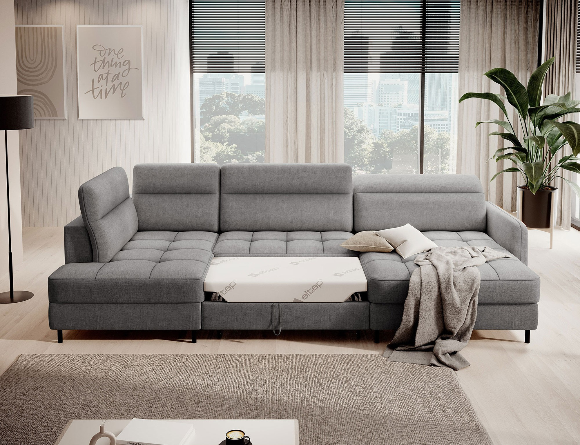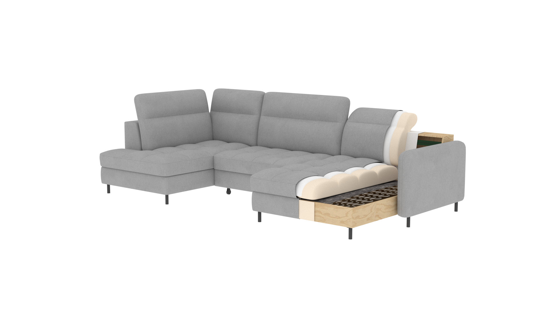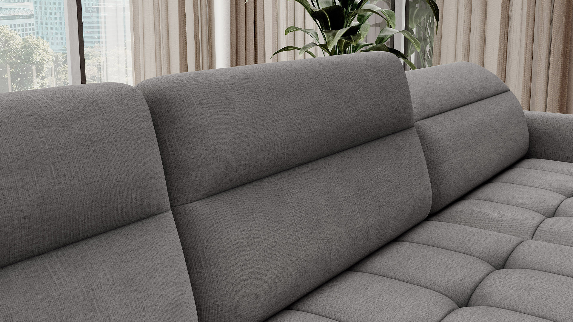Rohová pohovka Berrto je neuvěřitelně elegantní kus nábytku pro váš obývací pokoj, navržený tak, aby vám poskytl výjimečné pohodlí a funkčnost. Tato elegantní rohová pohovka kombinuje moderní design s použitím vysoce kvalitních komponentů. Rohová pohovka Berrto je vybavena vlnovými pružinami typu B, které v kombinaci s vysoce elastickou pěnou HR + T2130 vytvářejí povrch s bezkonkurenčním komfortem. Tento kus nábytku je měkký, flexibilní a dokonale se přizpůsobí tvaru vašeho těla, což poskytuje nejen relaxaci, ale také úlevu svalům. Použití čalounických popruhů a pěny T2130 v opěradle rohové pohovky Berrto zajišťuje její odolnost a odolnost vůči deformacím. Nemusíte se obávat nevzhledných vrásek - tato rohová pohovka si zachová svůj původní vzhled po mnoho let. Můžete jej rychle a snadno přeměnit na pohodlnou postel, která vám i vašim hostům poskytne klidný spánek. Navíc rohová pohovka skrývá prostorný úložný prostor na ložní prádlo, který poskytuje dostatek místa pro všechny potřebné textilie. Rohová pohovka Berrto nabízí nejen pohodlí, ale také stabilitu. S působivou nosností 390 kg si jej můžete užívat po mnoho let, aniž byste se museli obávat o jeho odolnost. Rohová pohovka Berrto vyniká nejen svou funkčností, ale také estetickým designem. Černé ocelové nohy mu dodávají moderní charakter a elegantní design z něj činí výrazný prvek vaší obývací místnosti. Rohová pohovka Berrto je vybavena snadno použitelným mechanismem typu Dolphin, který umožňuje rychle ji přeměnit na pohodlnou postel. Toto je ideální řešení, když potřebujete prostor na spaní pro hosty. Rohová pohovka Berrto kombinuje luxus, pohodlí a funkčnost. Jeho vysoce kvalitní řemeslné zpracování a pečlivé dokončení z něj činí nejen ústřední bod vašeho obývacího pokoje, ale také místo pro relaxaci a trávení času s přáteli a rodinou.