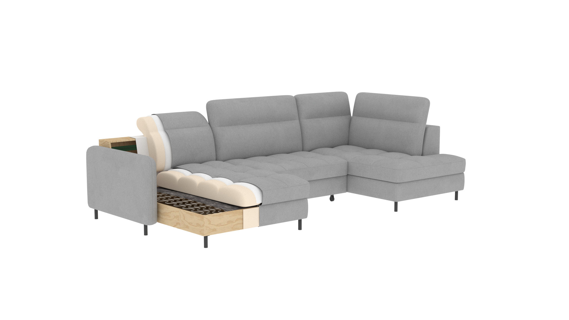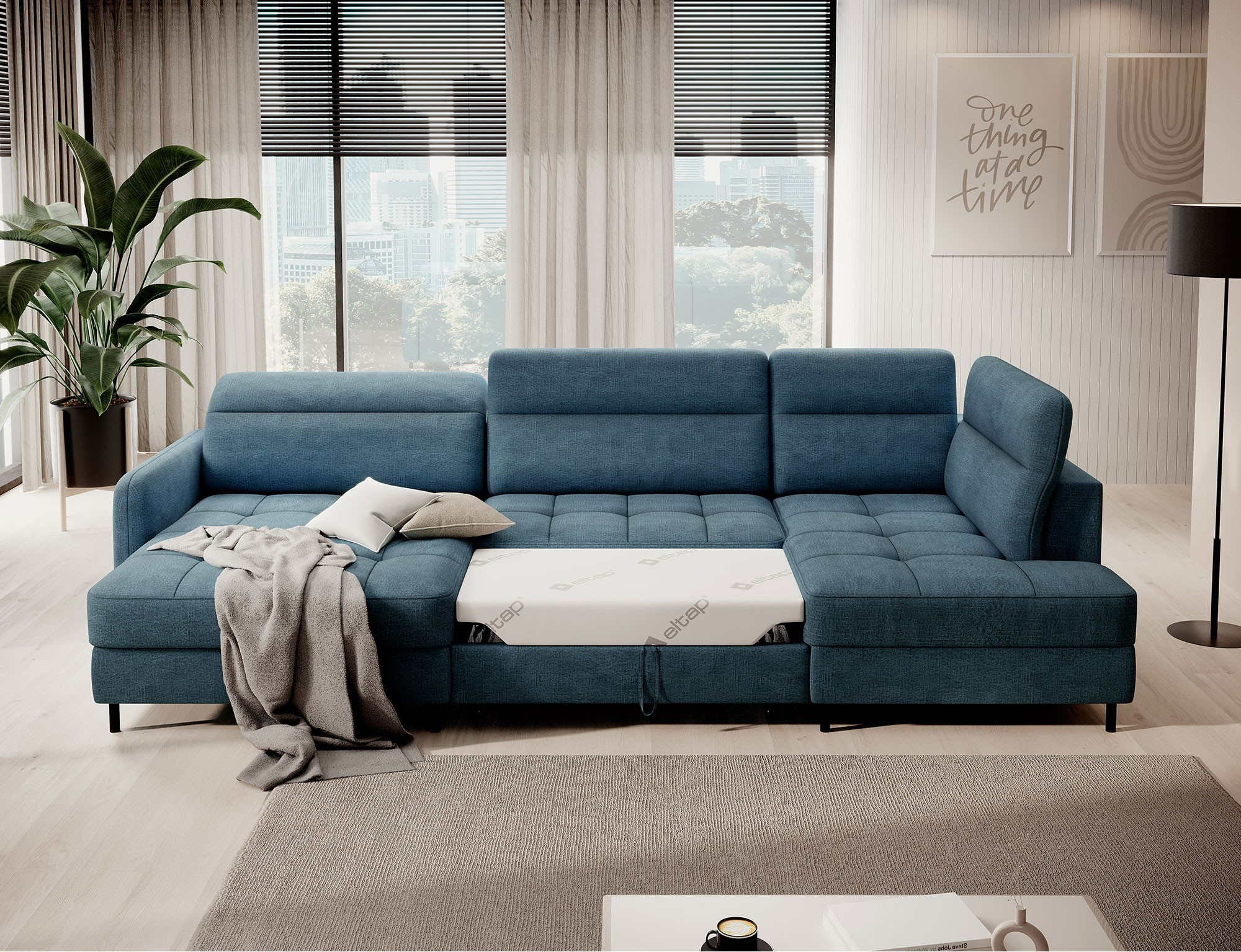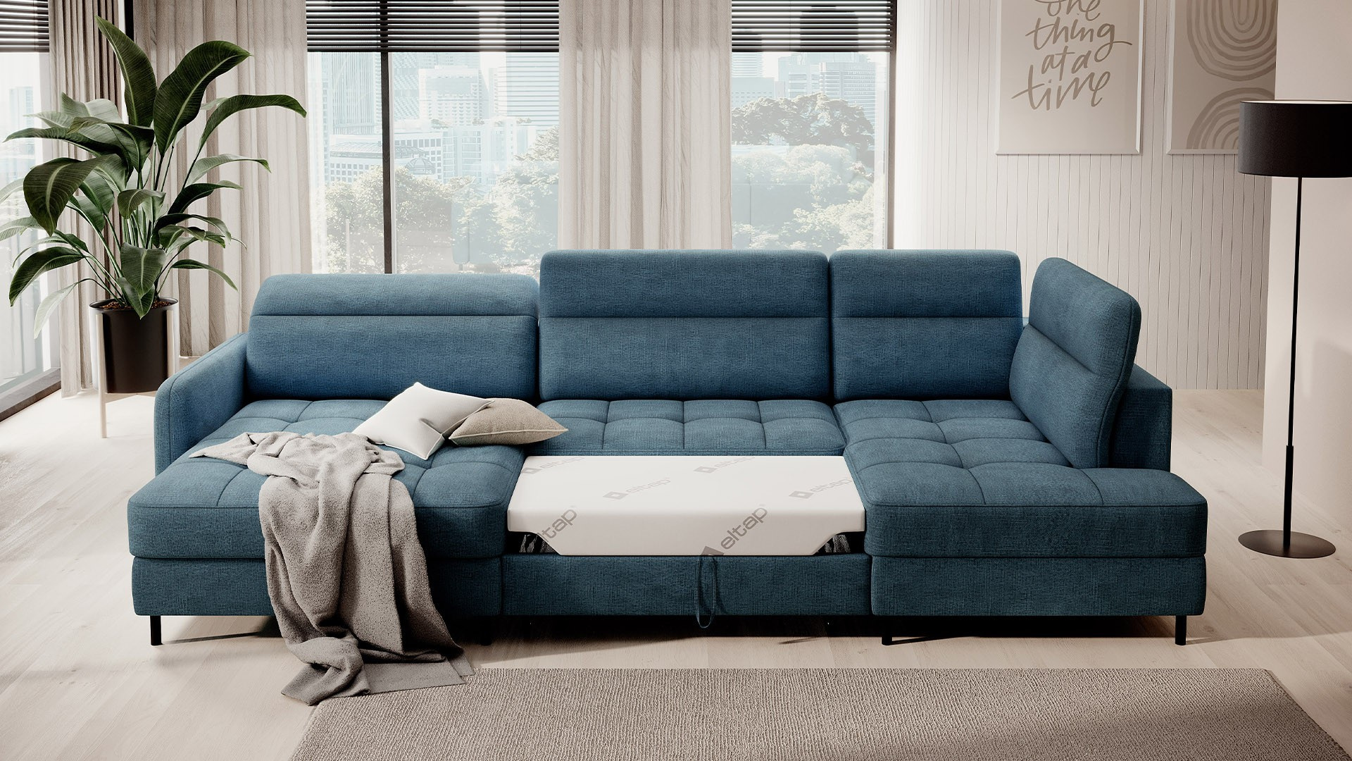 Rohová pohovka Berrto je neuvěřitelně elegantní kus nábytku pro váš obývací pokoj, navržený tak, aby vám poskytl výjimečné pohodlí a funkčnost. Tato elegantní rohová pohovka kombinuje moderní design s použitím vysoce kvalitních komponentů. Rohová pohovka Berrto je vybavena vlnovými pružinami typu B, které v kombinaci s vysoce elastickou pěnou HR + T2130 vytvářejí povrch s bezkonkurenčním komfortem. Tento kus nábytku je měkký, flexibilní a dokonale se přizpůsobí tvaru vašeho těla, což poskytuje nejen relaxaci, ale také úlevu svalům. Použití čalounických popruhů a pěny T2130 v opěradle rohové pohovky Berrto zajišťuje její odolnost a odolnost vůči deformacím. Nemusíte se obávat nevzhledných vrásek - tato rohová pohovka si zachová svůj původní vzhled po mnoho let. Můžete jej rychle a snadno přeměnit na pohodlnou postel, která vám i vašim hostům poskytne klidný spánek. Navíc rohová pohovka skrývá prostorný úložný prostor na ložní prádlo, který poskytuje dostatek místa pro všechny potřebné textilie. Rohová pohovka Berrto nabízí nejen pohodlí, ale také stabilitu. S působivou nosností 390 kg si jej můžete užívat po mnoho let, aniž byste se museli obávat o jeho odolnost. Rohová pohovka Berrto vyniká nejen svou funkčností, ale také estetickým designem. Černé ocelové nohy mu dodávají moderní charakter a elegantní design z něj činí výrazný prvek vaší obývací místnosti. Rohová pohovka Berrto je vybavena snadno použitelným mechanismem typu Dolphin, který umožňuje rychle ji přeměnit na pohodlnou postel. Toto je ideální řešení, když potřebujete prostor na spaní pro hosty. Rohová pohovka Berrto kombinuje luxus, pohodlí a funkčnost. Jeho vysoce kvalitní řemeslné zpracování a pečlivé dokončení z něj činí nejen ústřední bod vašeho obývacího pokoje, ale také místo pro relaxaci a trávení času s přáteli a rodinou.